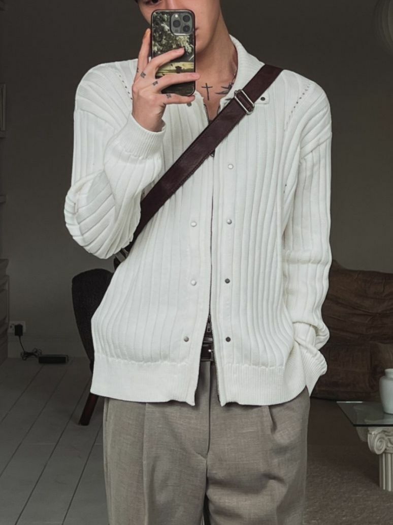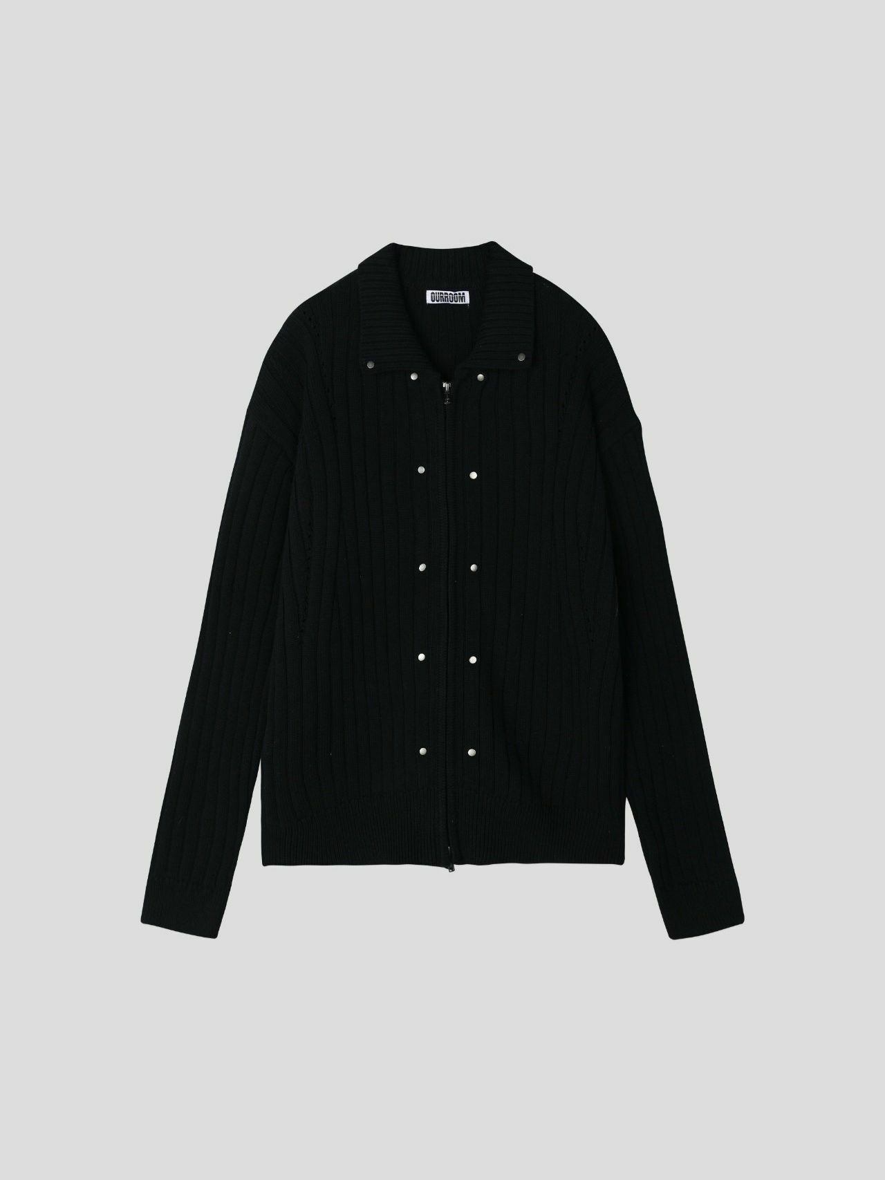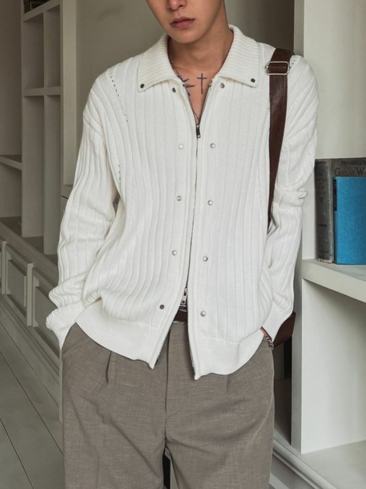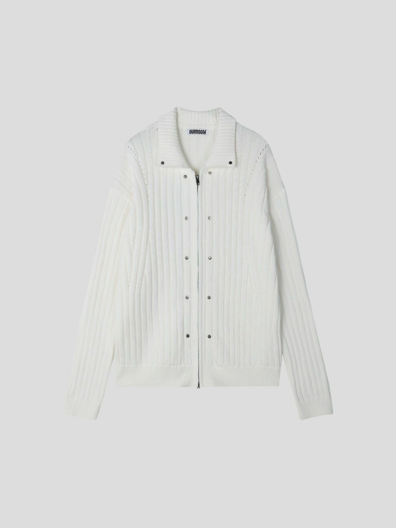 反領暗直紋拉鍊針織外套 OUR ROOM-048JK