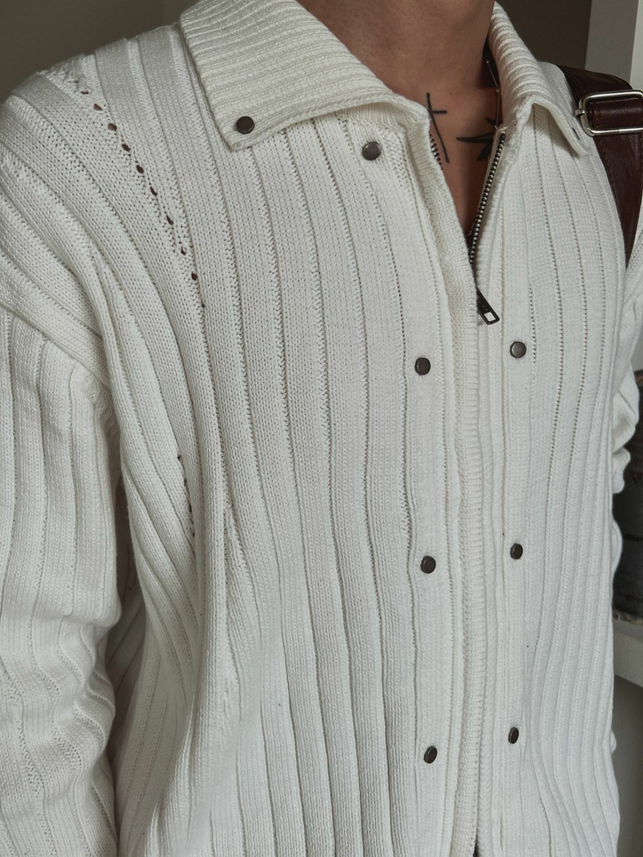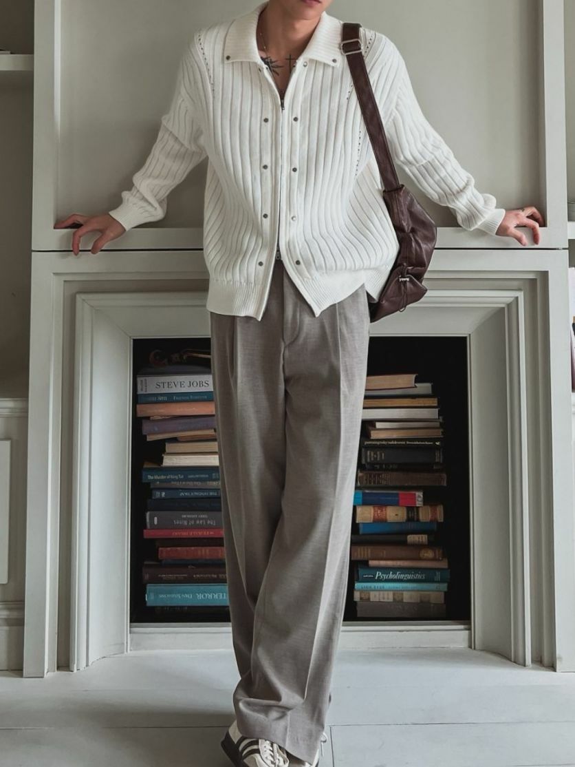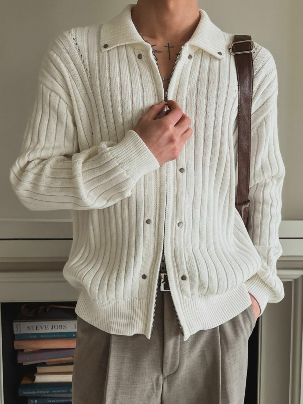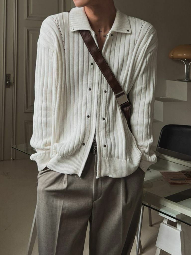 反領暗直紋拉鍊針織外套 OUR ROOM-048JK
