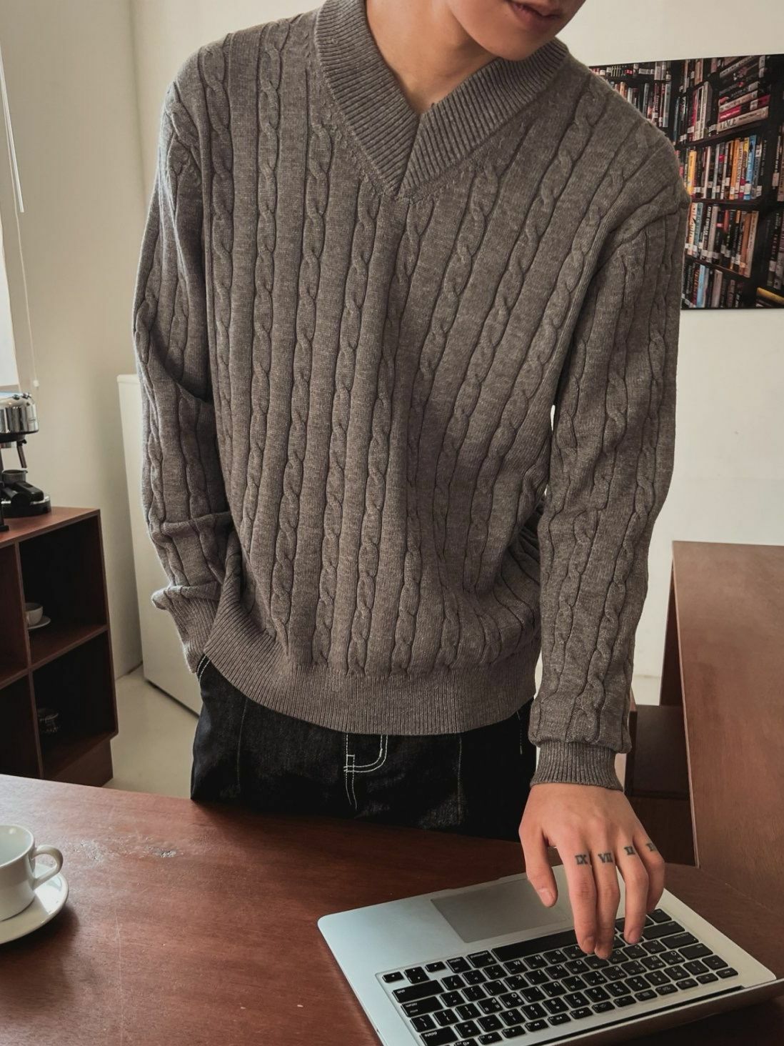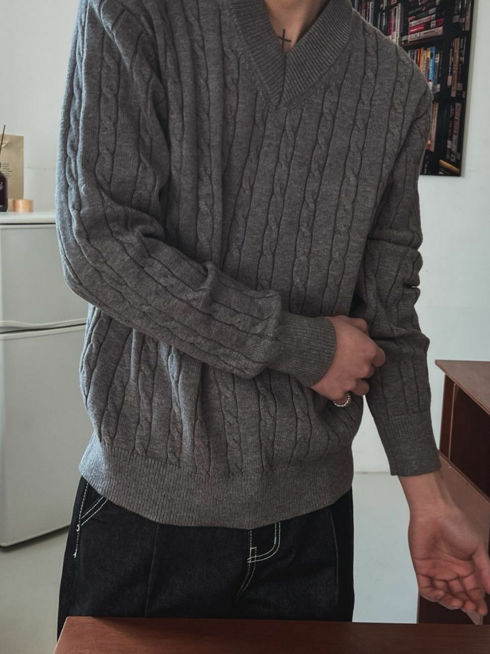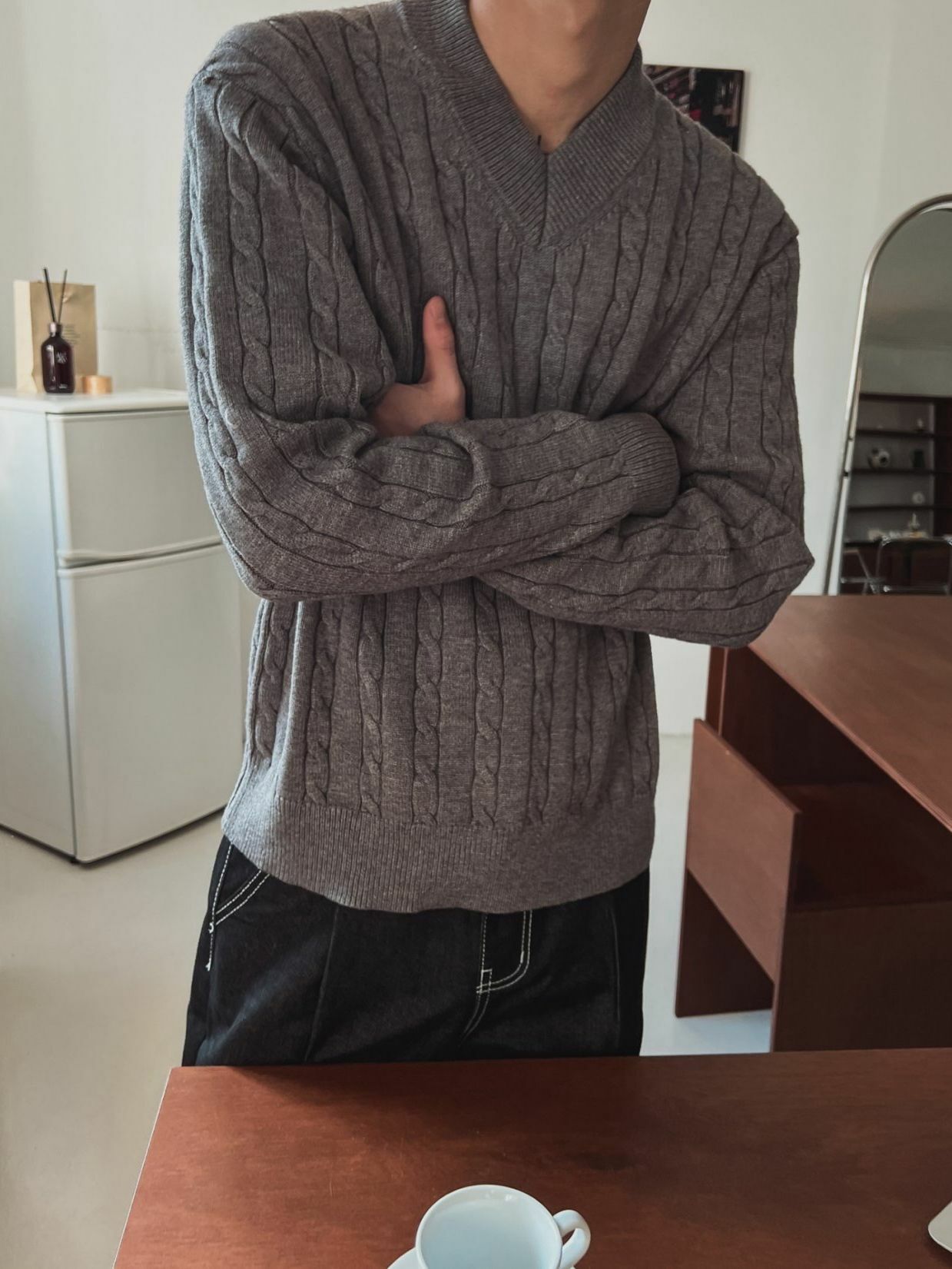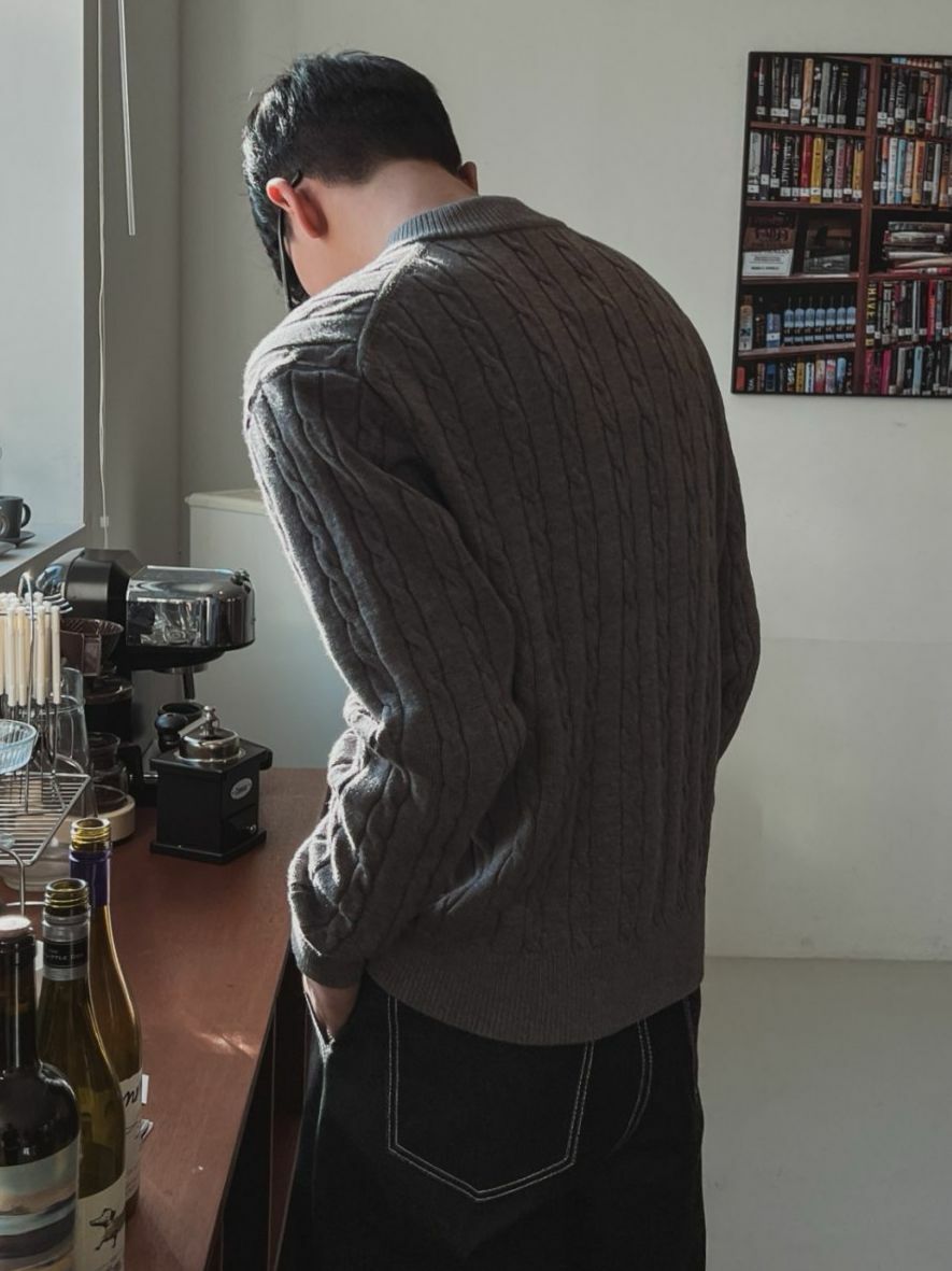 淨色V領暗扭紋針織衫 OUR ROOM-055T