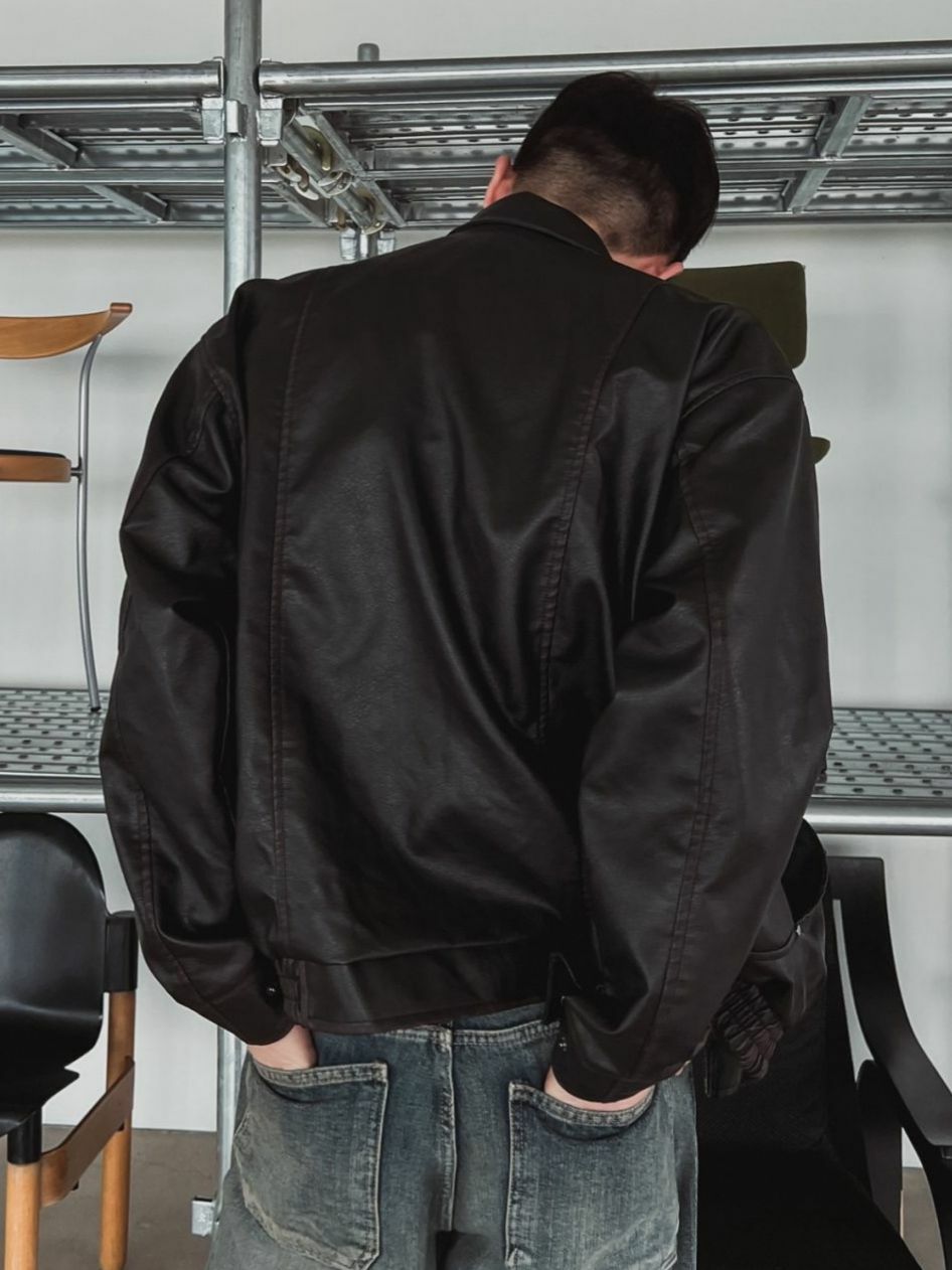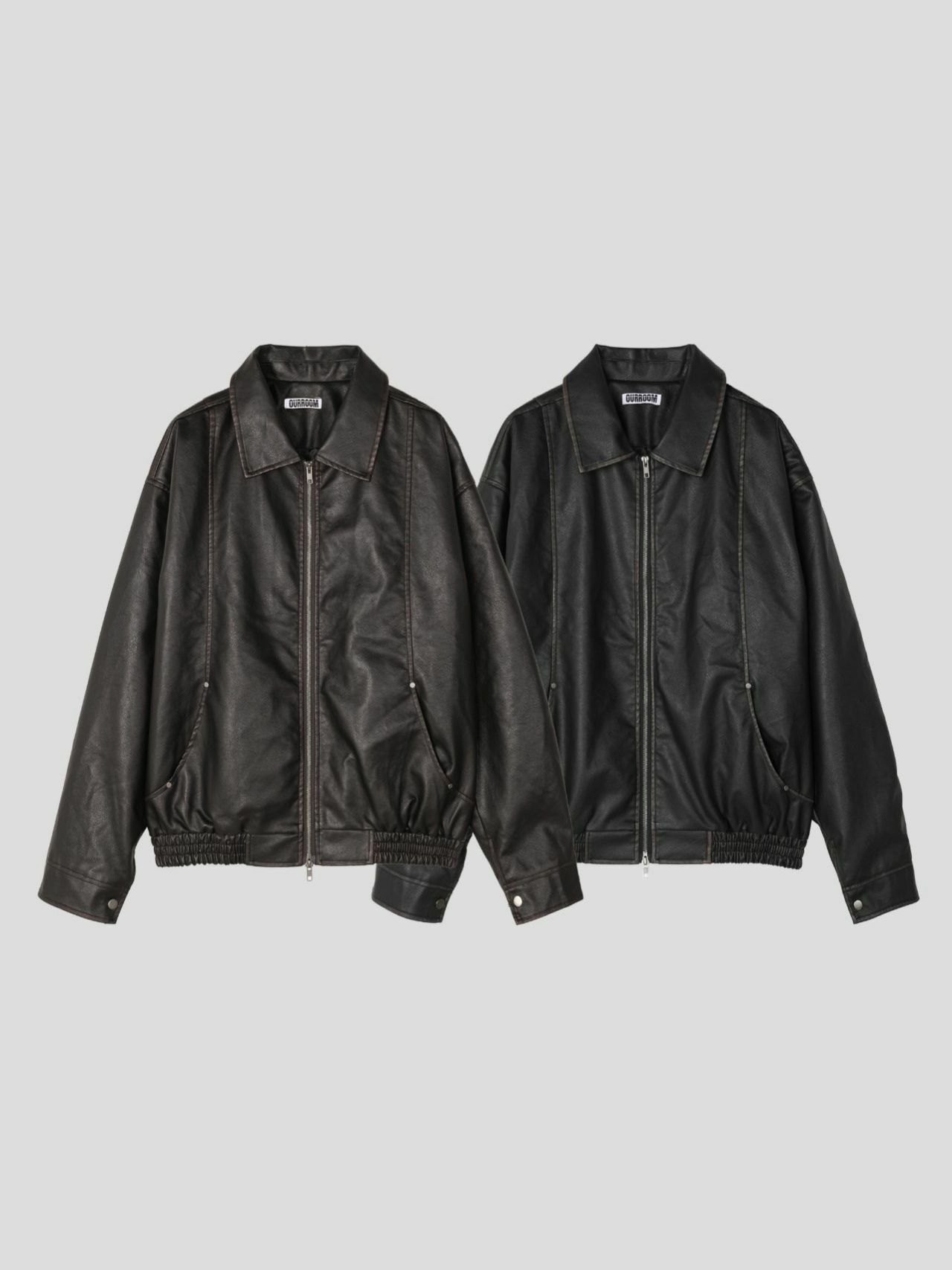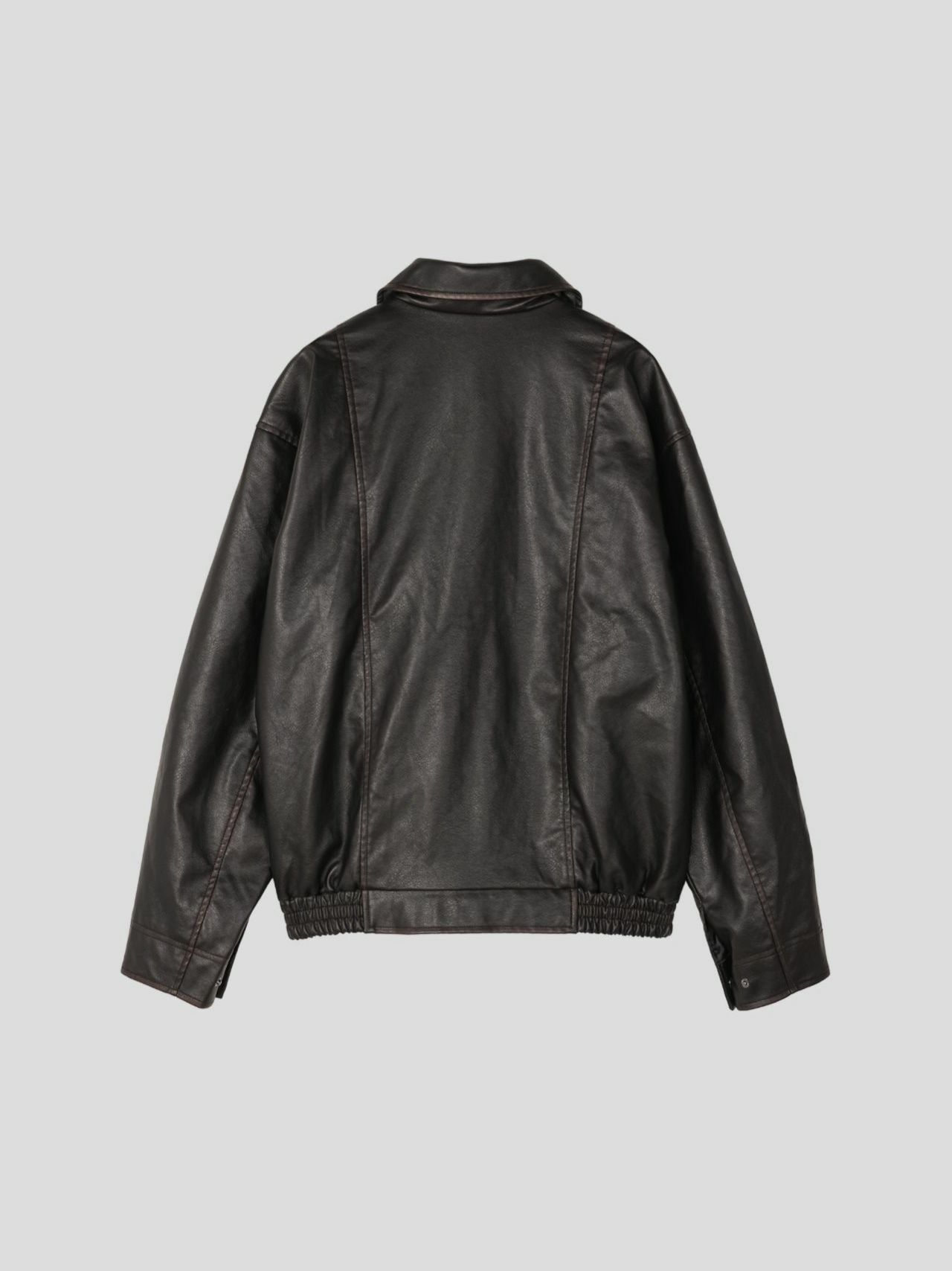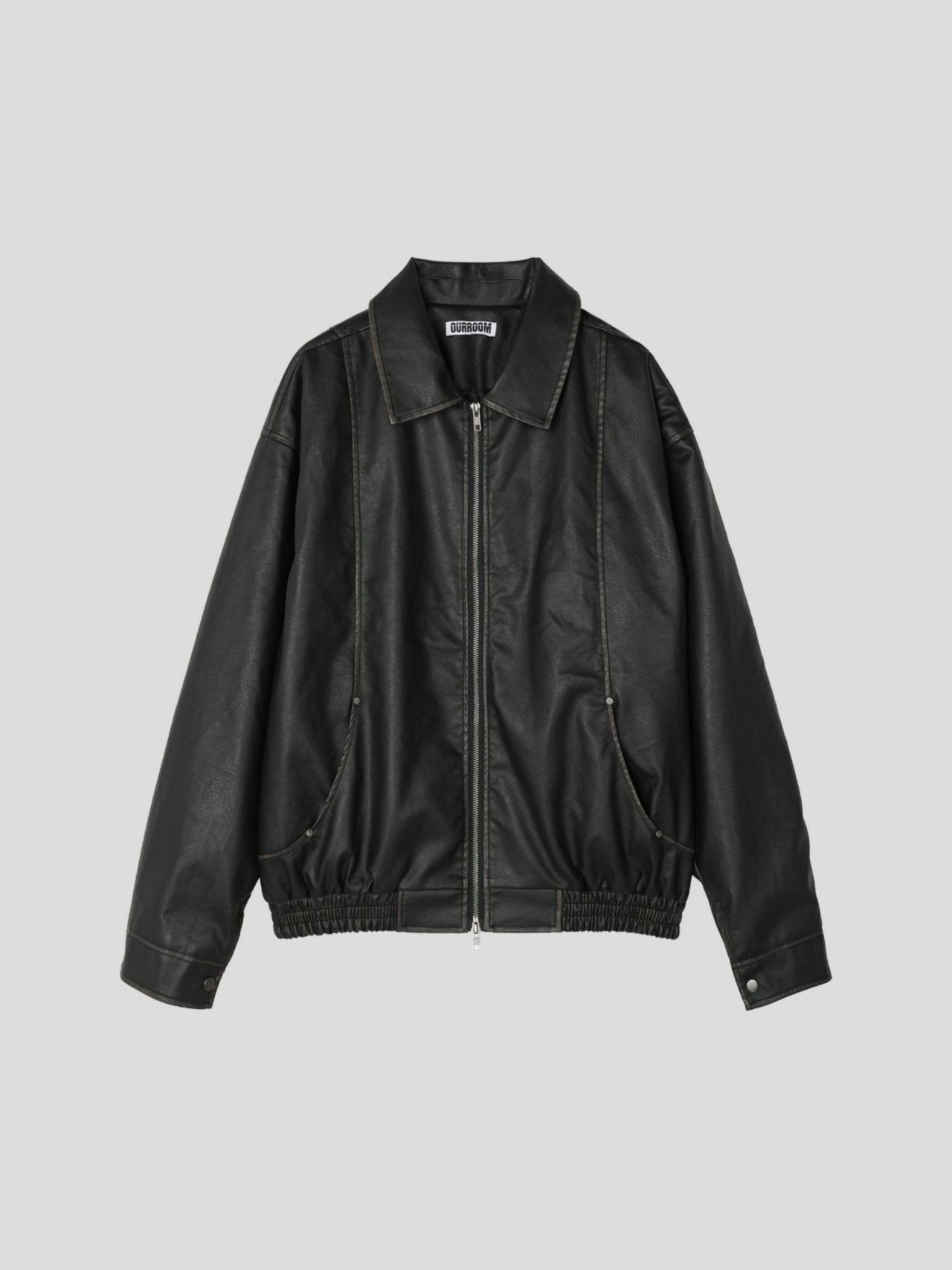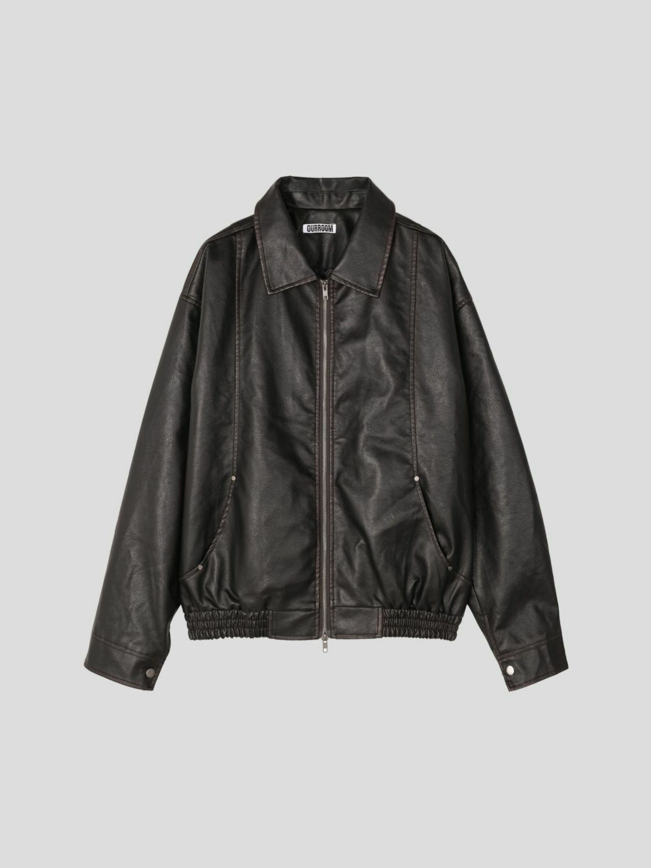 淨色反領拉鍊合成皮褸 OUR ROOM-057JK