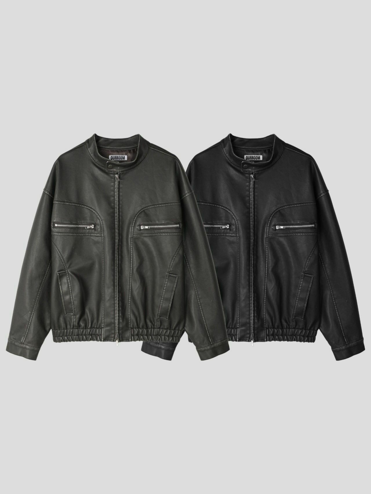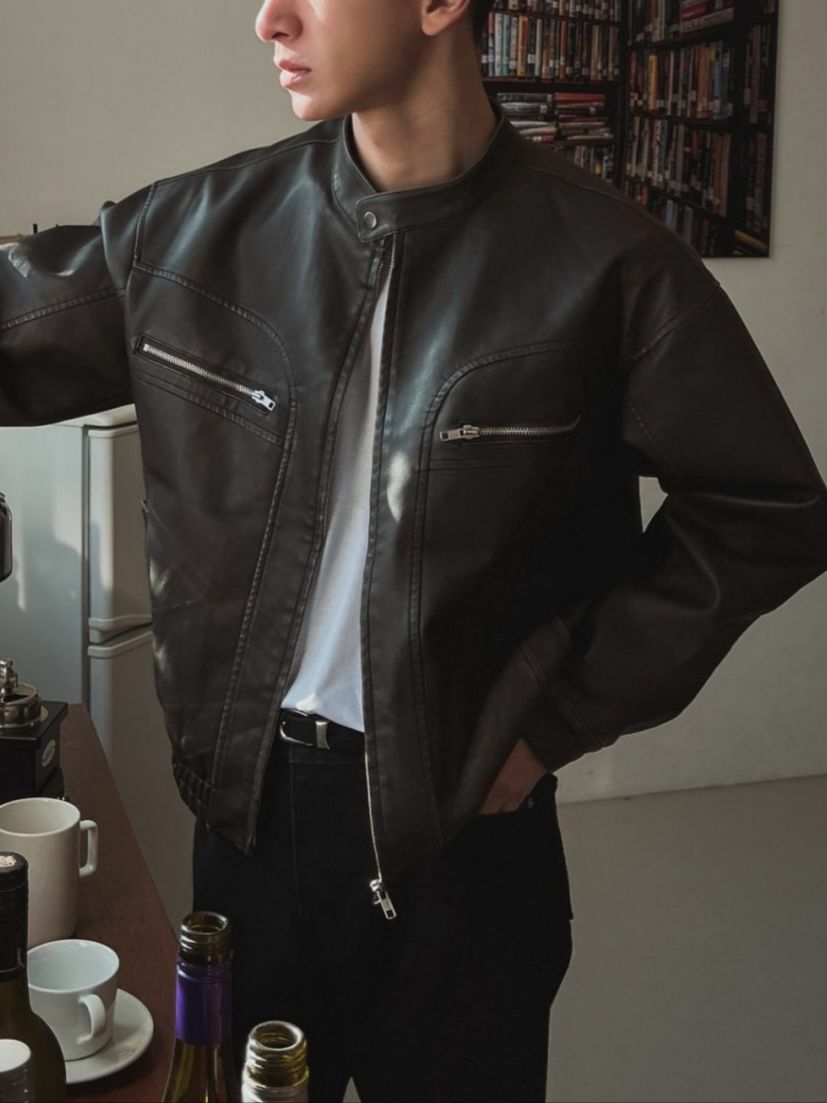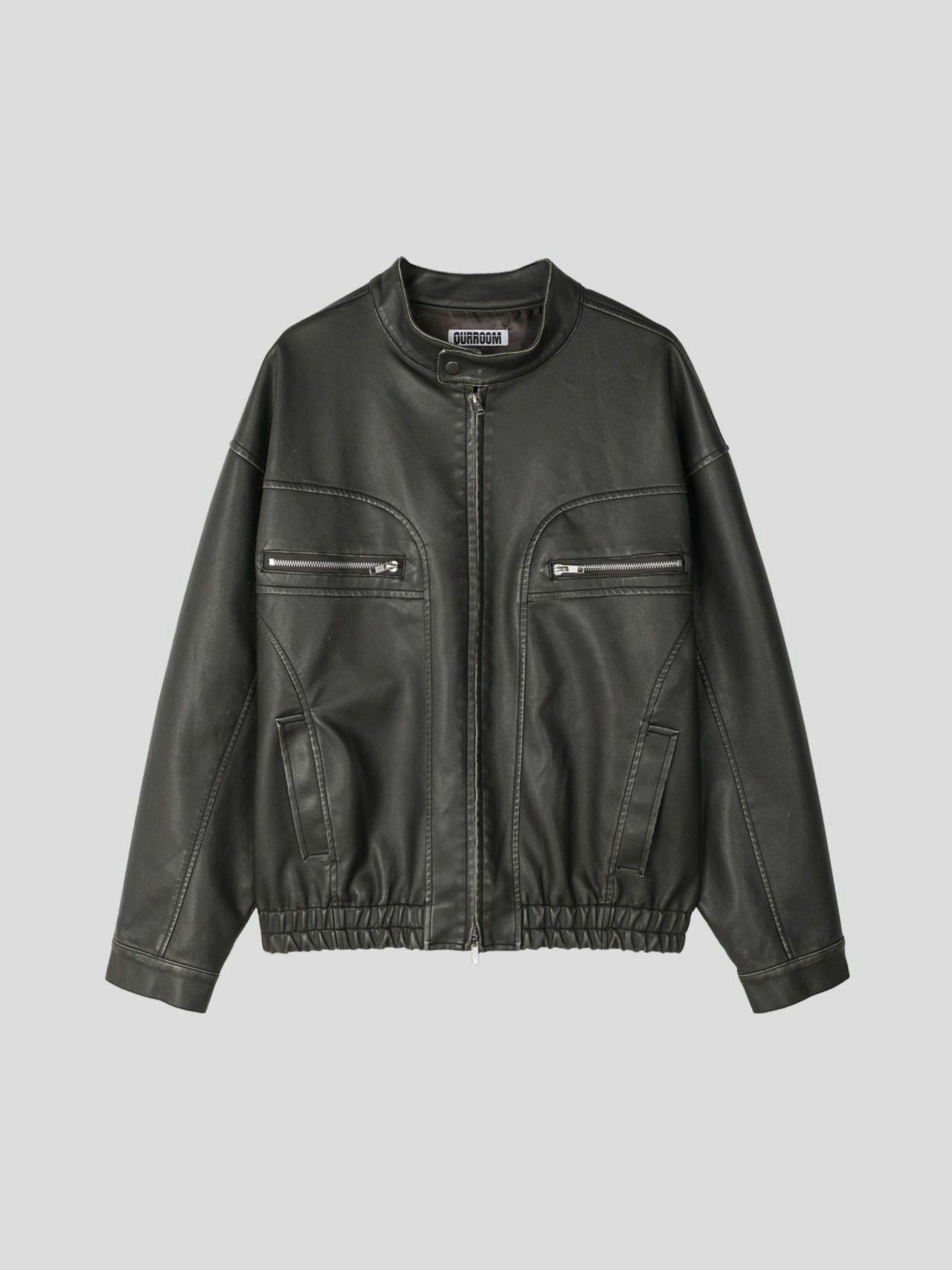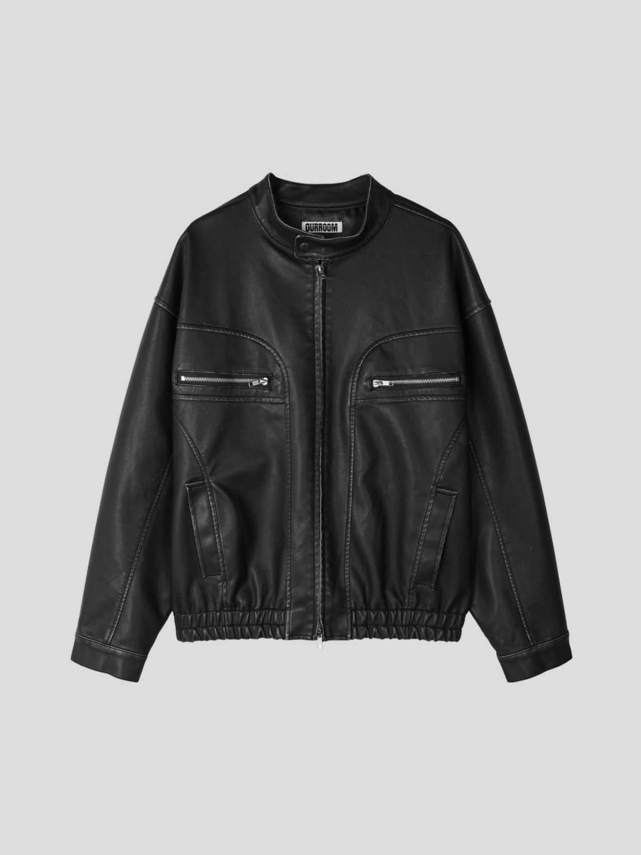 淨色企領拉鍊合成皮褸 OUR ROOM-058JK