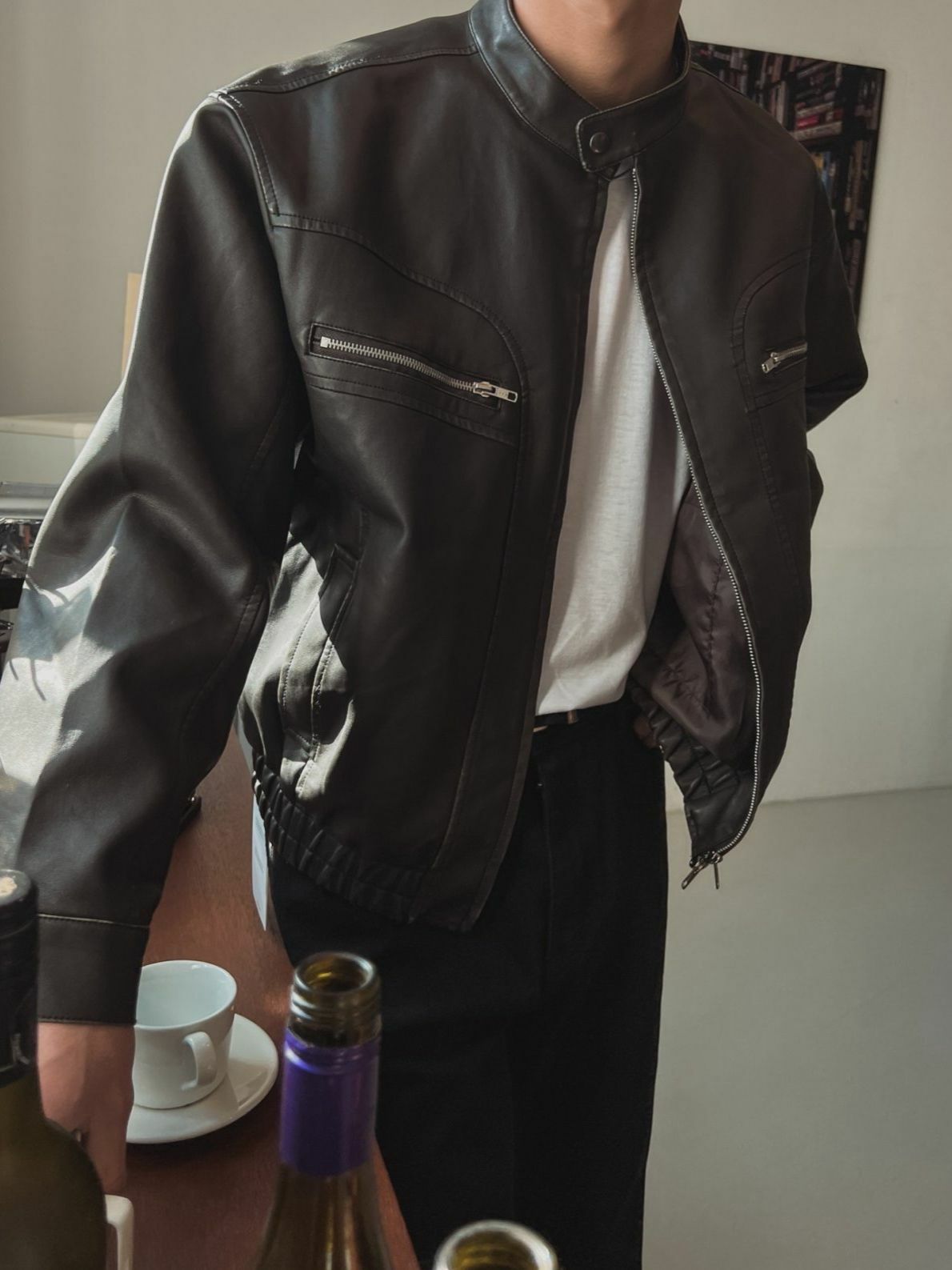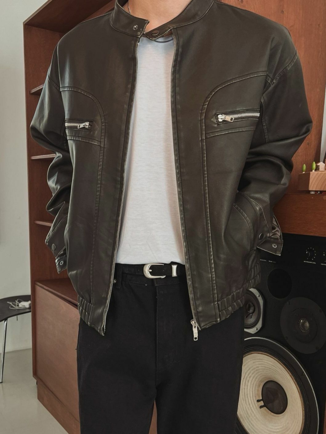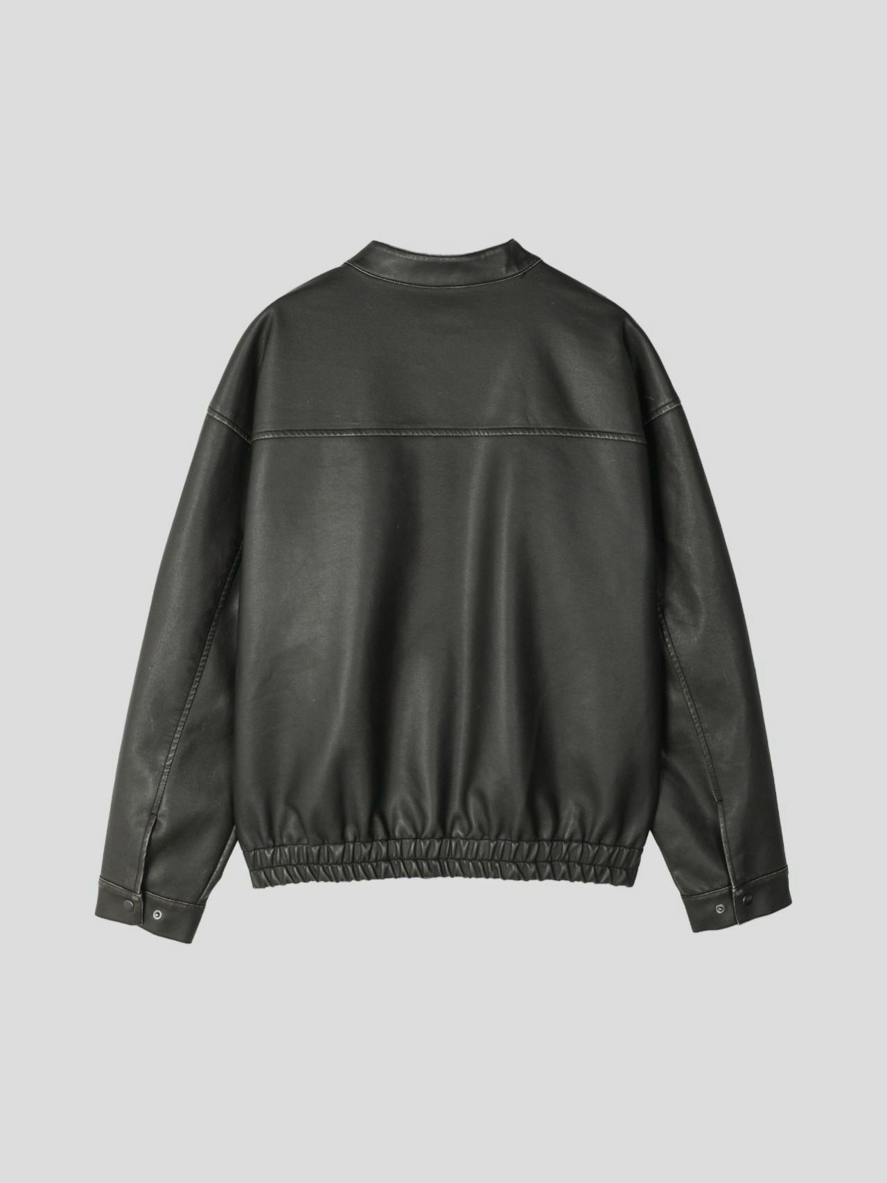 淨色企領拉鍊合成皮褸 OUR ROOM-058JK