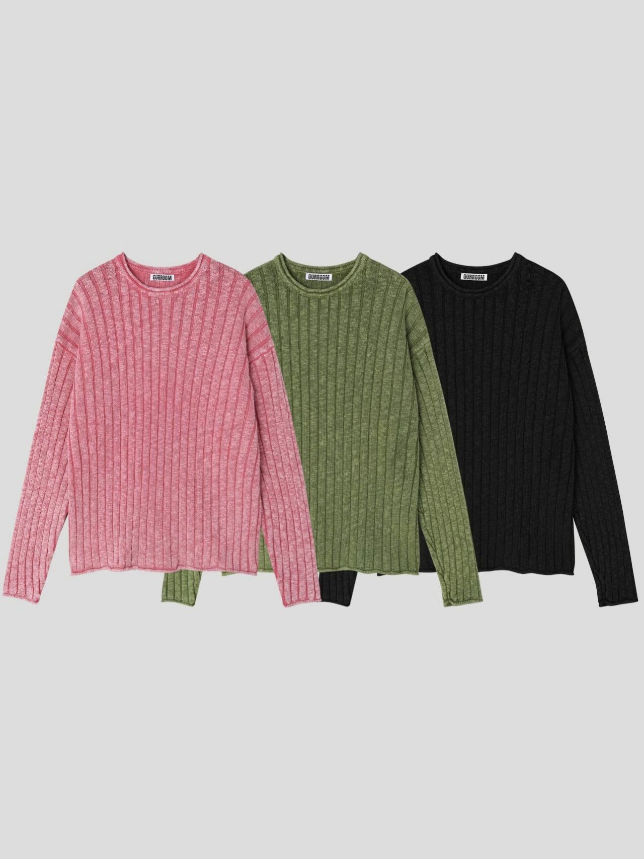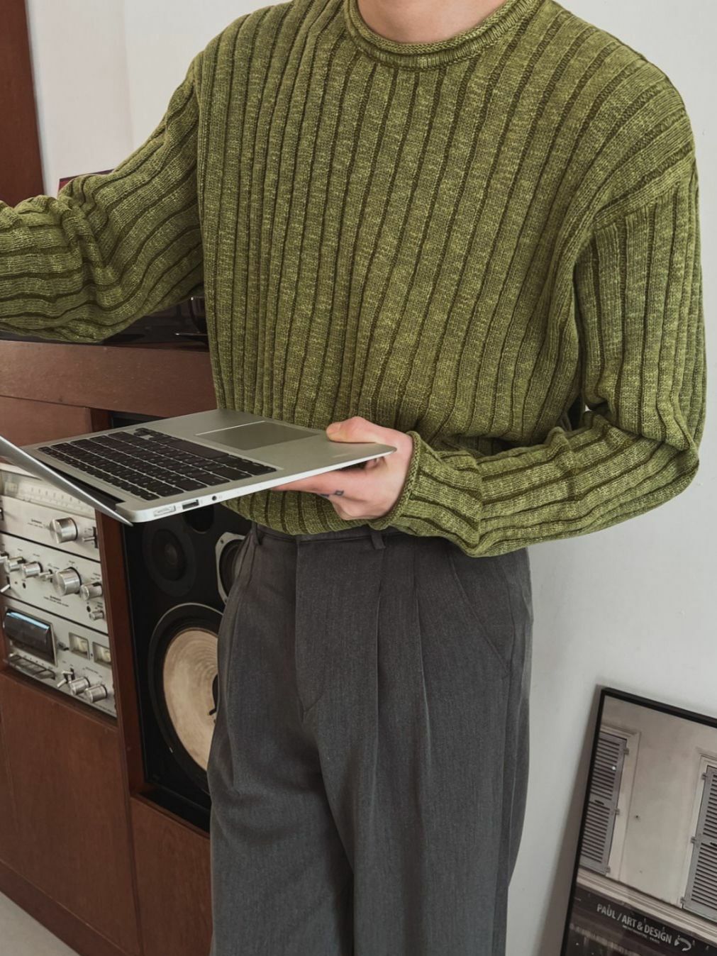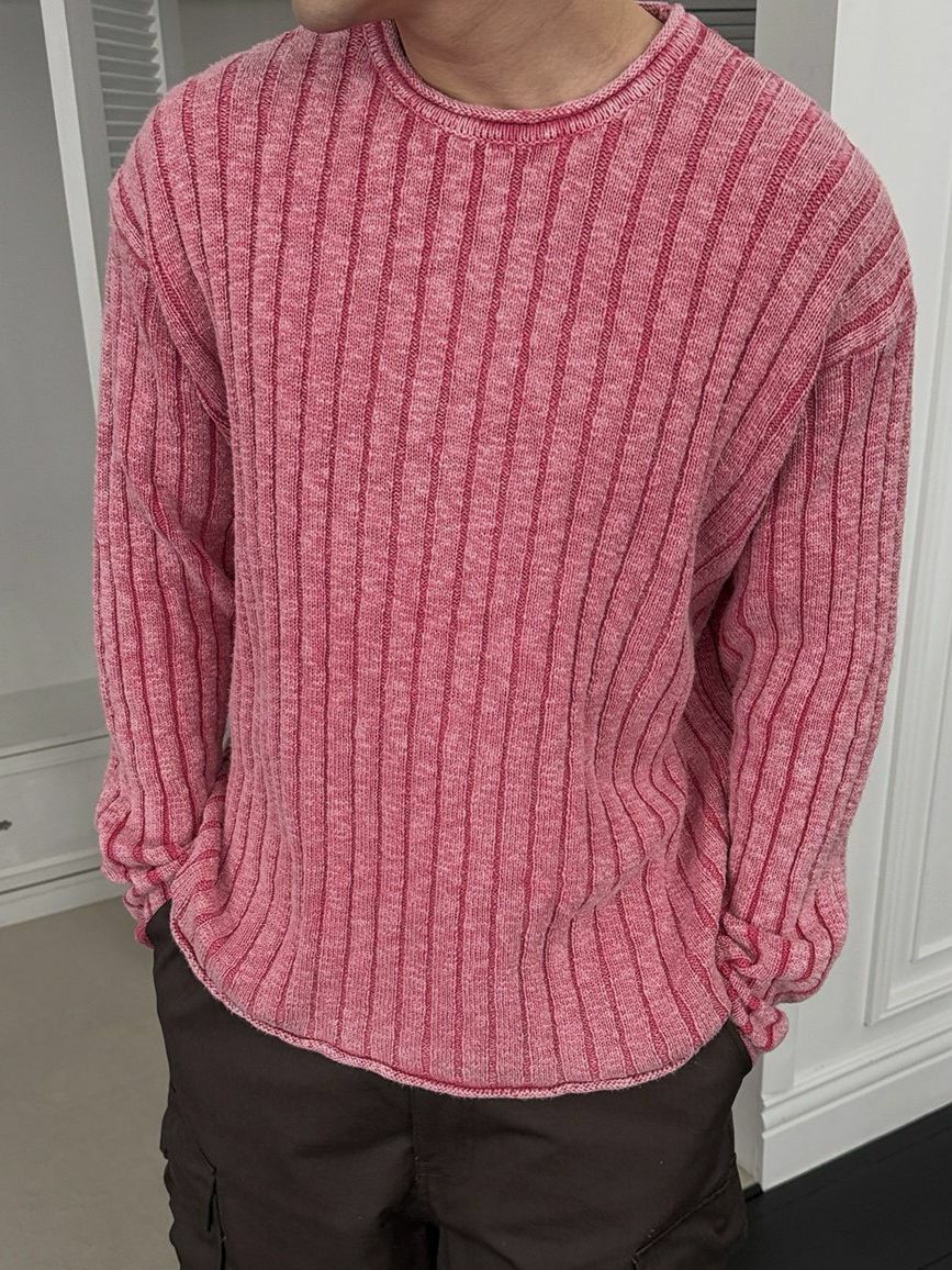 淨色圓領暗直紋針織衫 OUR ROOM-060T