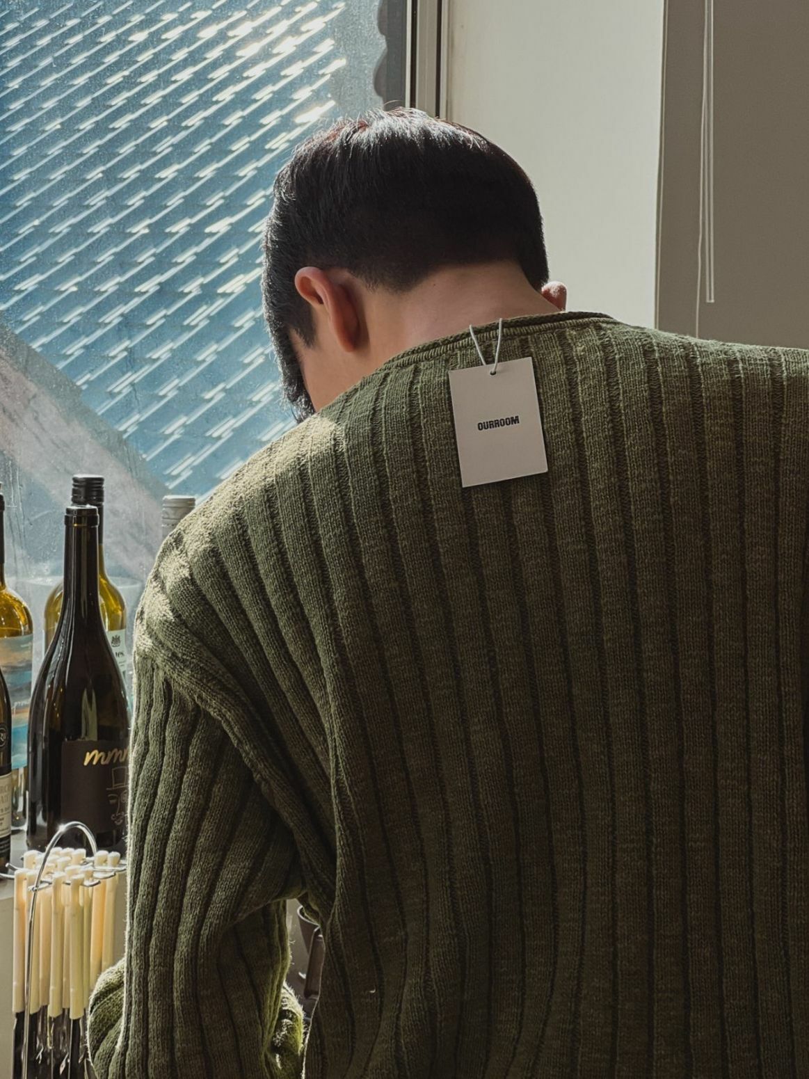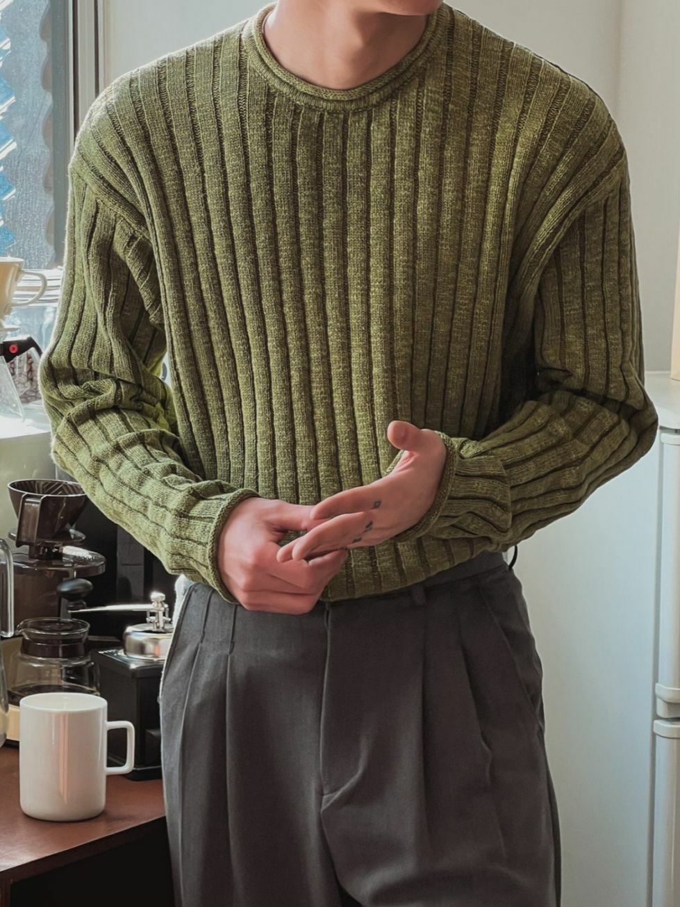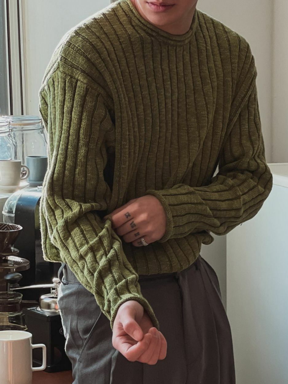 淨色圓領暗直紋針織衫 OUR ROOM-060T