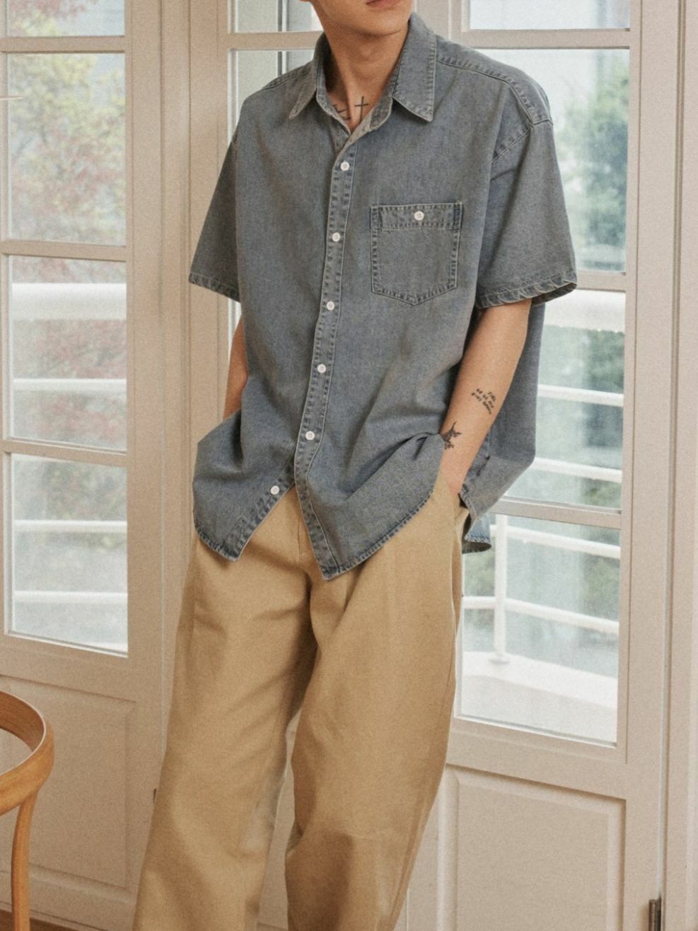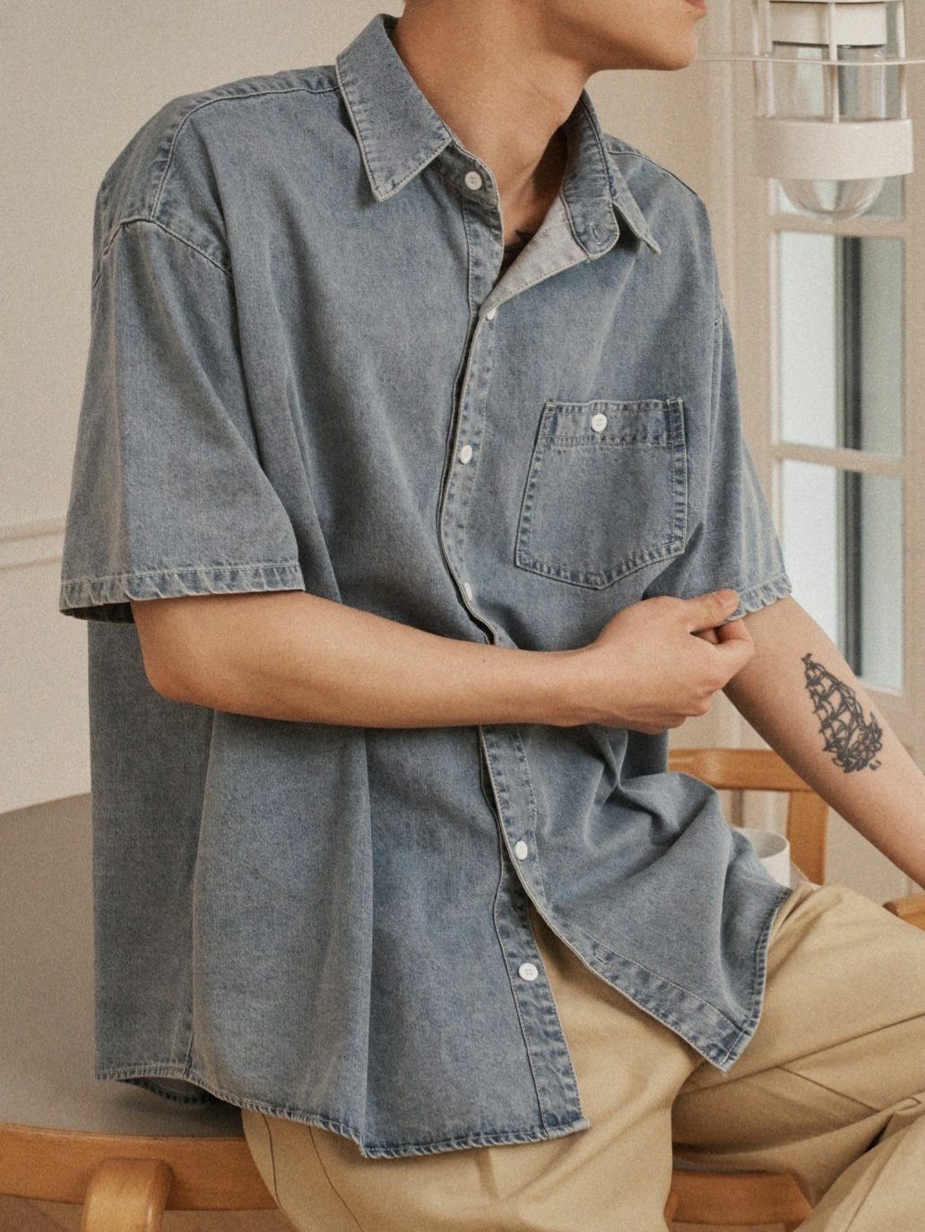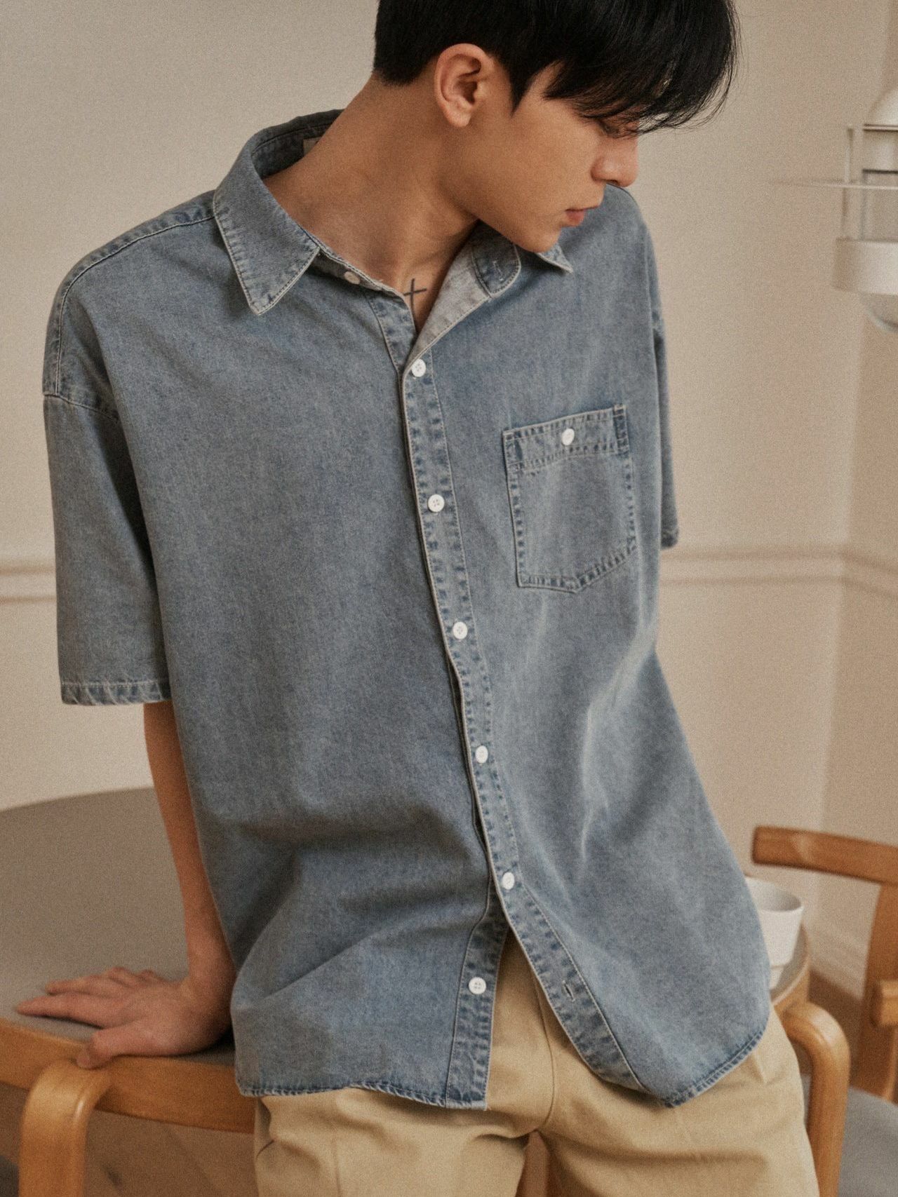 洗水牛仔短袖恤衫 OUR ROOM-073S