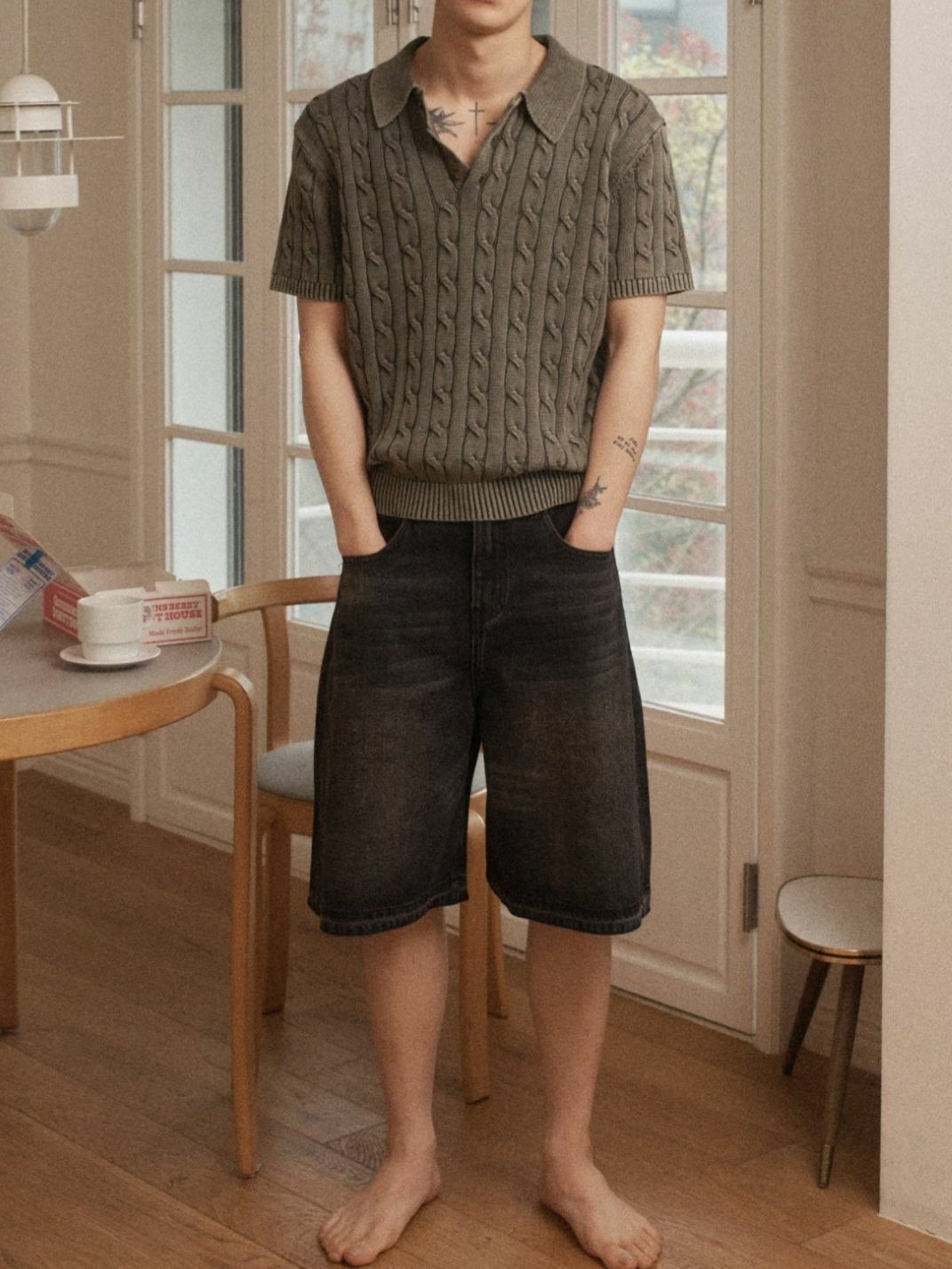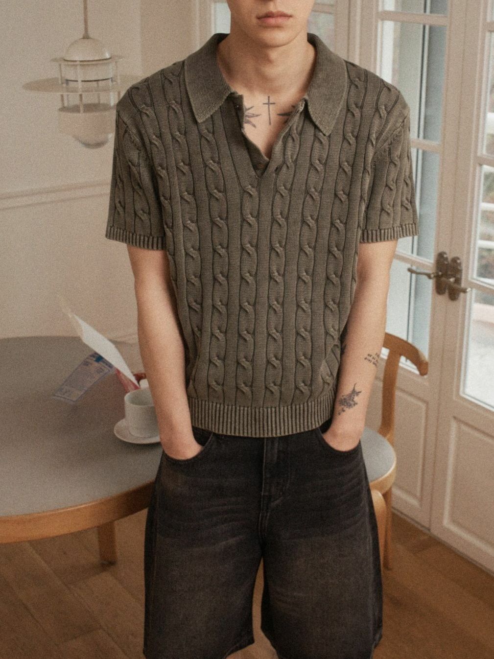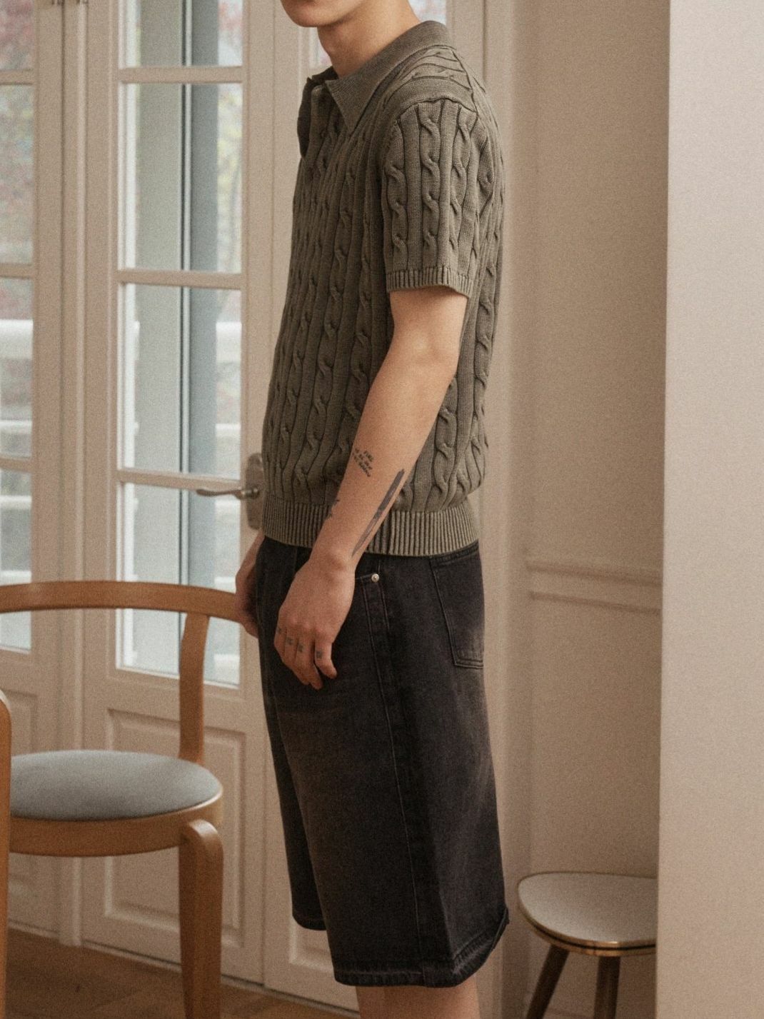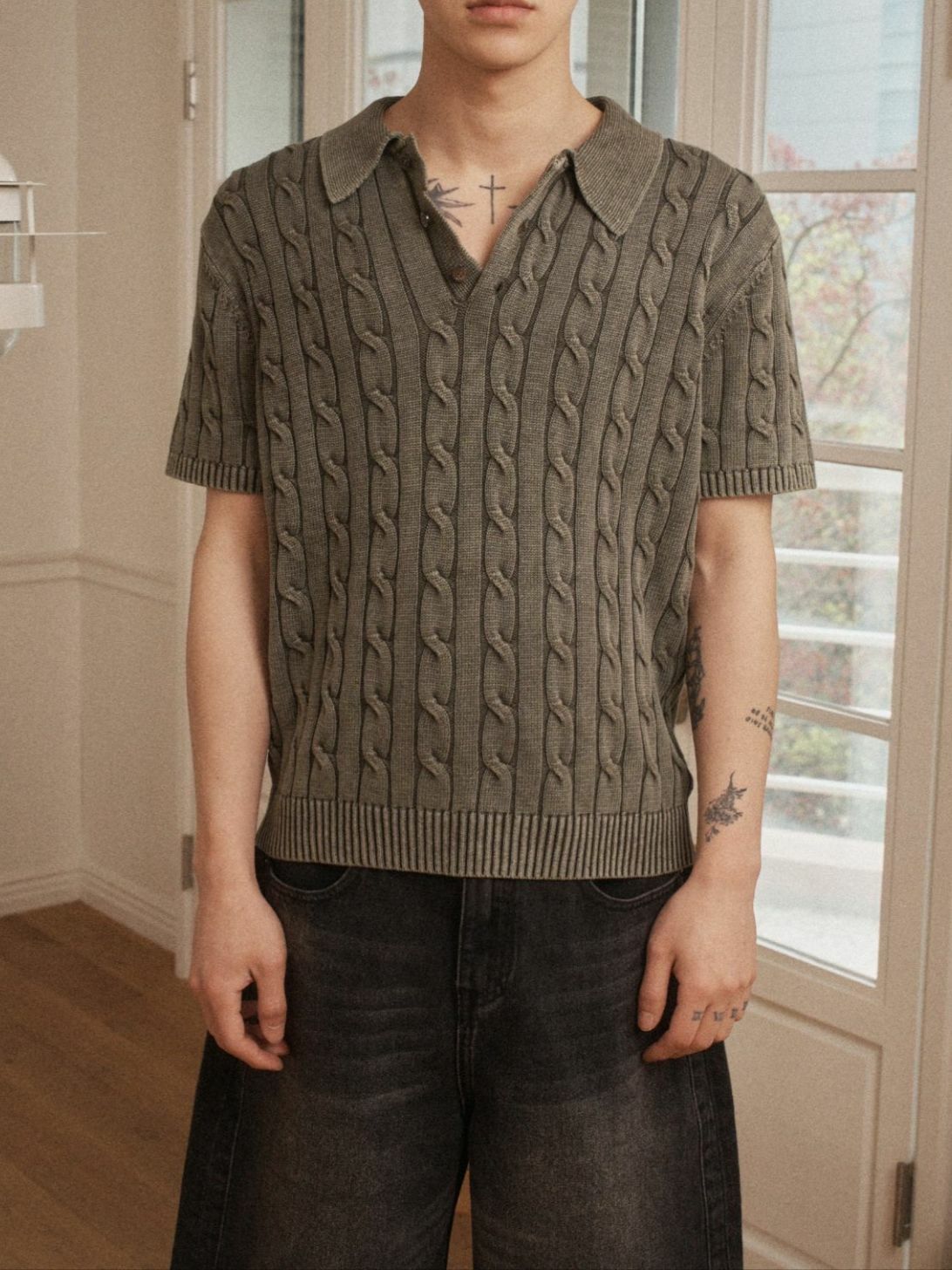 淨色暗紋短袖Polo Tee OUR ROOM-082T