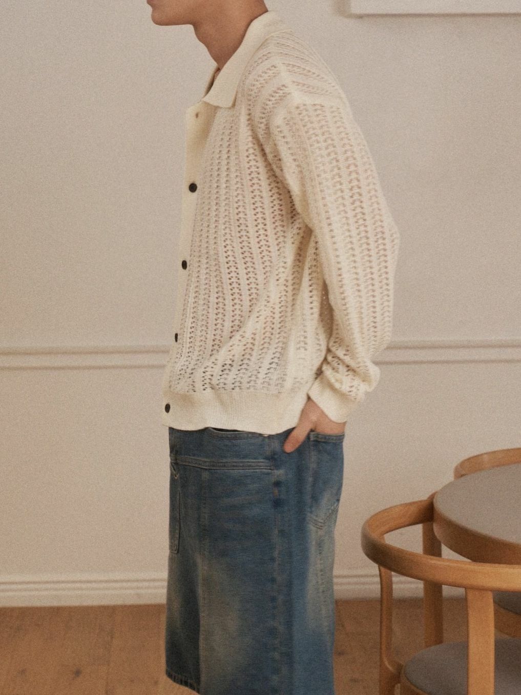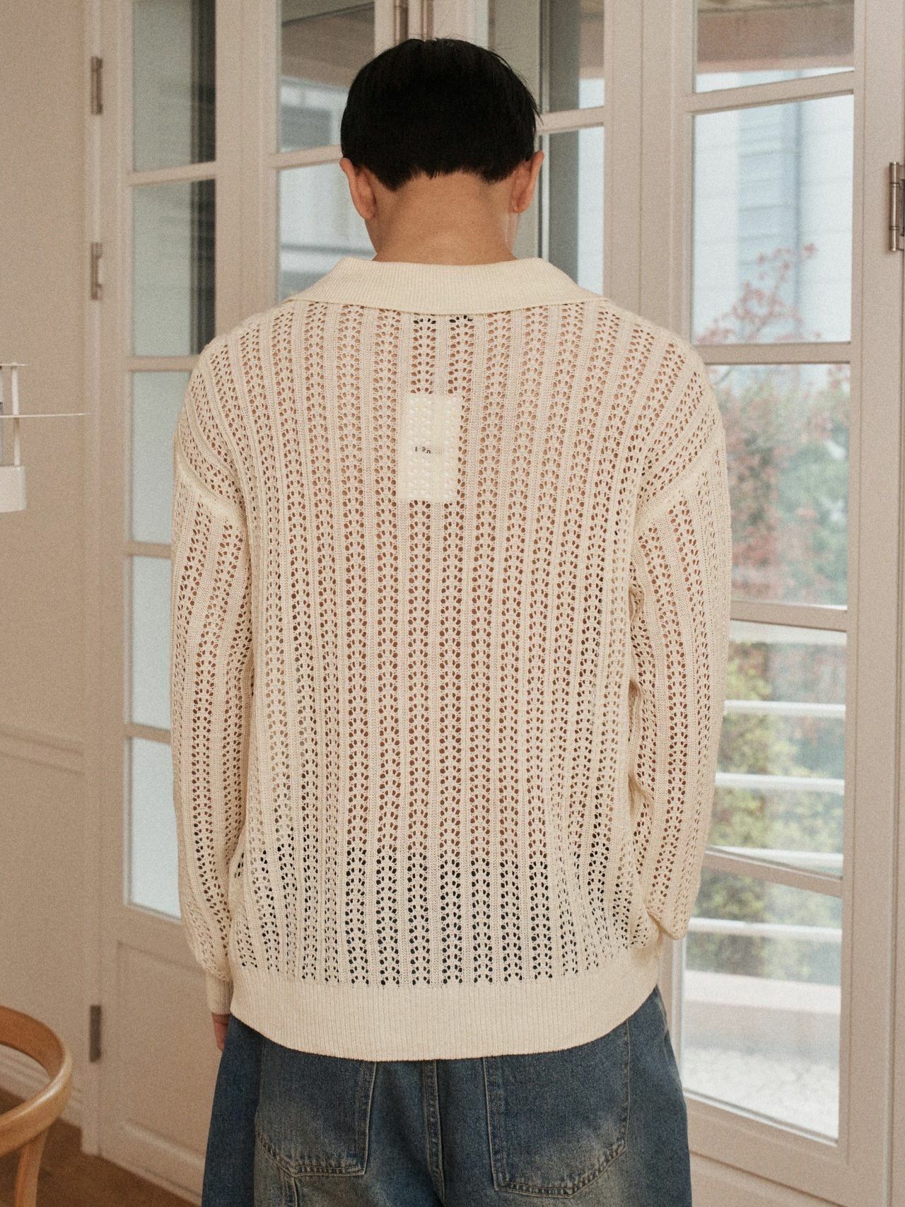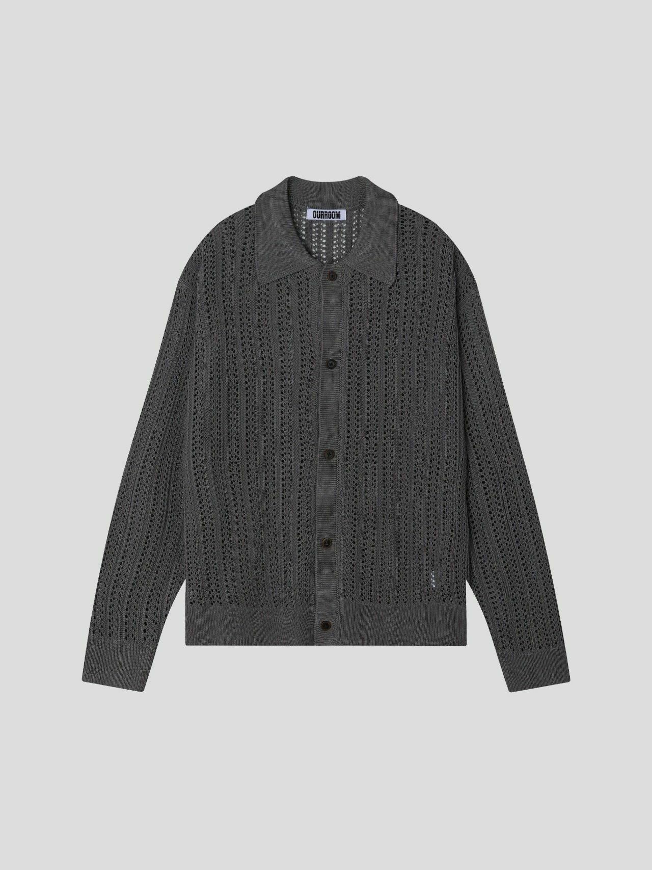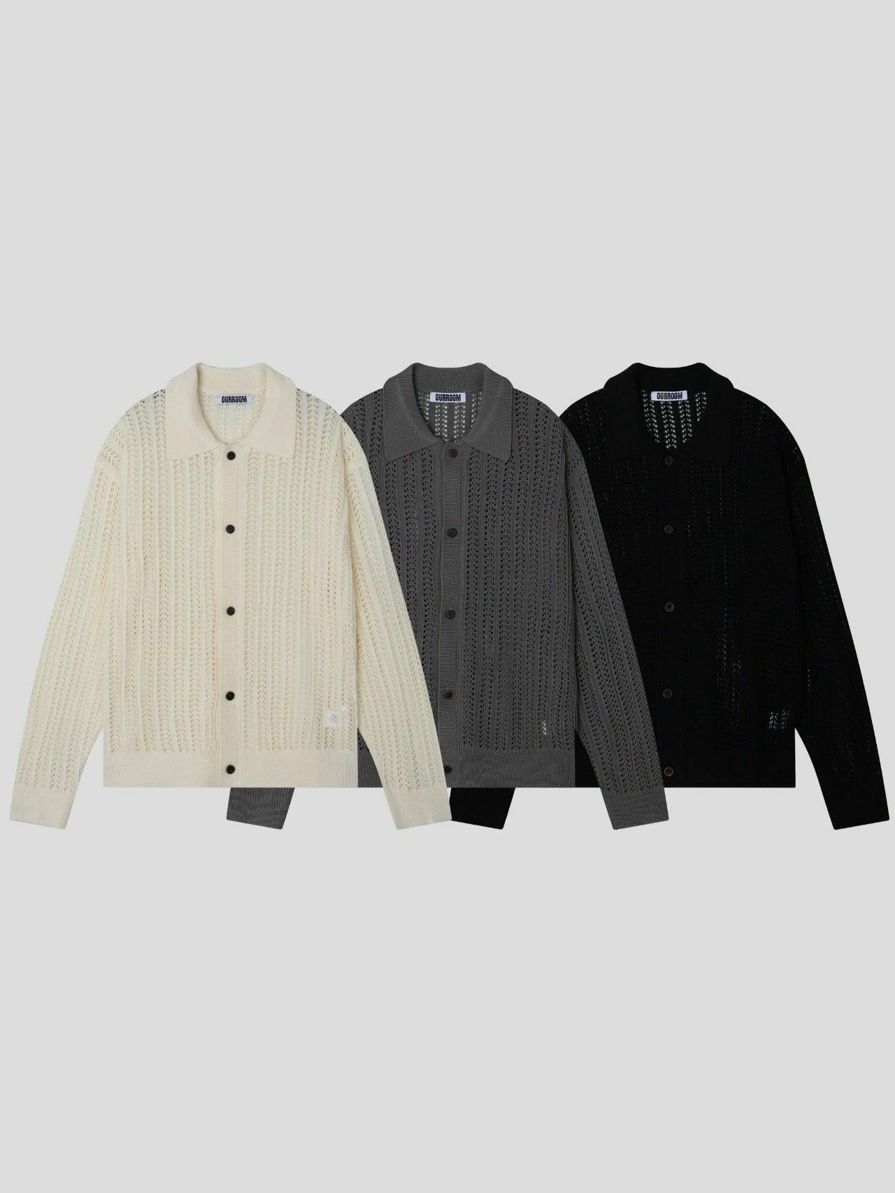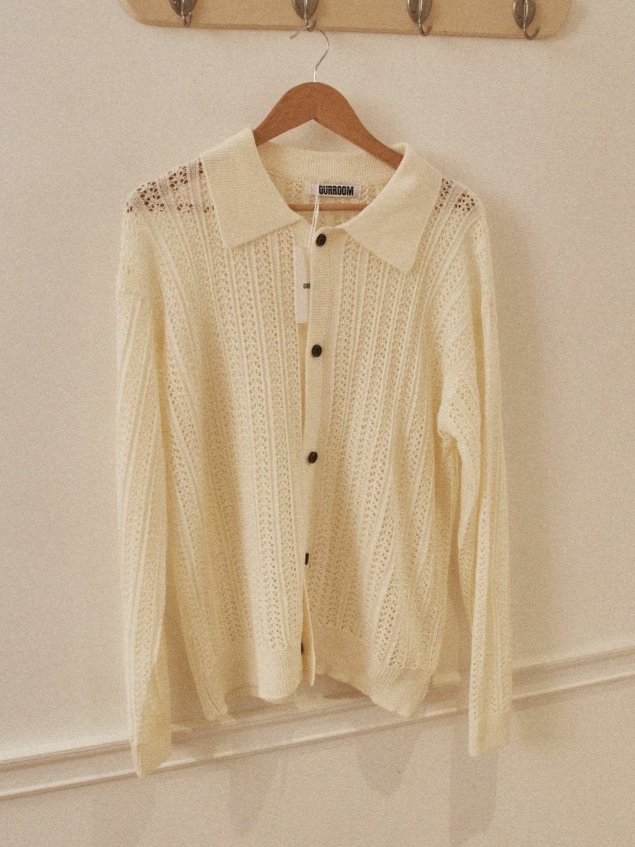 淨色反領暗紋開胸針織線外套 OUR ROOM-084JK