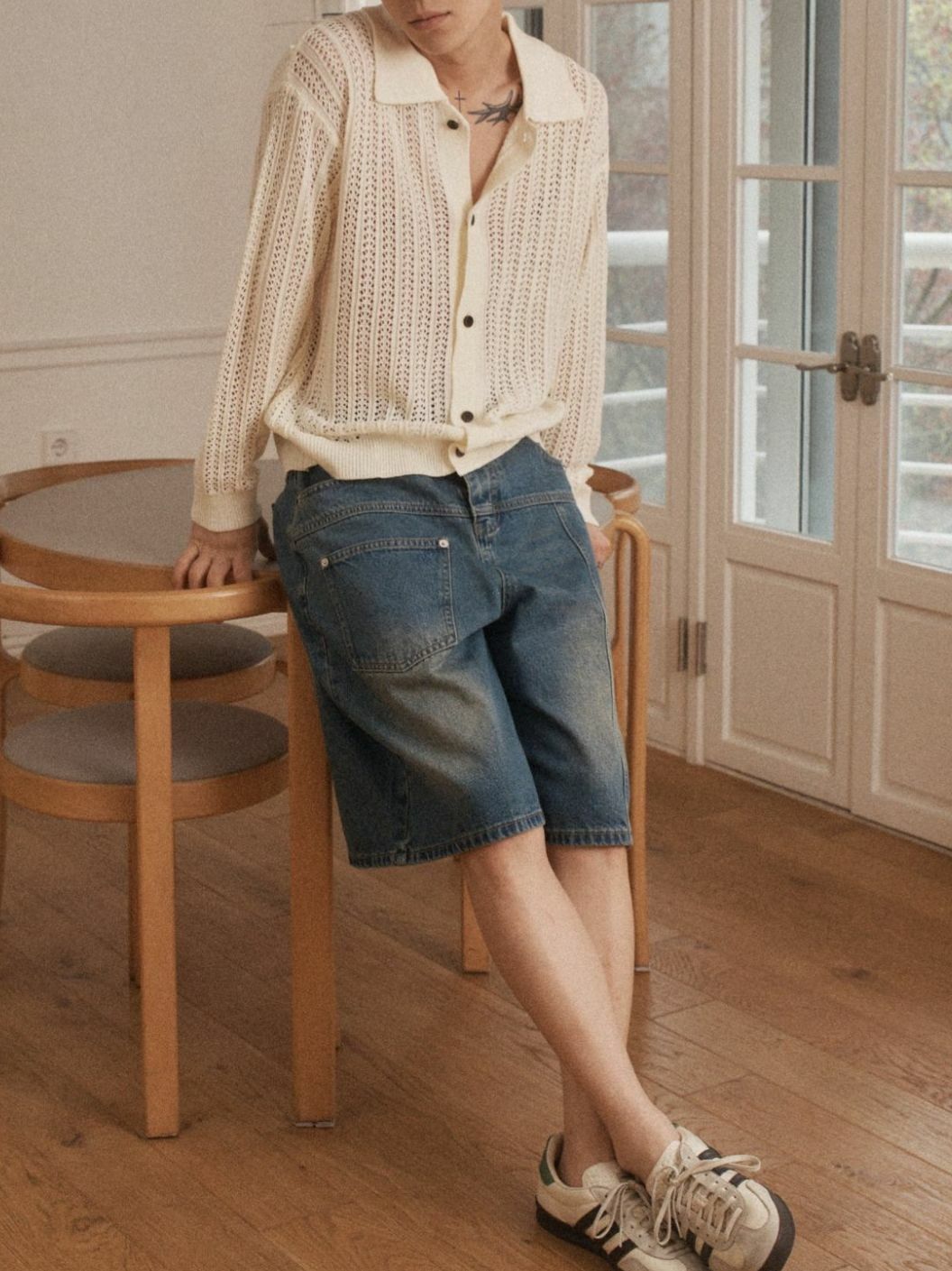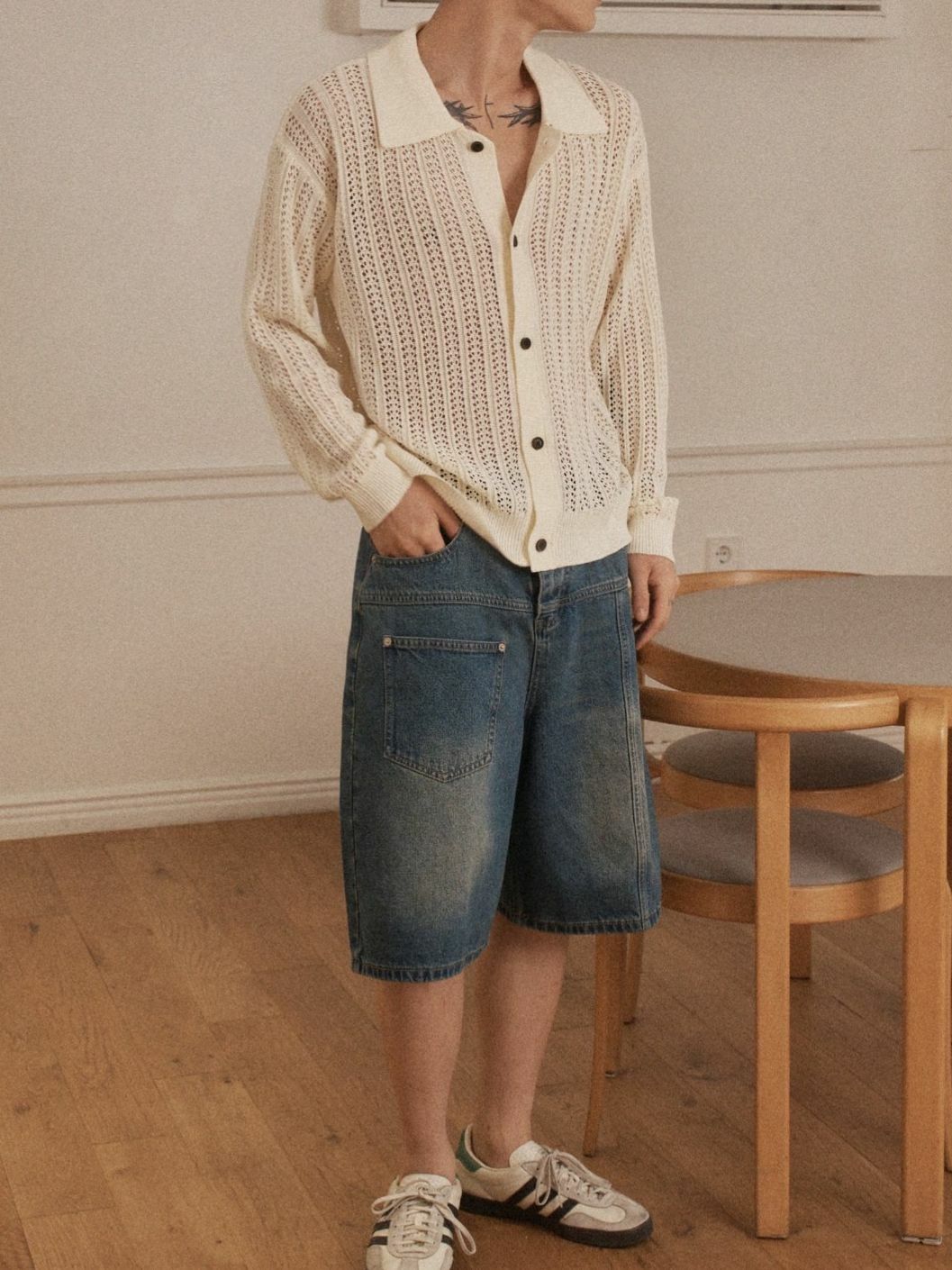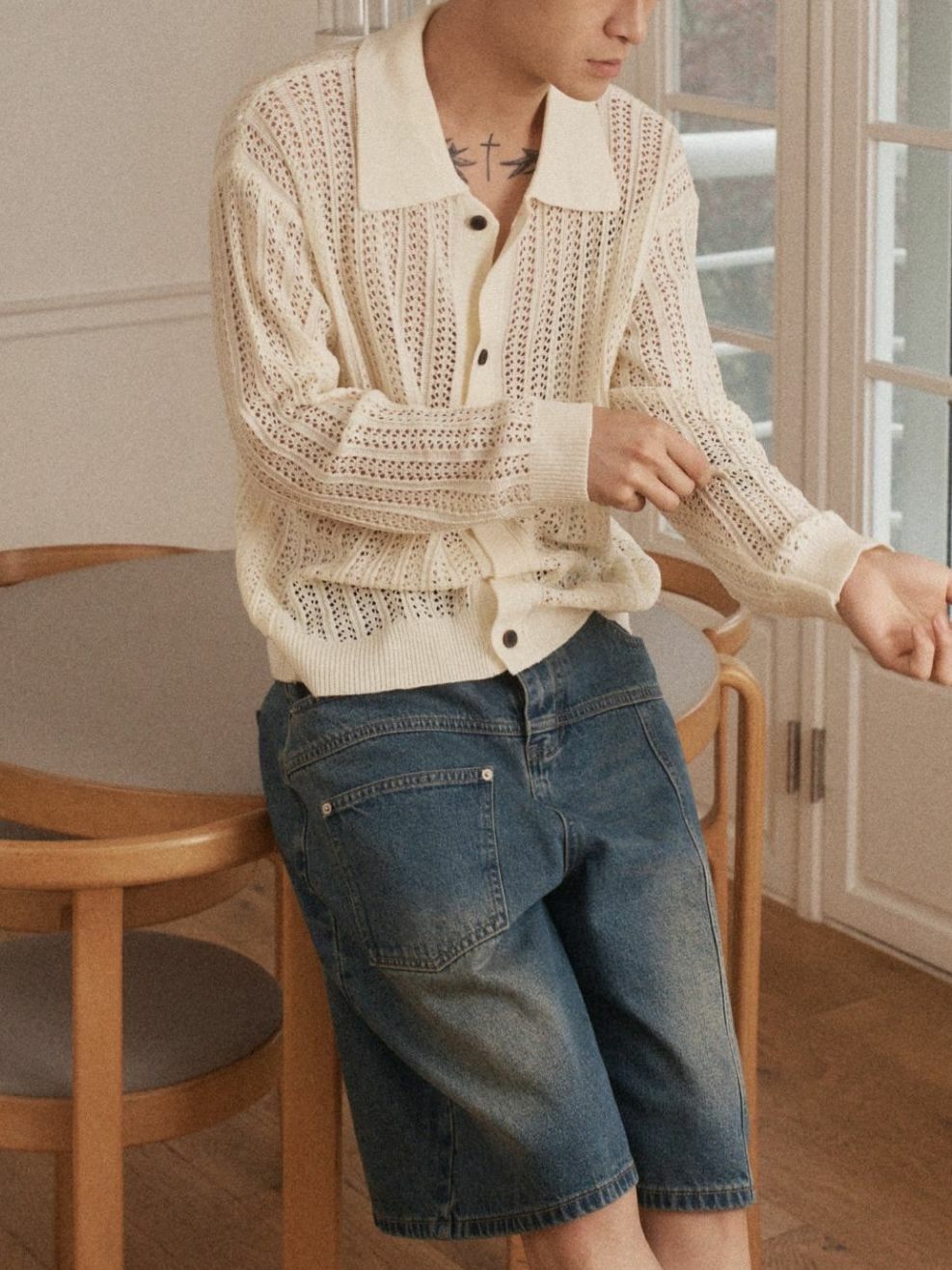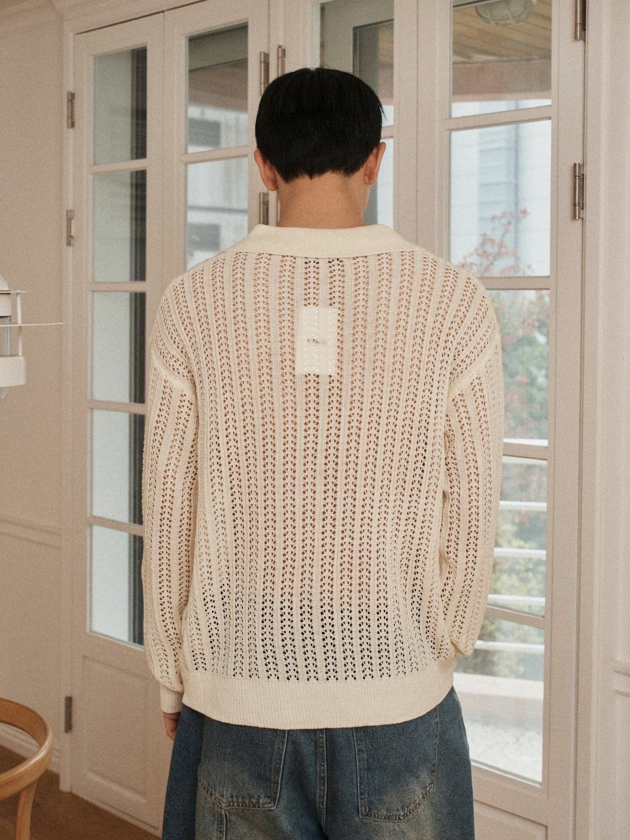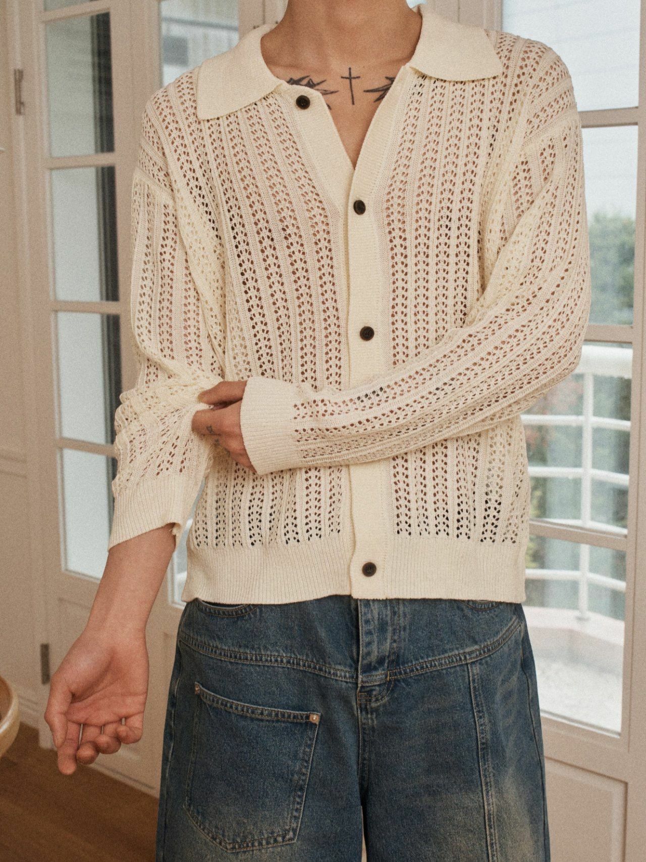淨色反領暗紋開胸針織線外套 OUR ROOM-084JK
