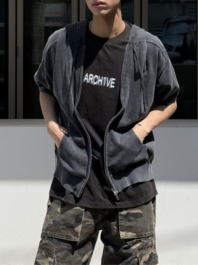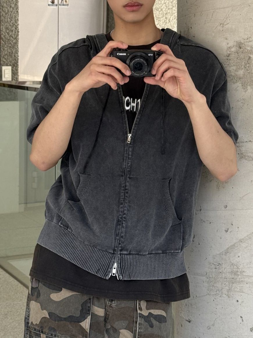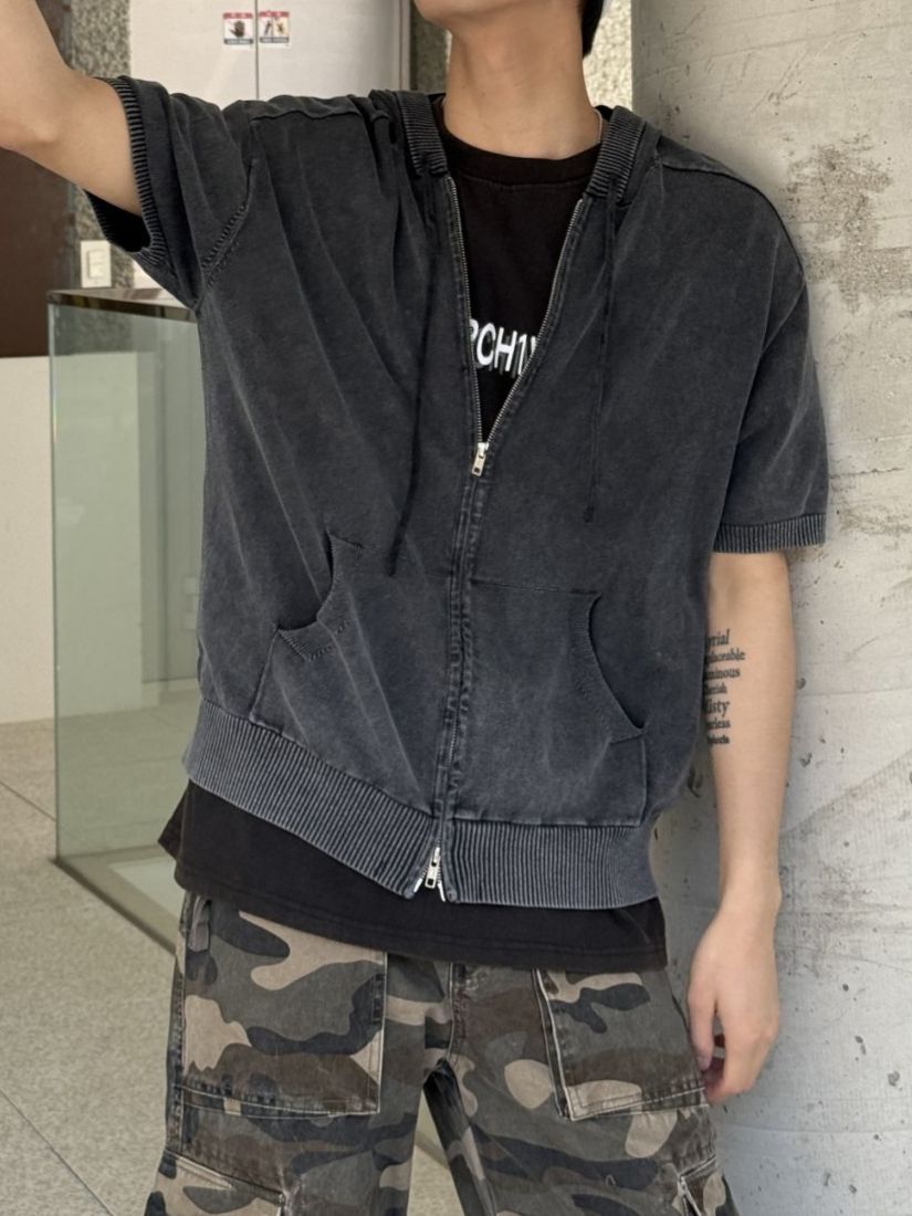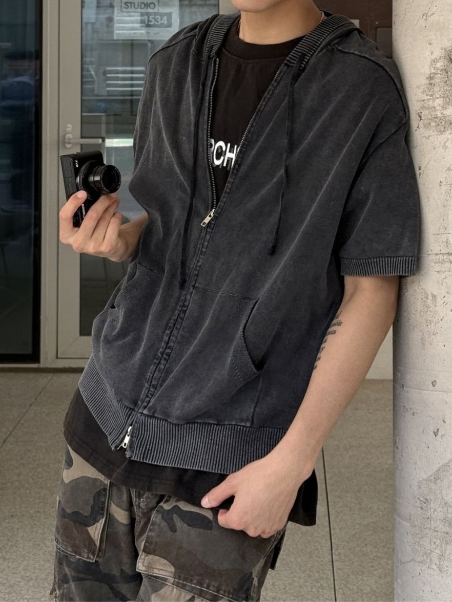 洗水連帽拉鍊短袖外套 REMAIN-014SOUR ROOM-099JK