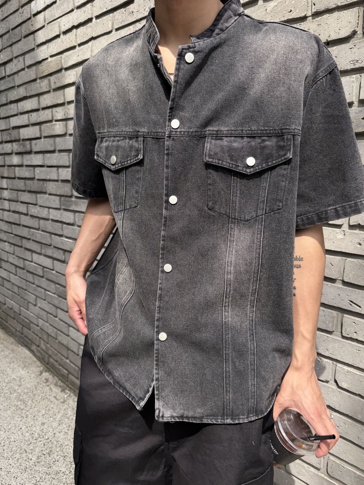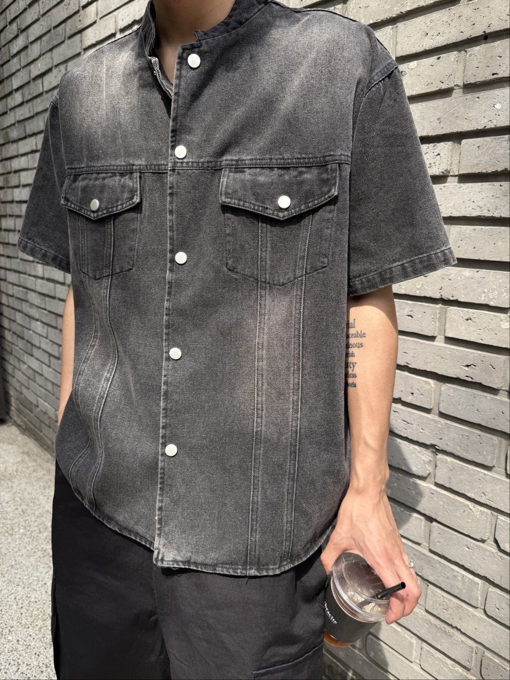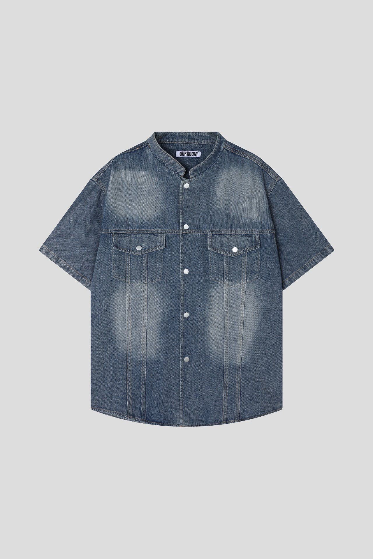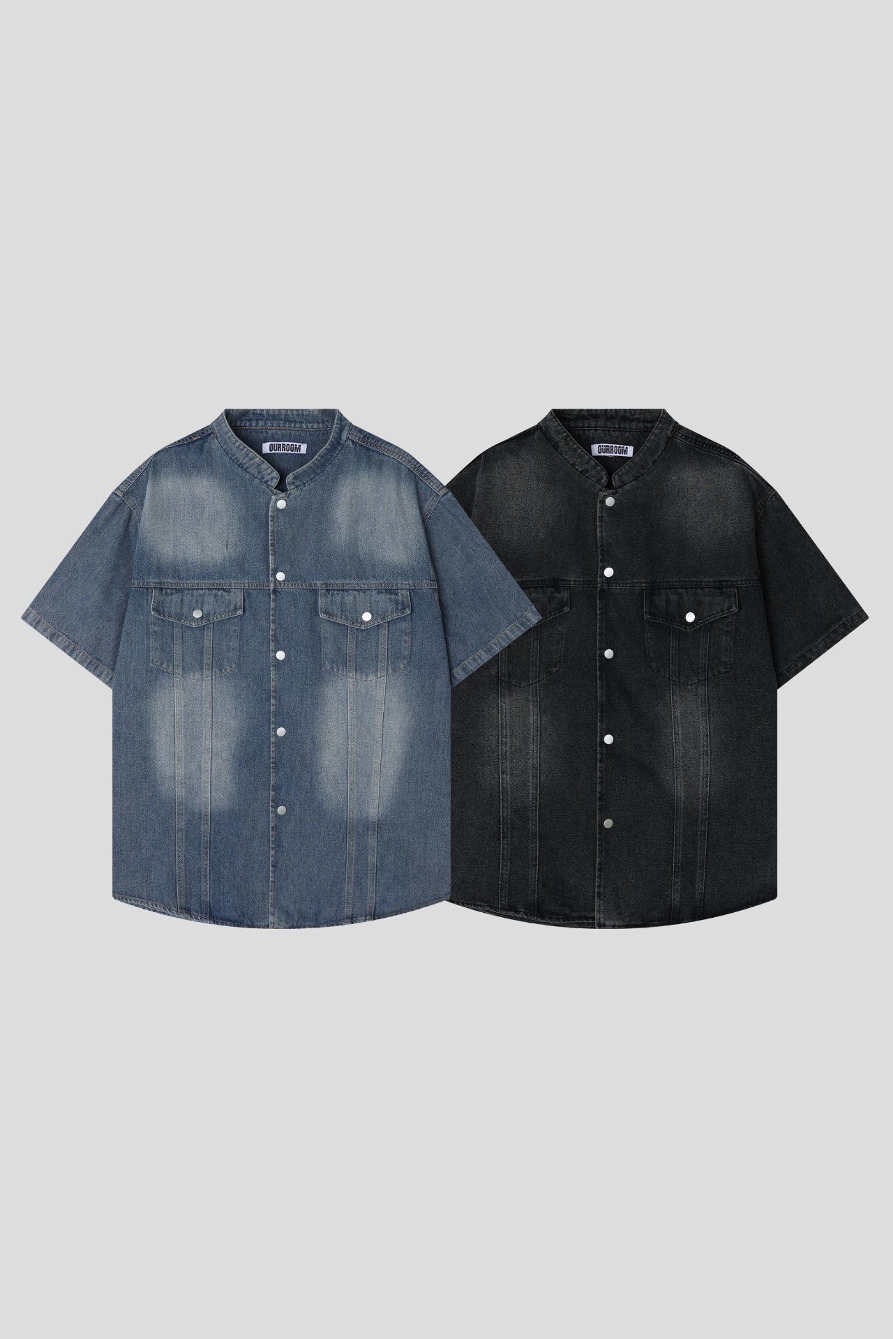 洗水企領牛仔短袖恤衫 OUR ROOM-113S