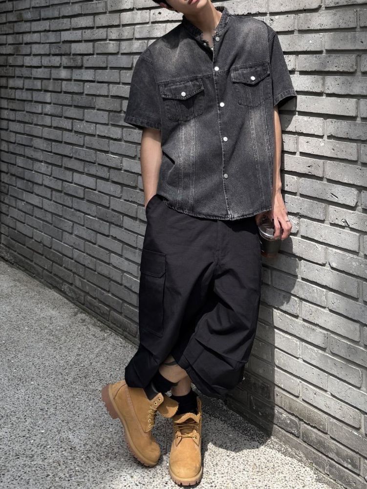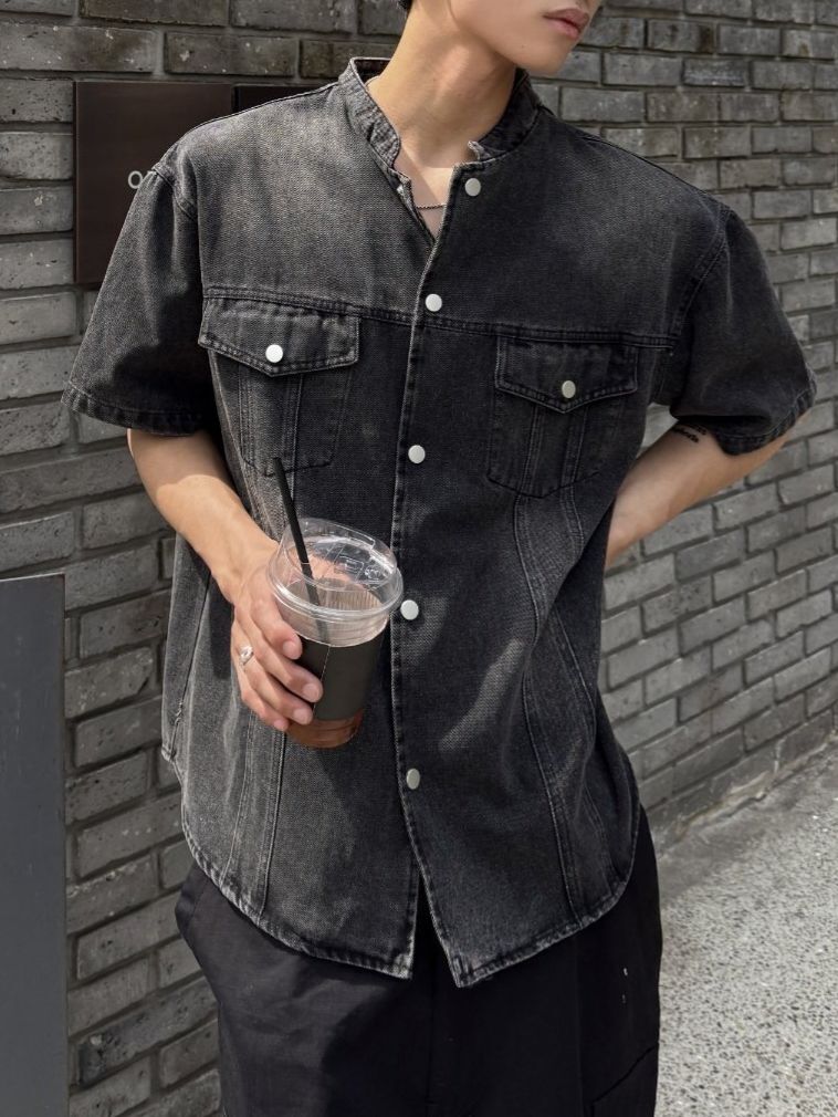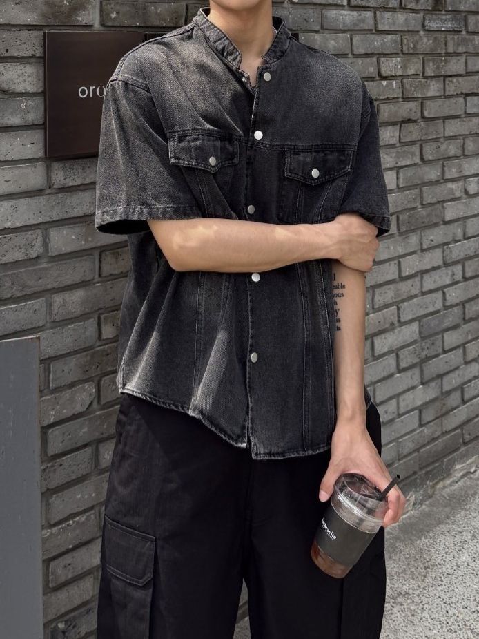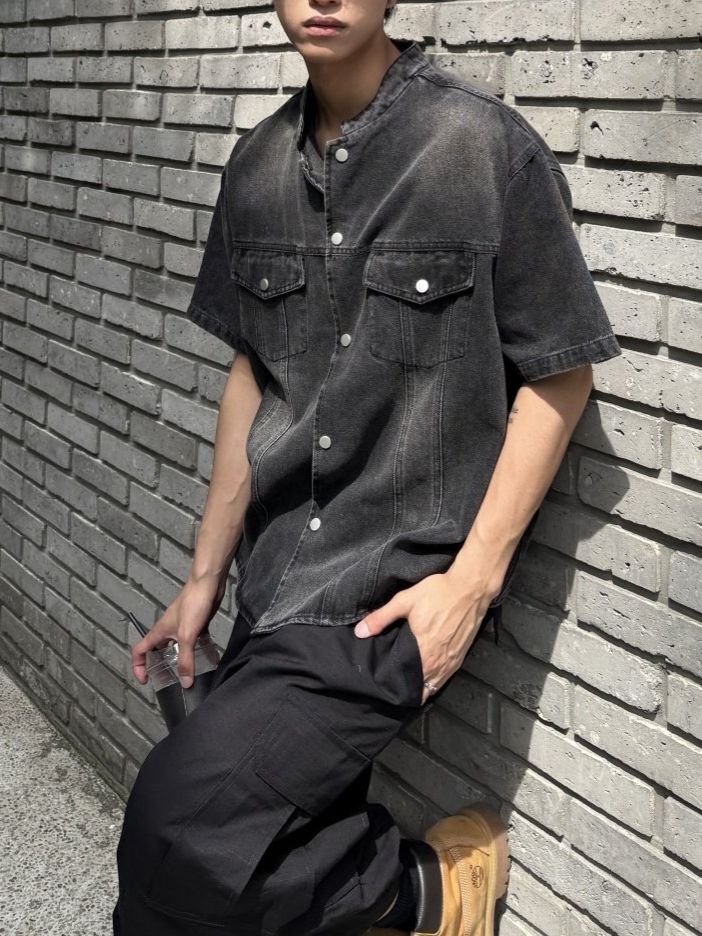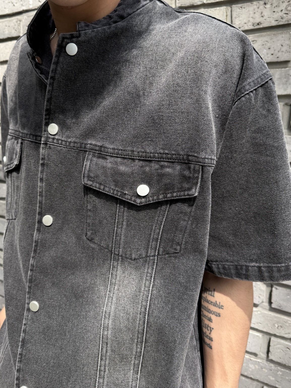 洗水企領牛仔短袖恤衫 OUR ROOM-113S