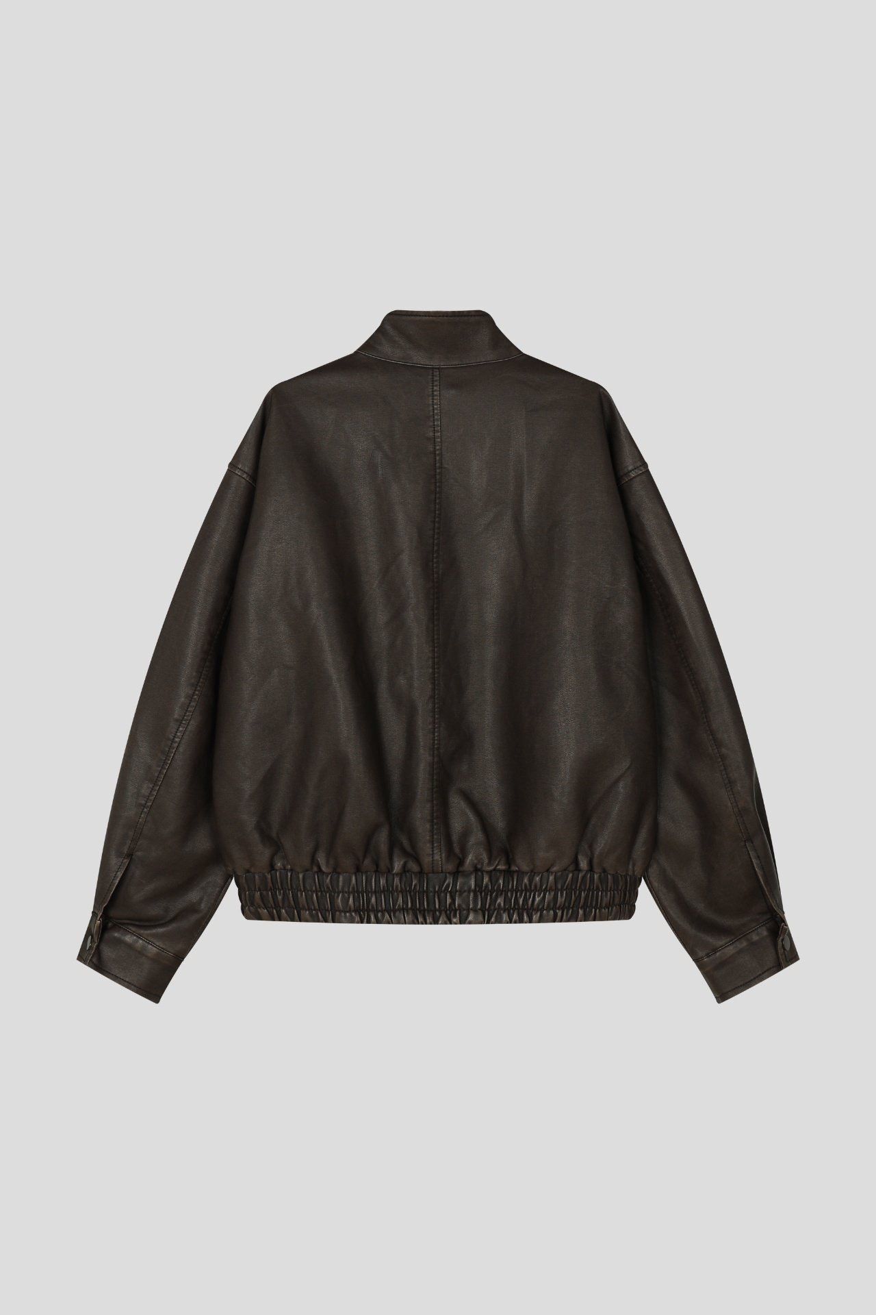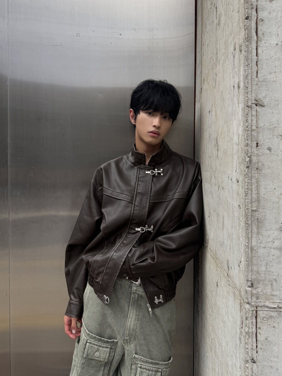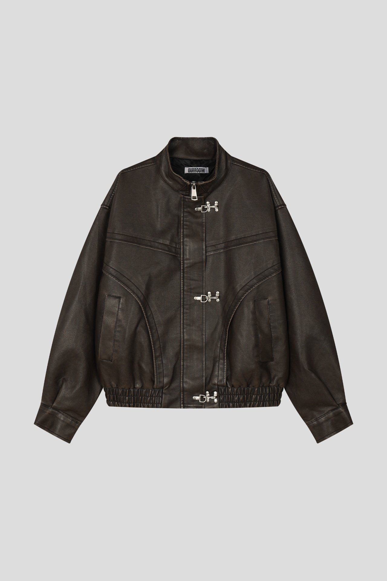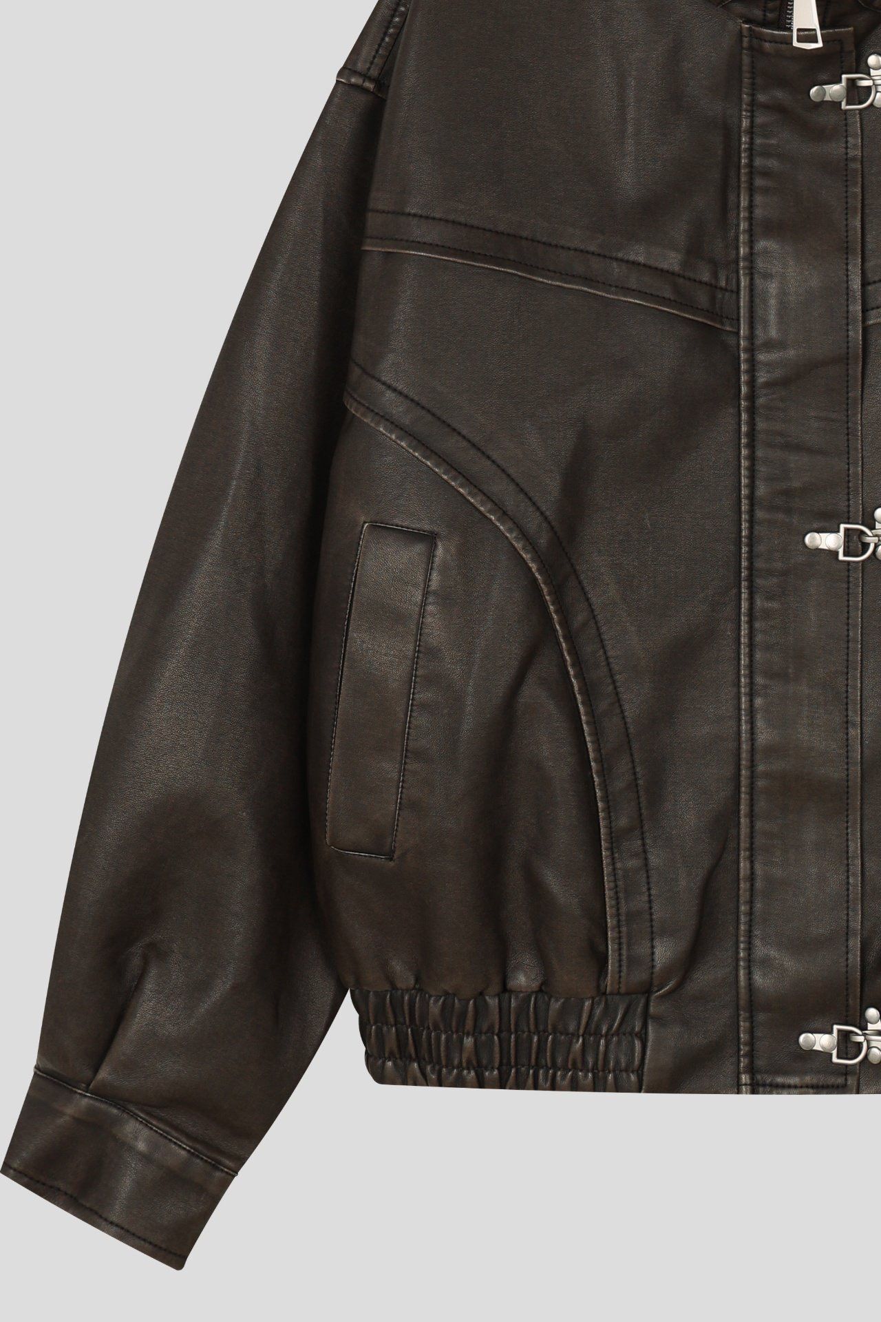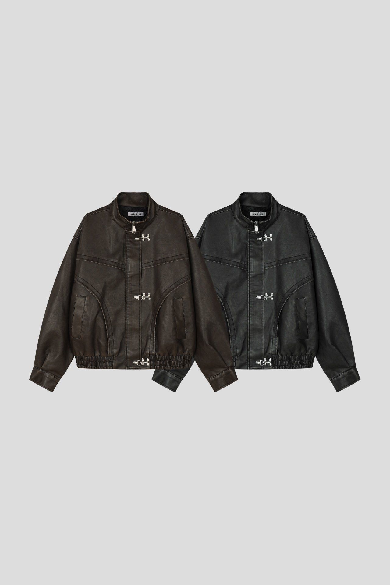 淨色企領拉鍊合成皮褸 OUR ROOM-142JK