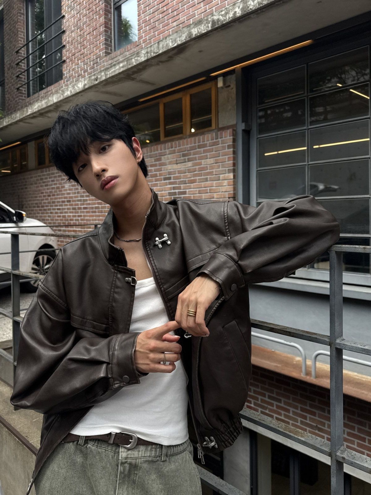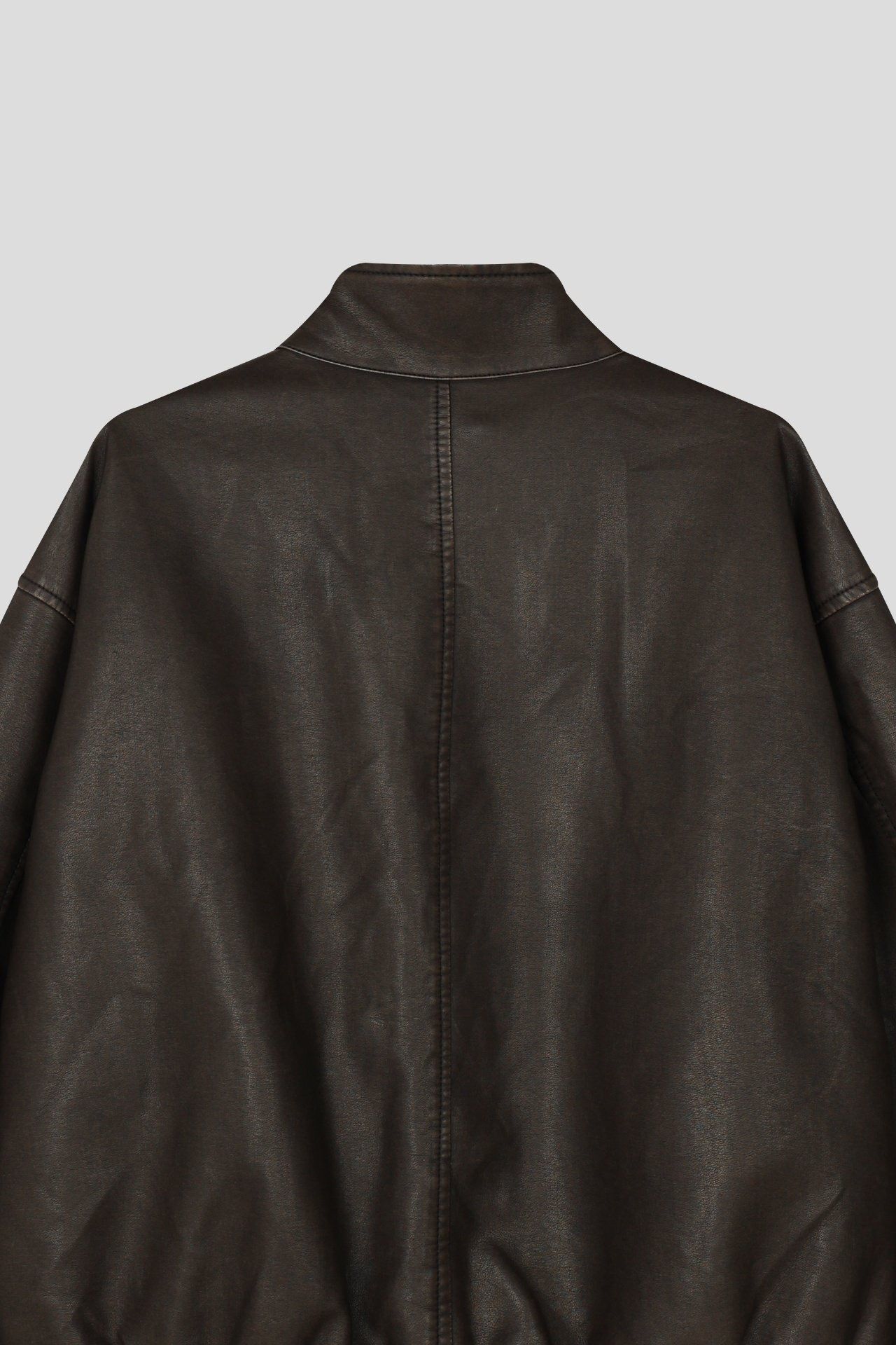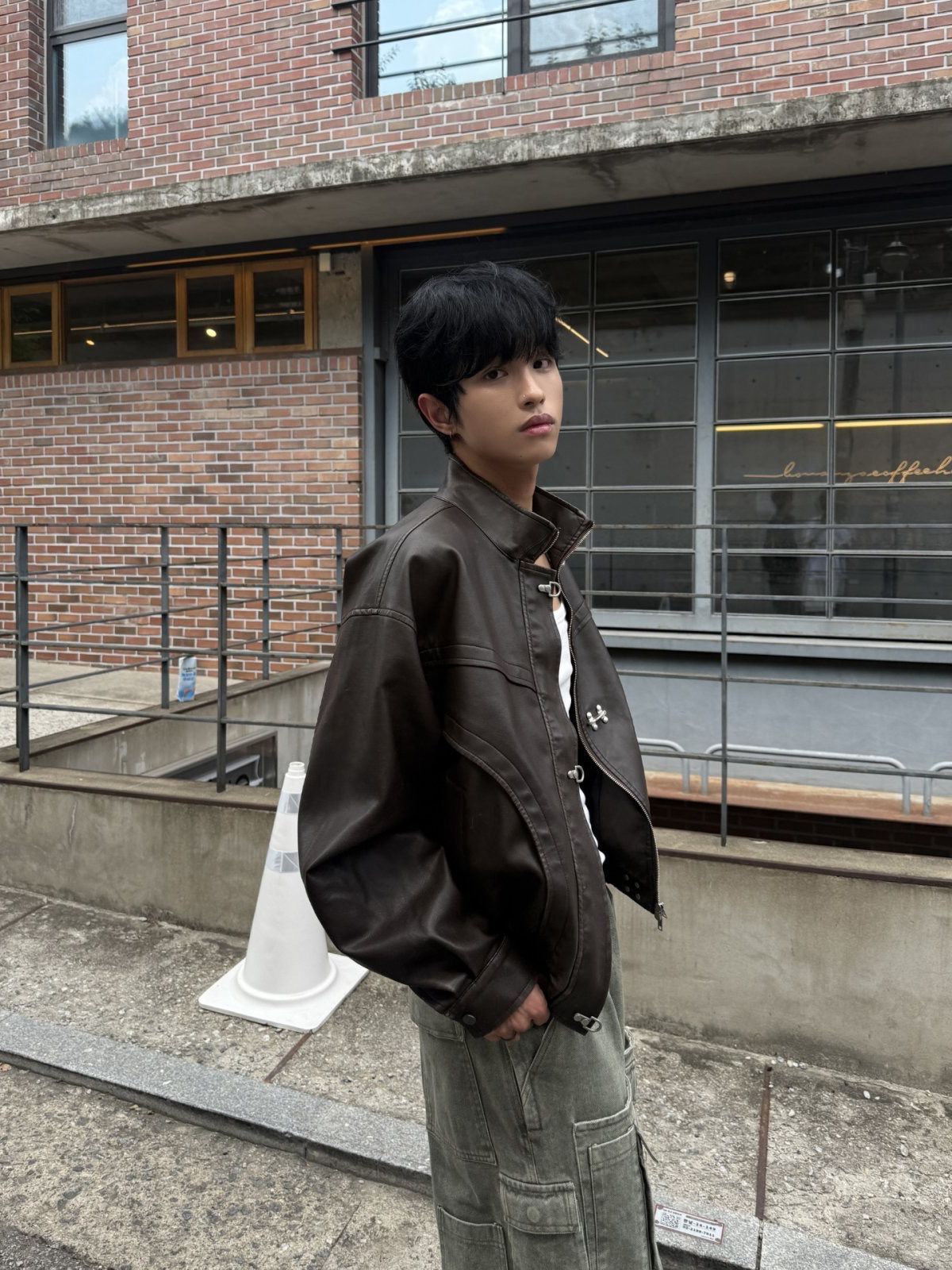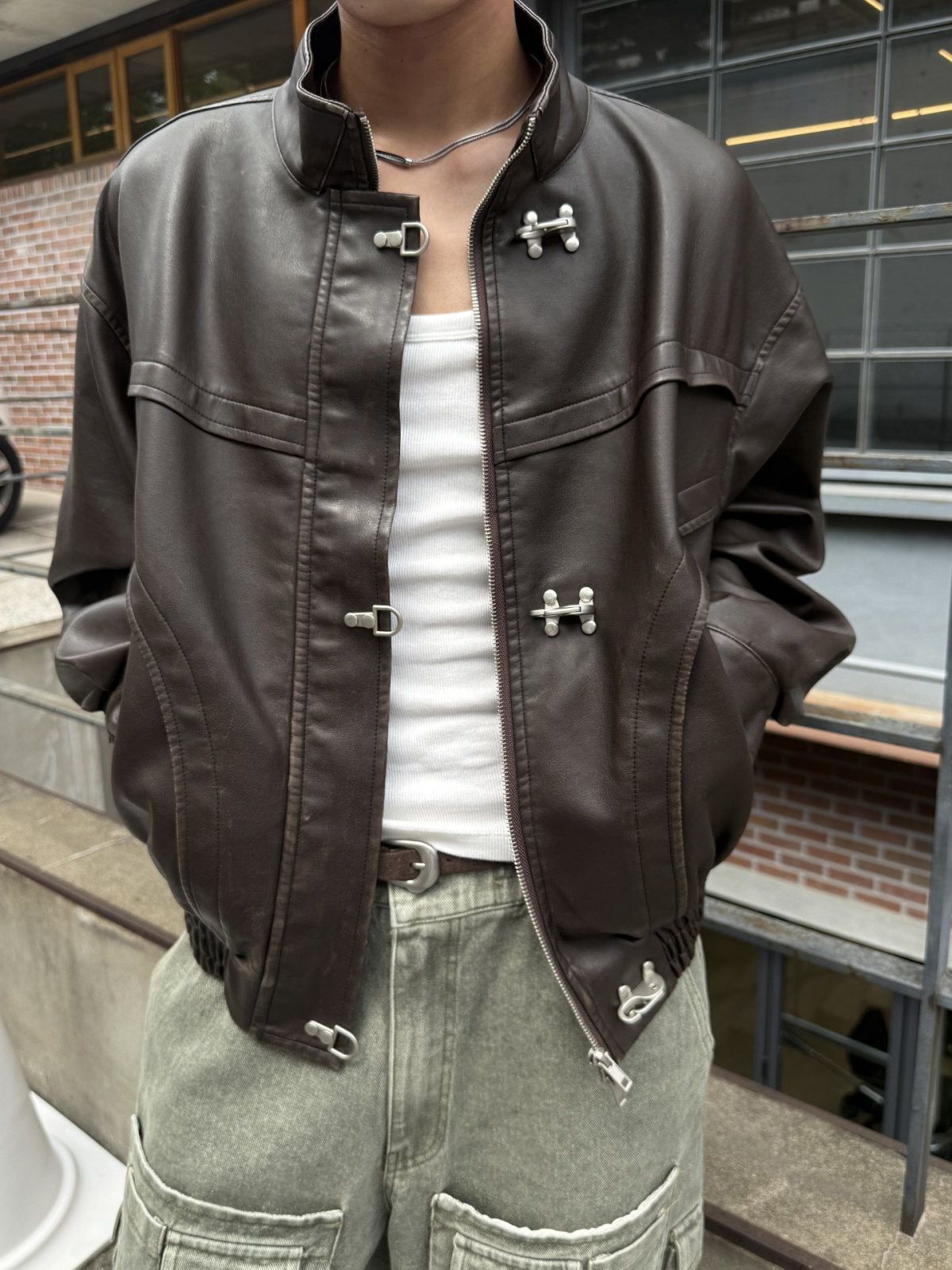 淨色企領拉鍊合成皮褸 OUR ROOM-142JK
