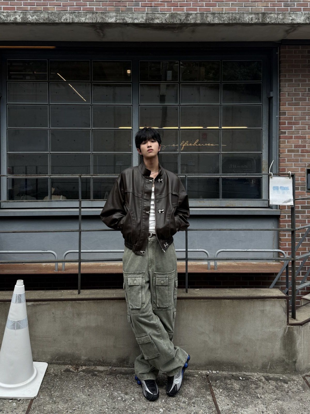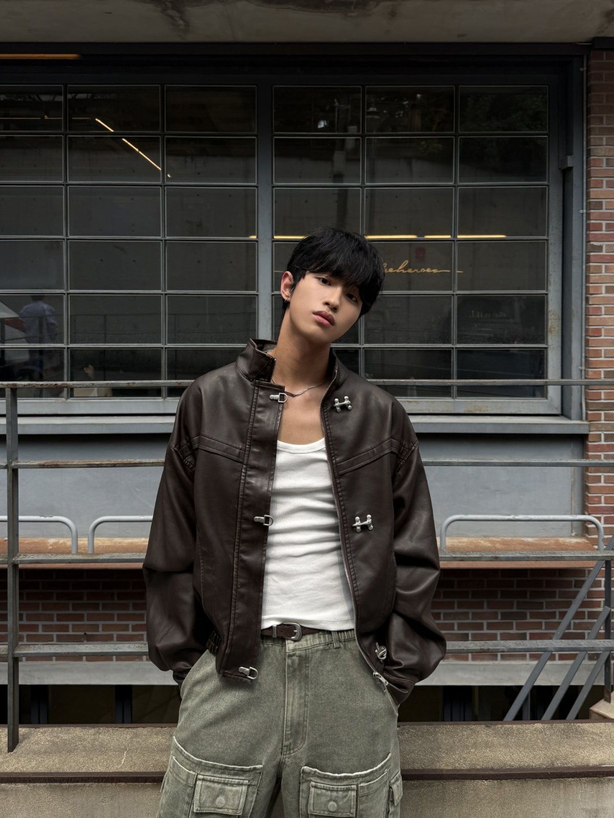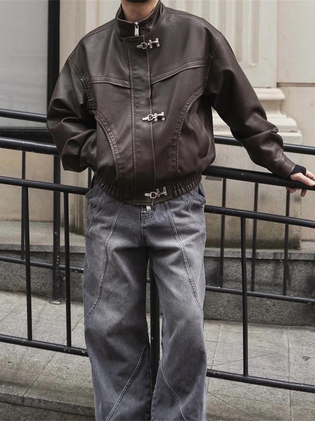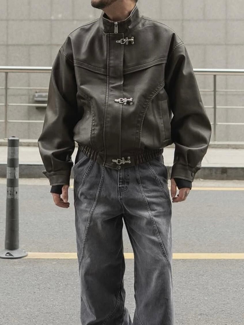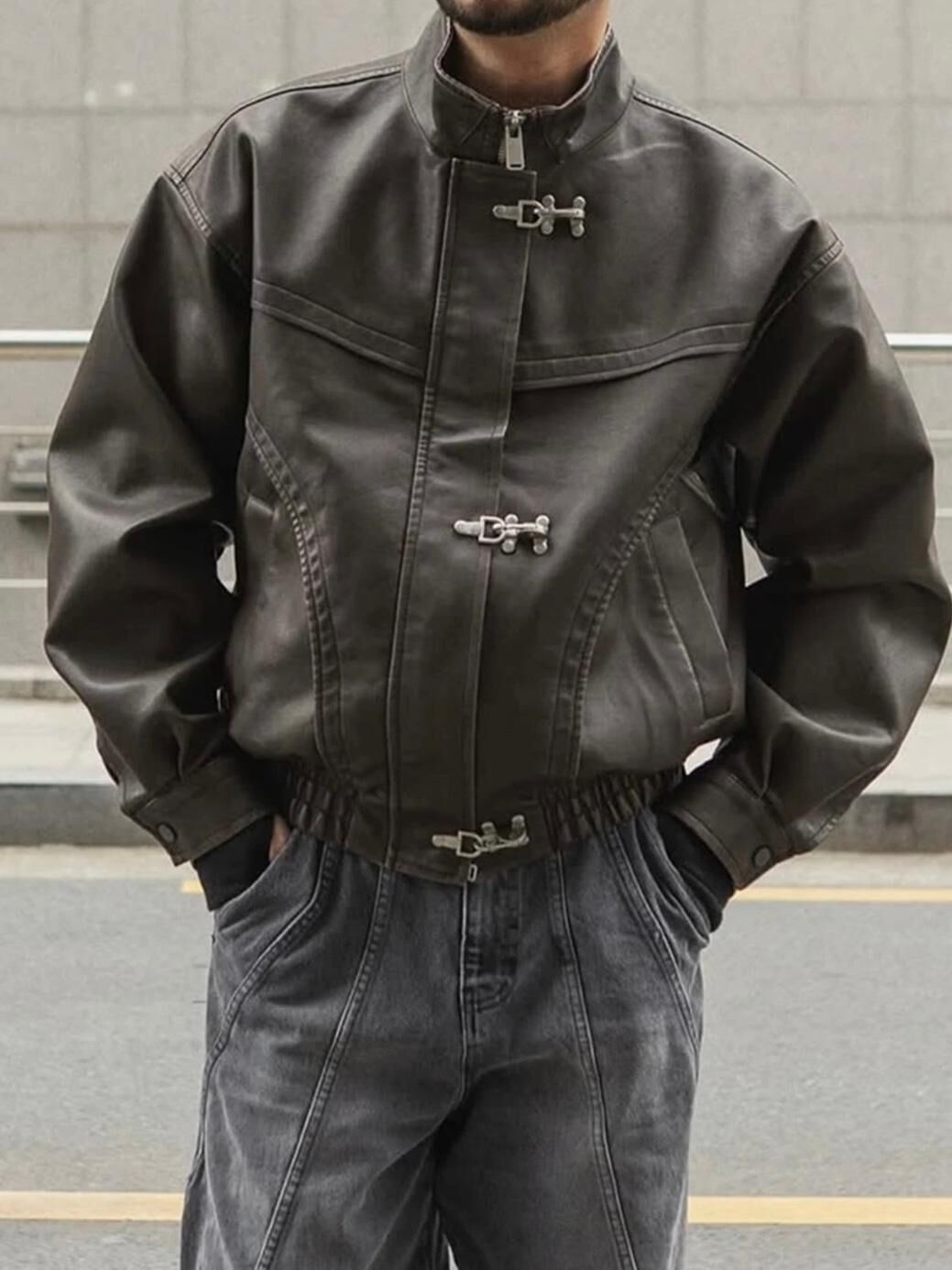 淨色企領拉鍊合成皮褸 OUR ROOM-142JK