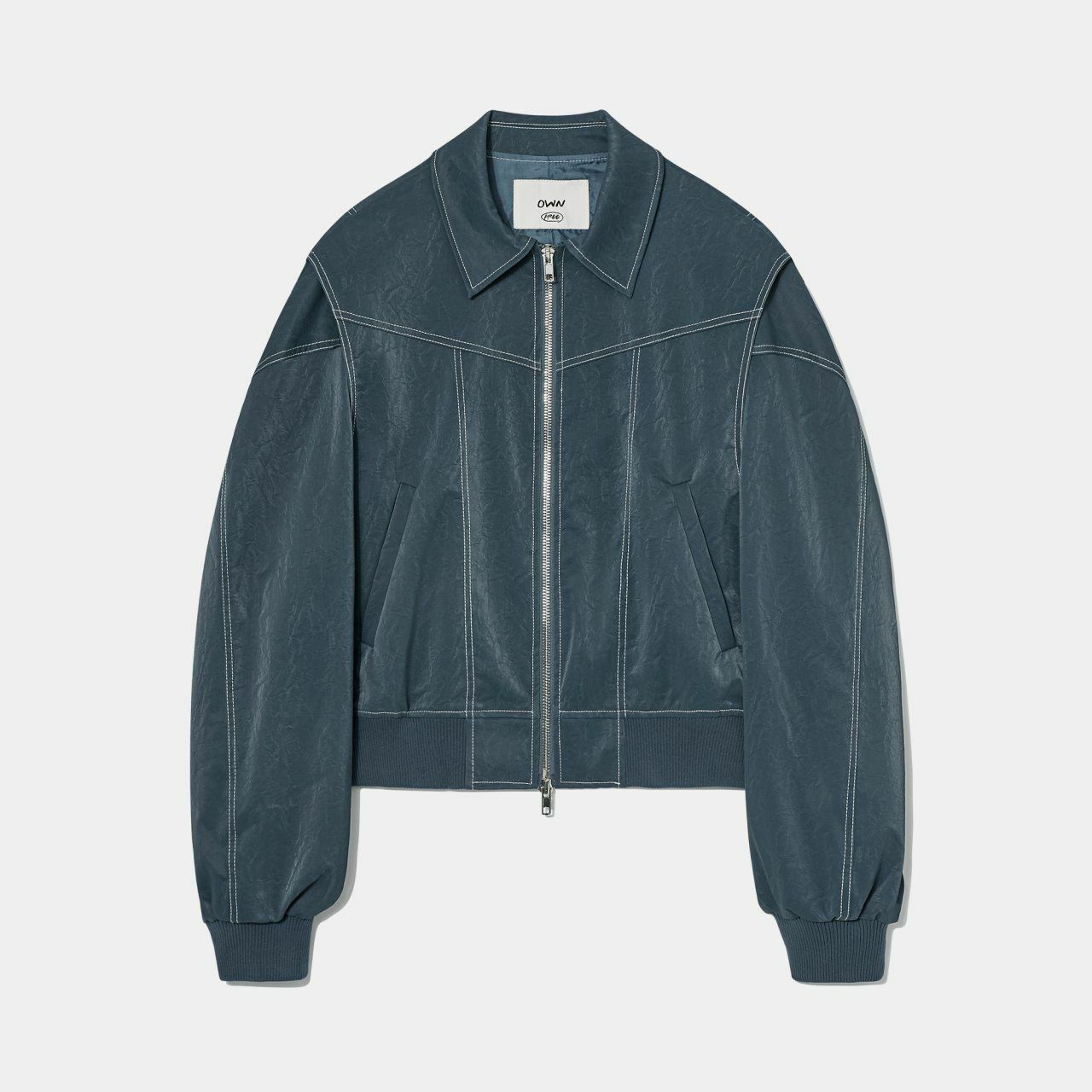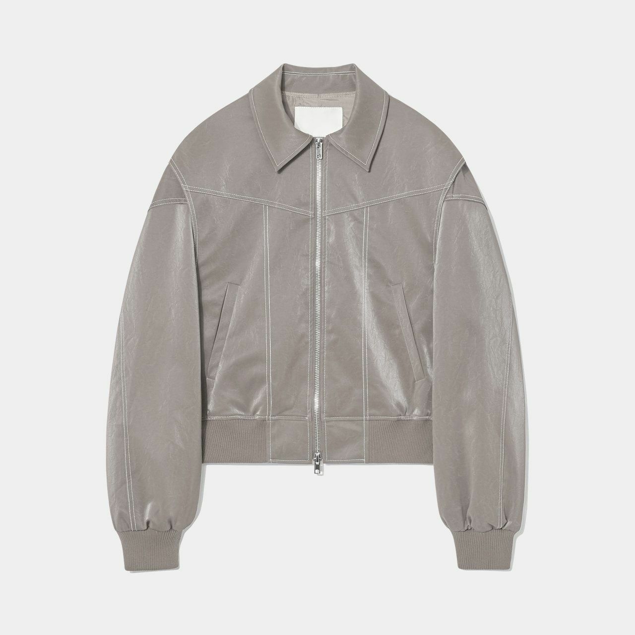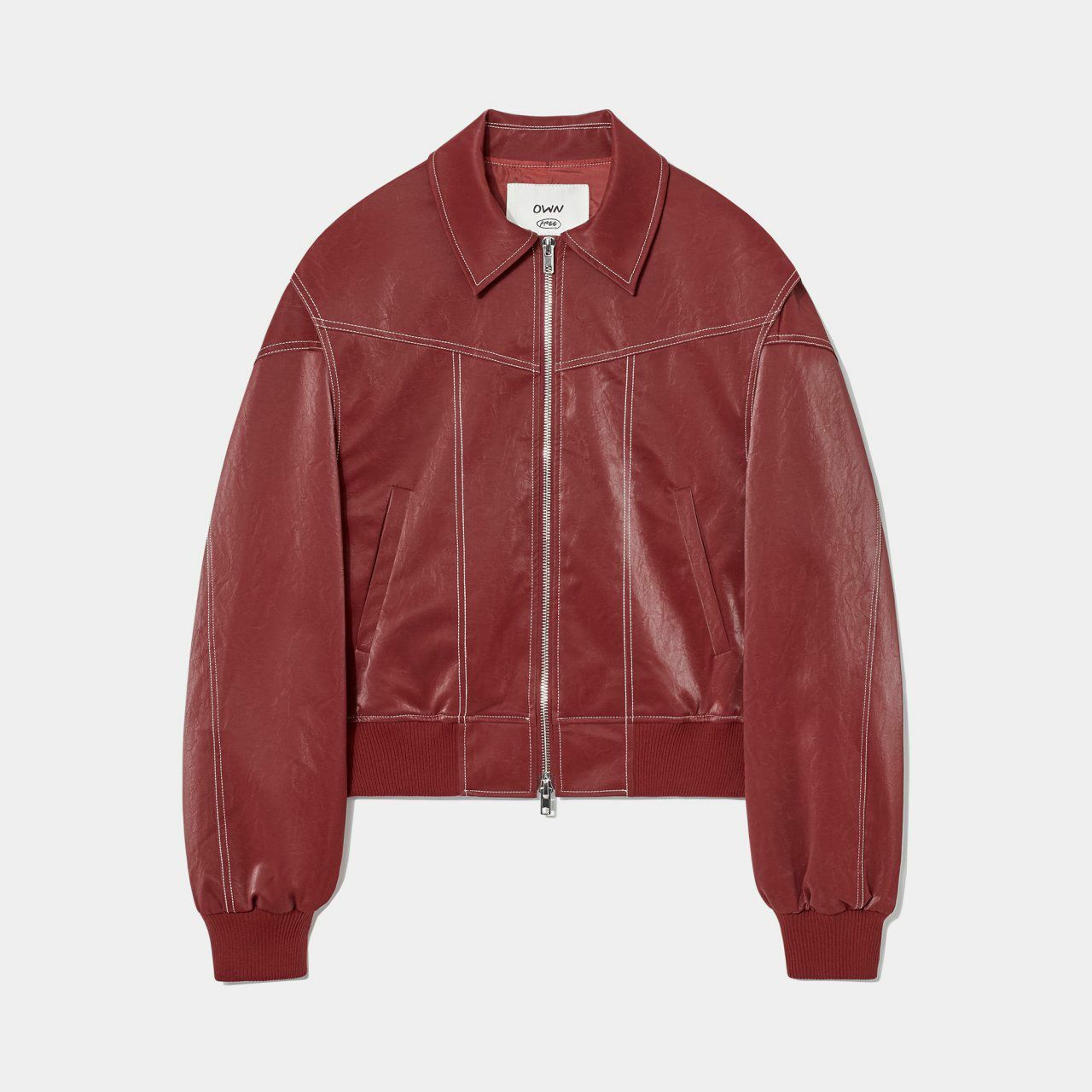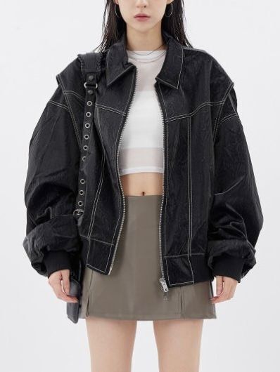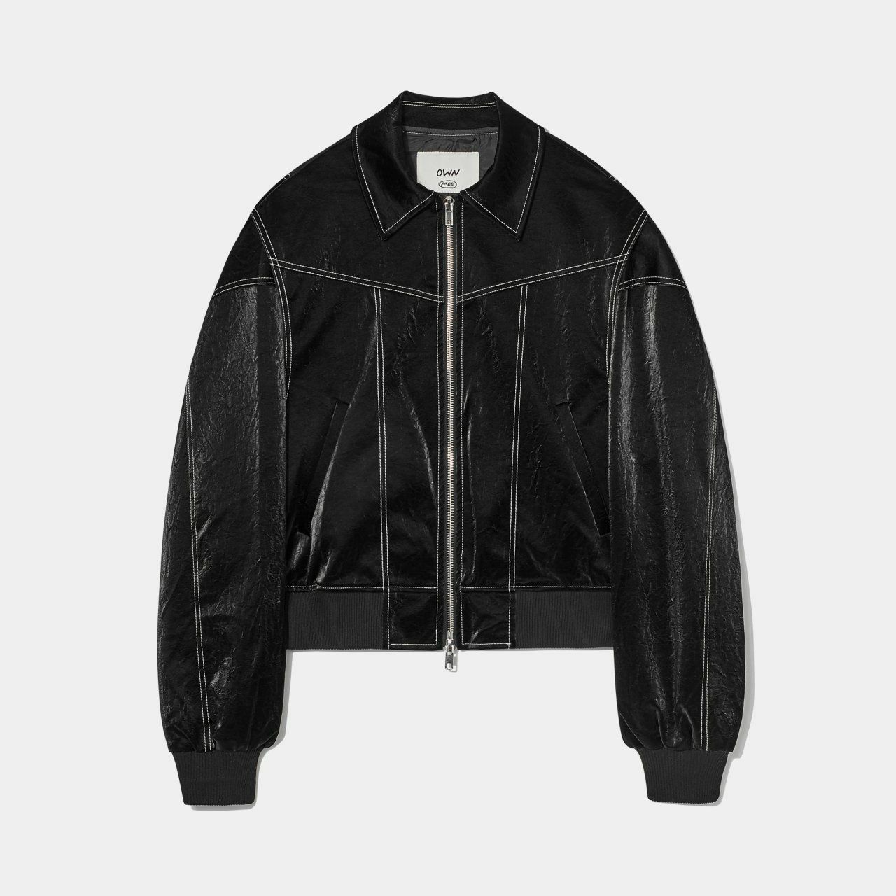 恤衫領明線拉鍊合成皮褸 OWN-027JK