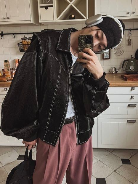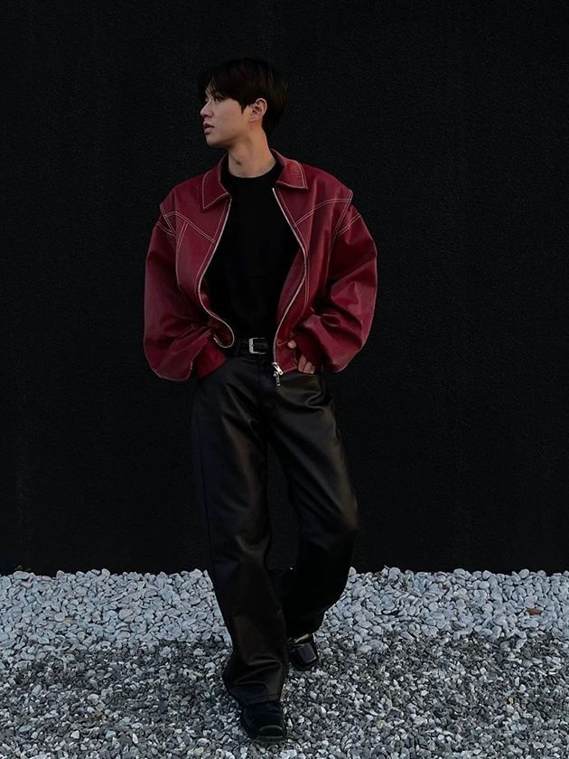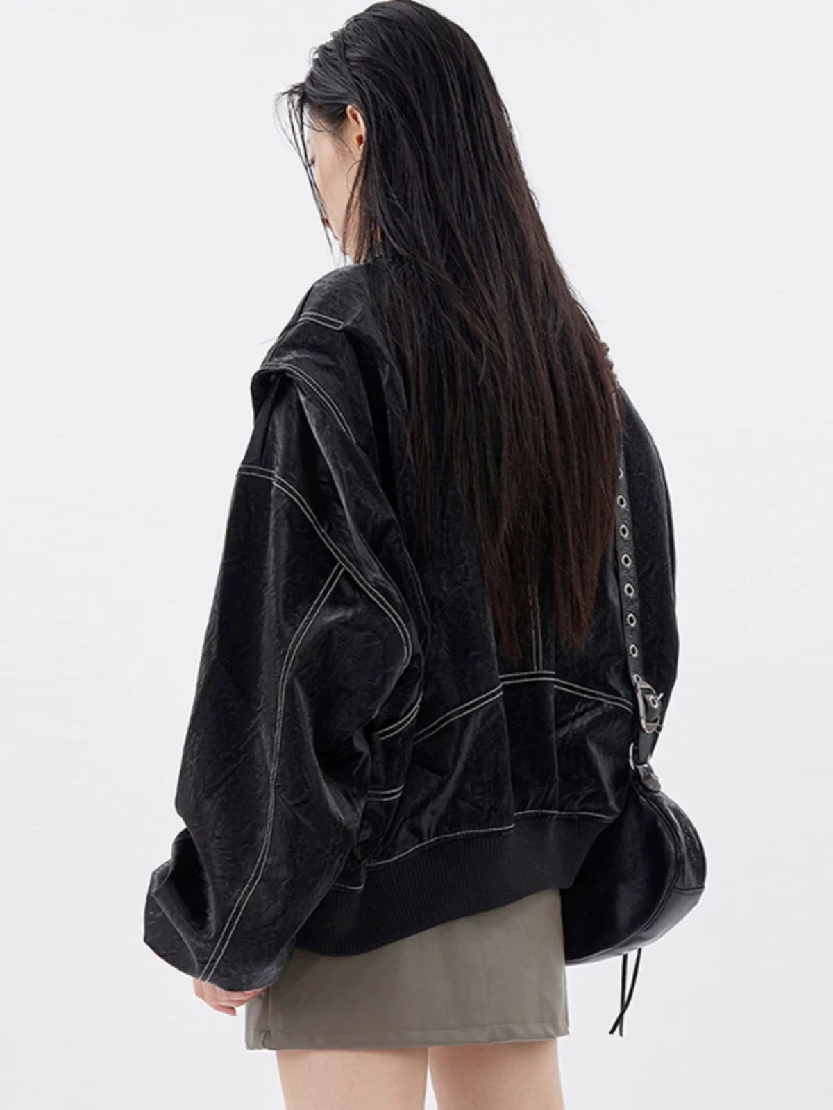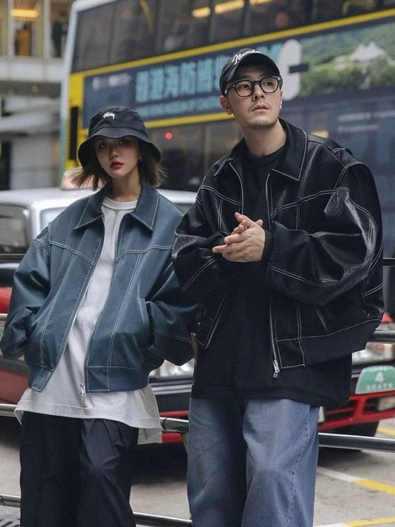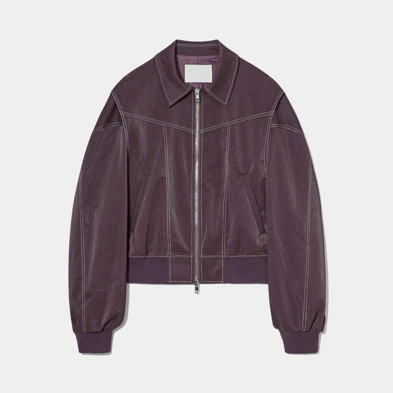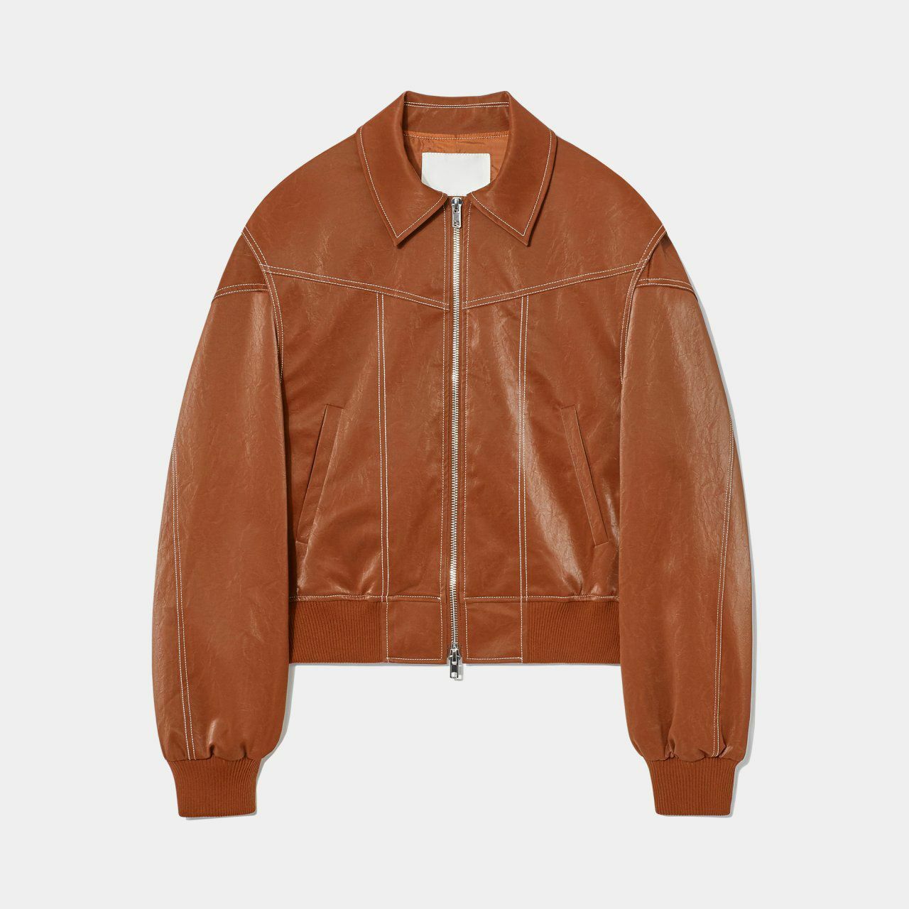 恤衫領明線拉鍊合成皮褸 OWN-027JK