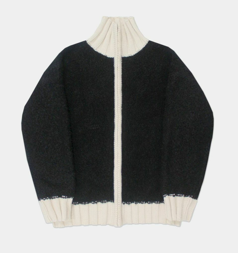高領拼色毛粒拉鍊外套 OWN-035JK