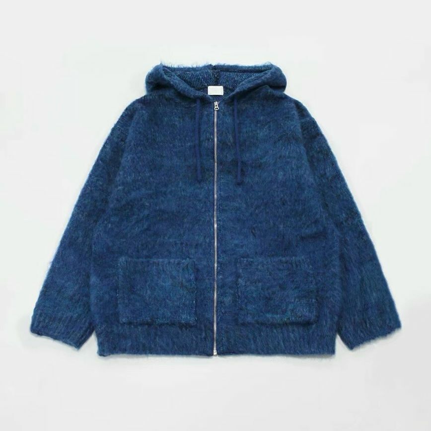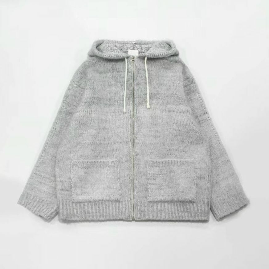 淨色連帽針織拉鍊外套 OWN-042JK