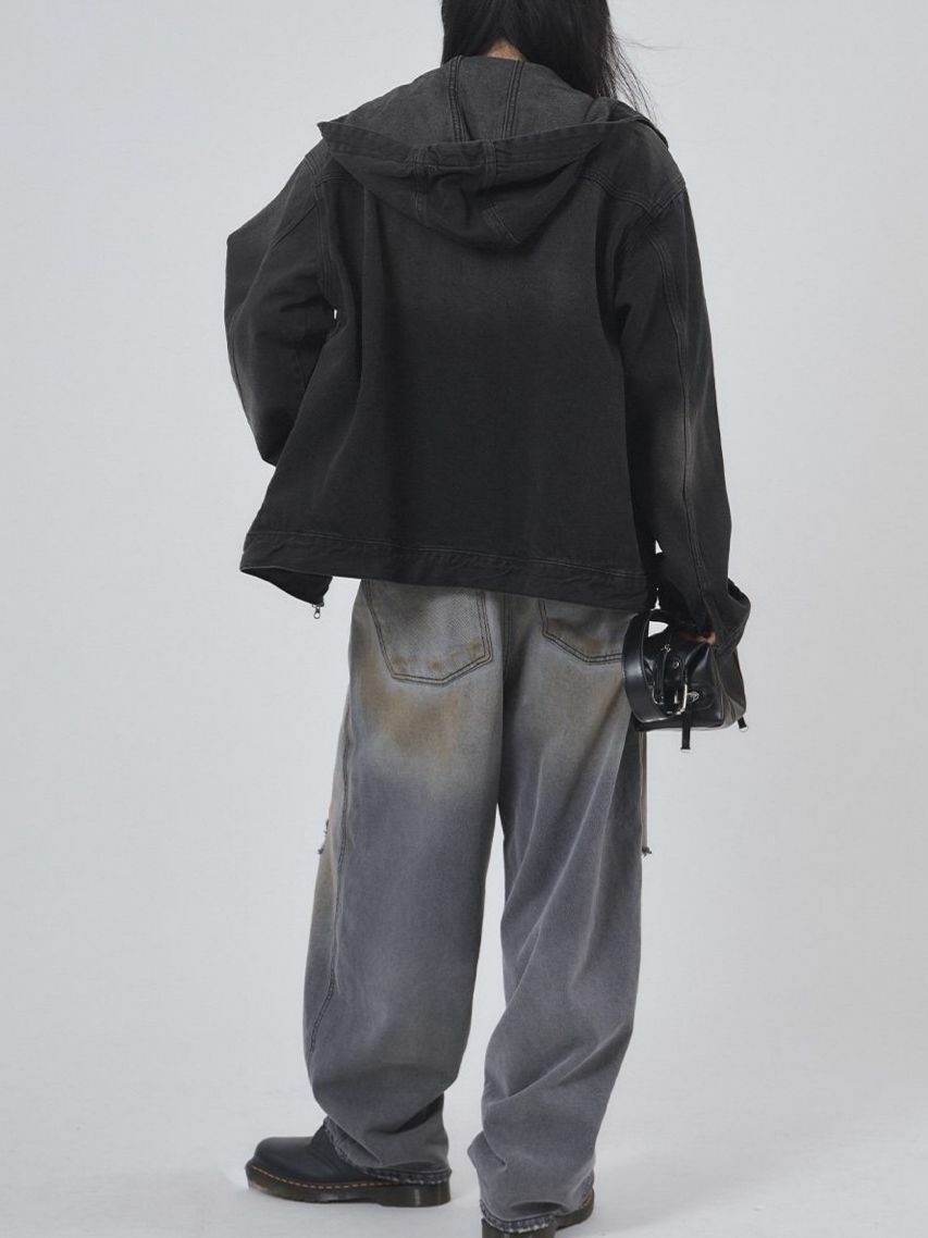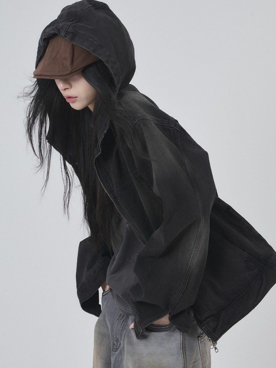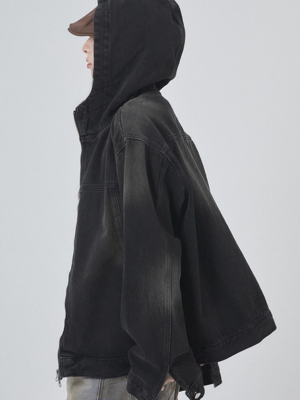 洗水連帽牛仔拉鍊外套 OWN-051JK