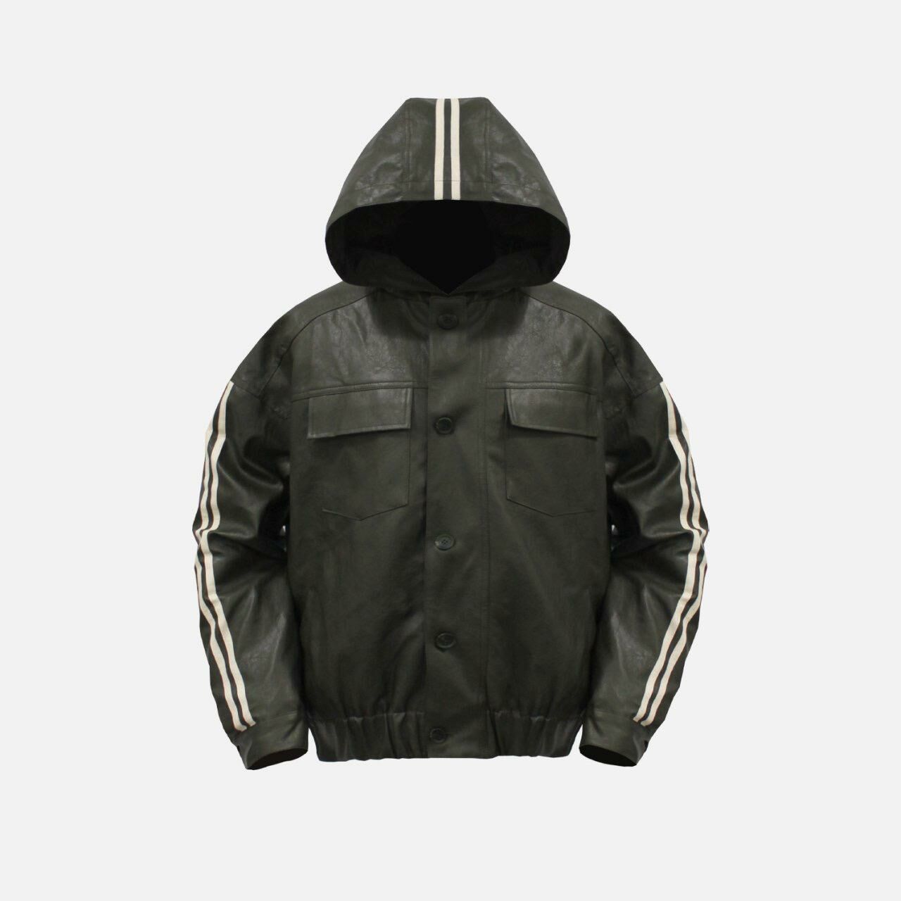 雙間連帽開胸合成皮褸 OWN-052JK
