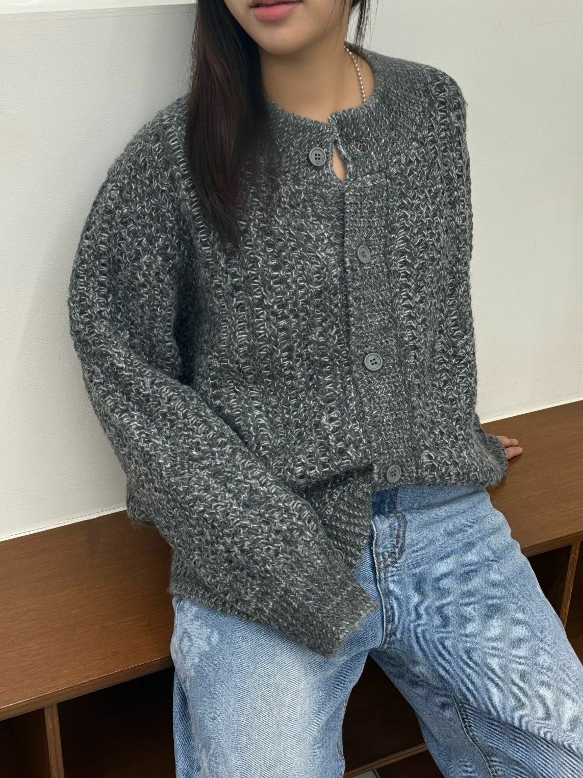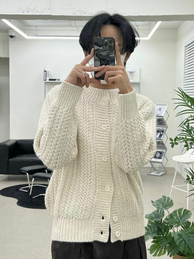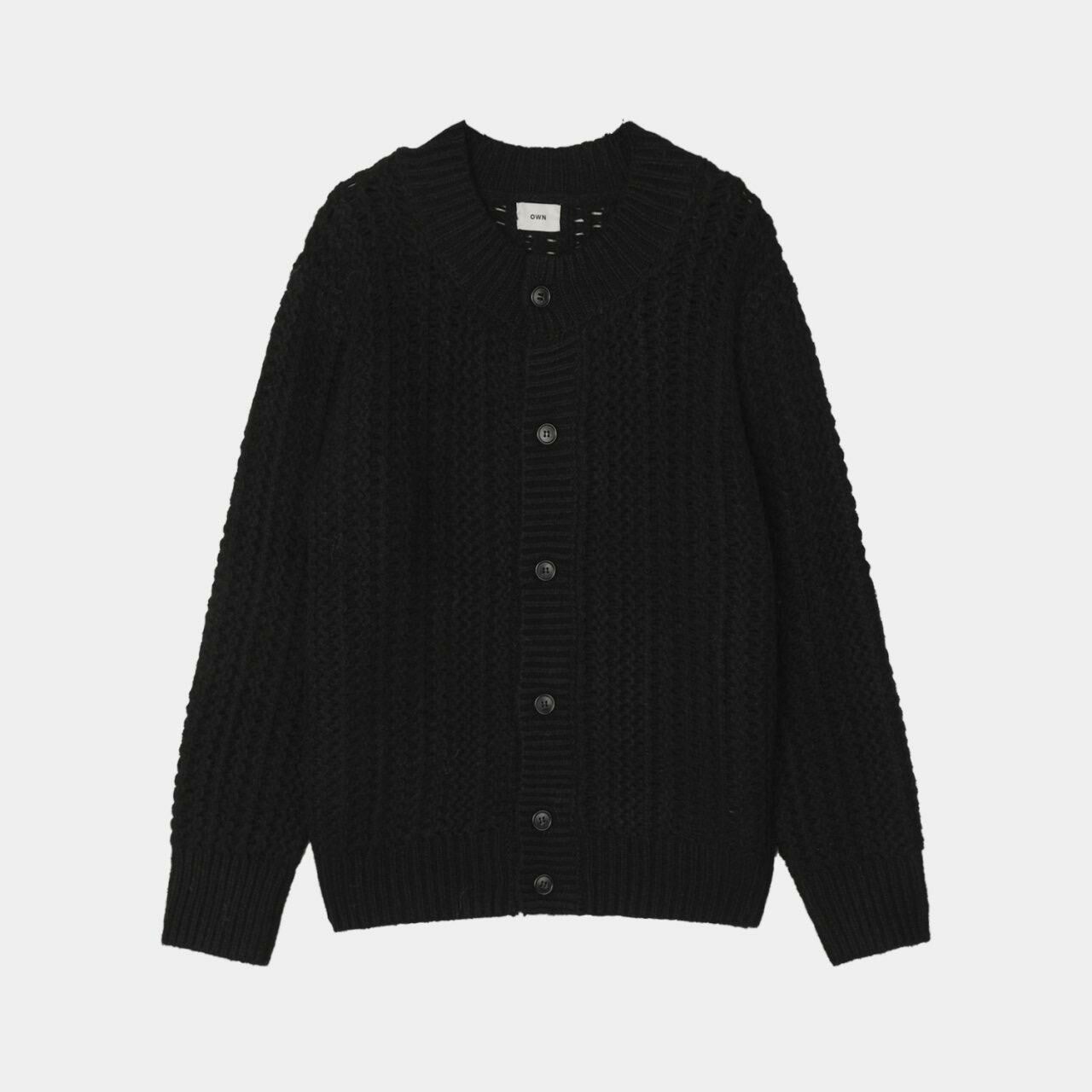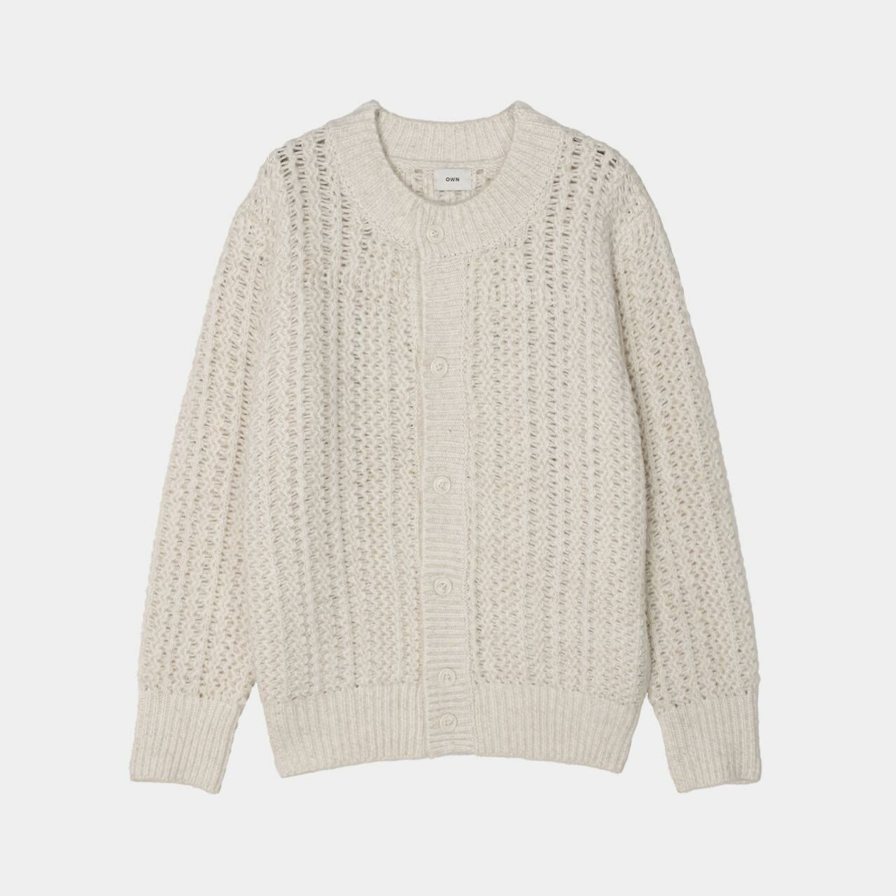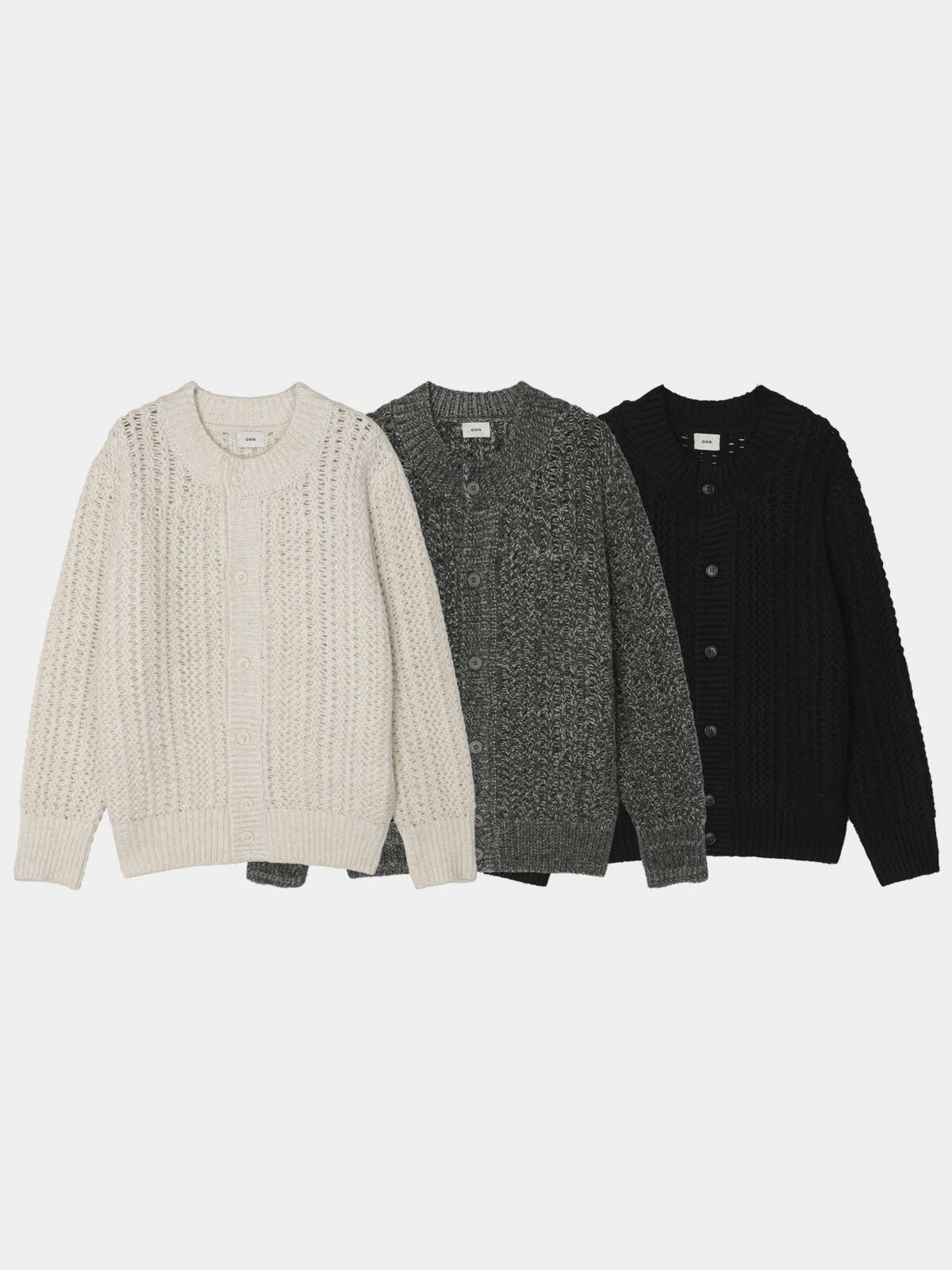 圓領暗紋開胸針織外套 OWN-072JK