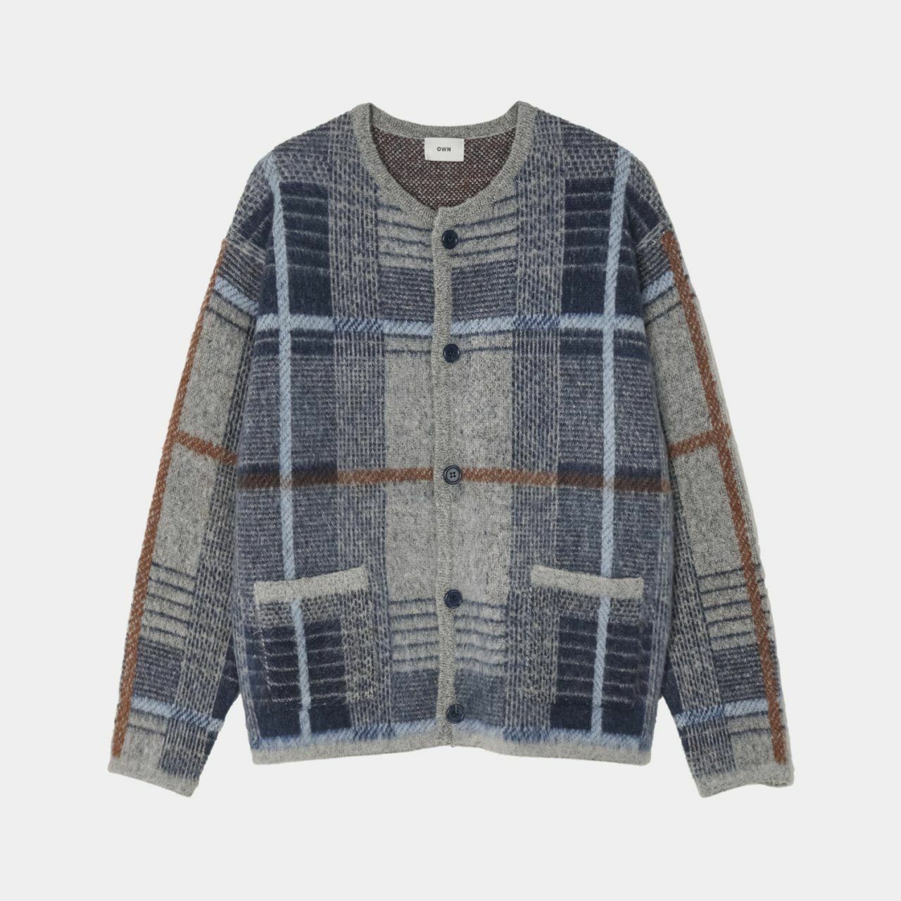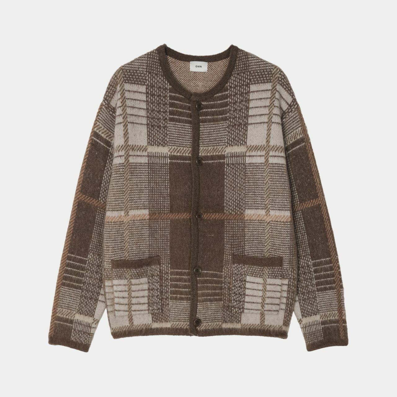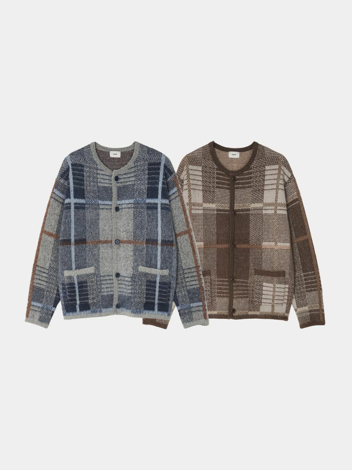圓領格紋開胸針織外套 OWN-073JK