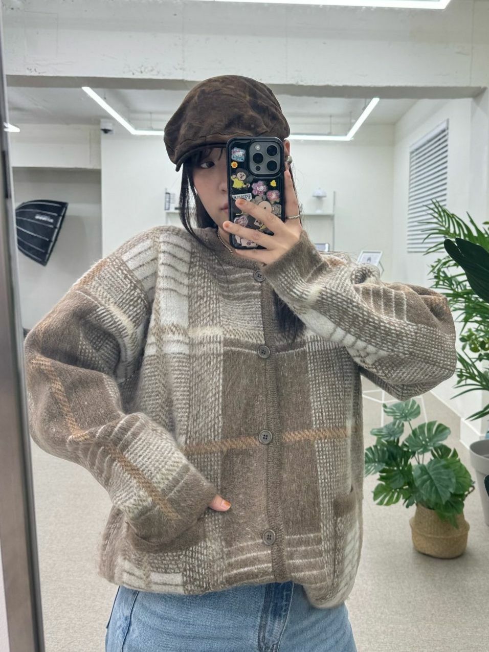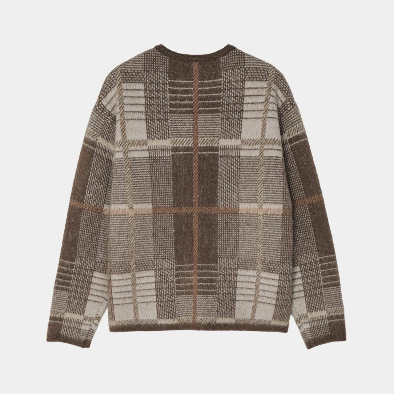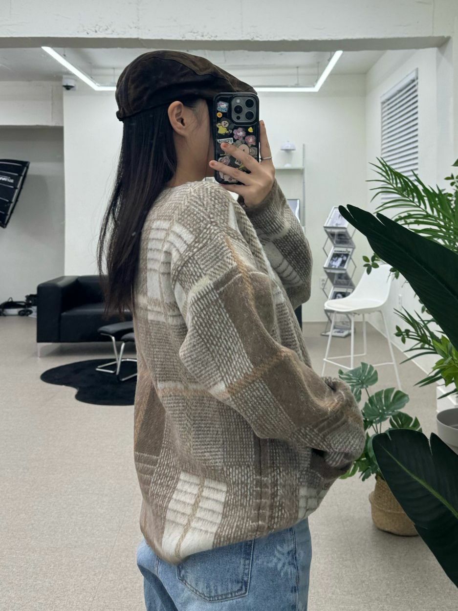 圓領格紋開胸針織外套 OWN-073JK