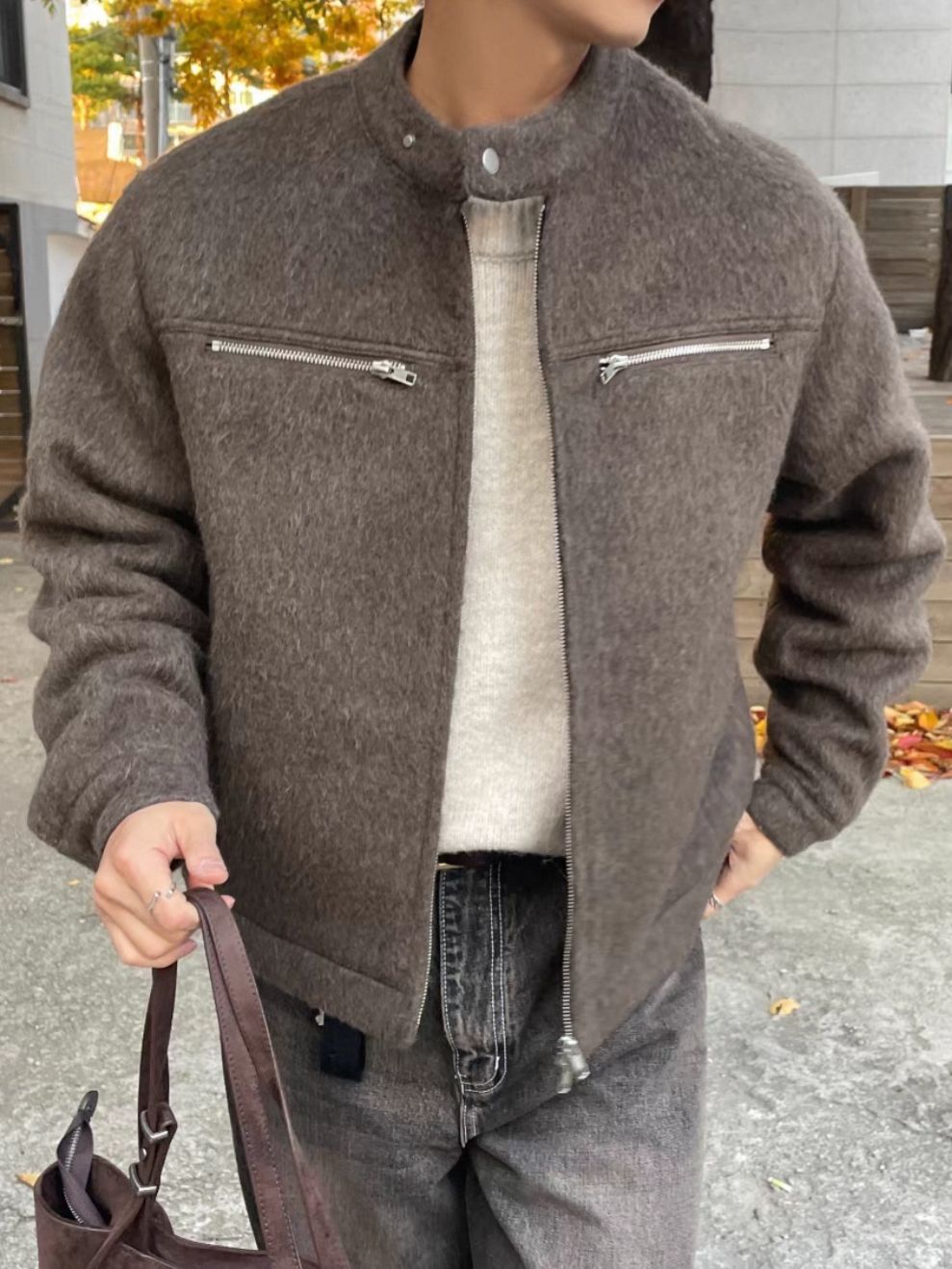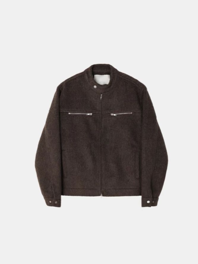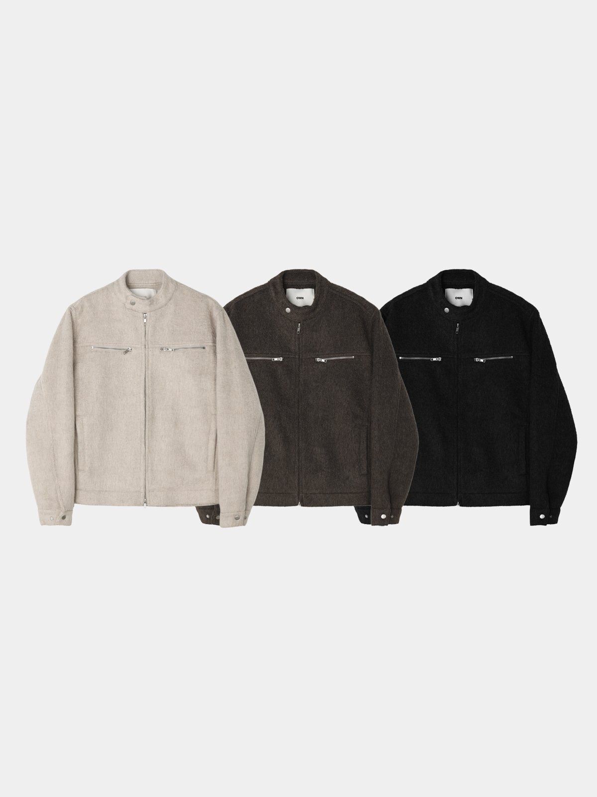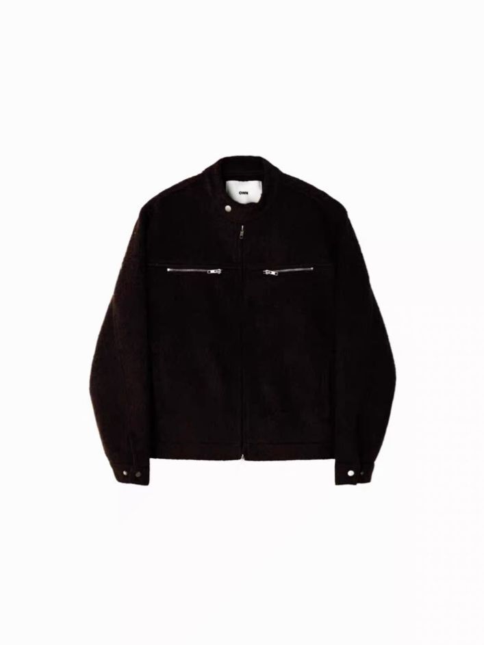 企領淨色拉鍊外套(薄夾棉) OWN-111JK