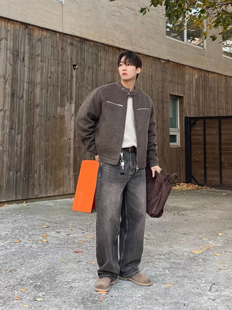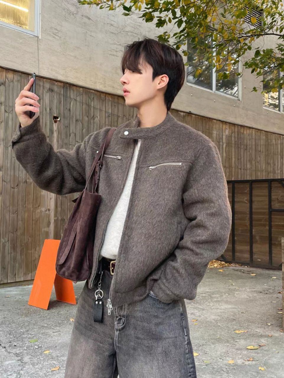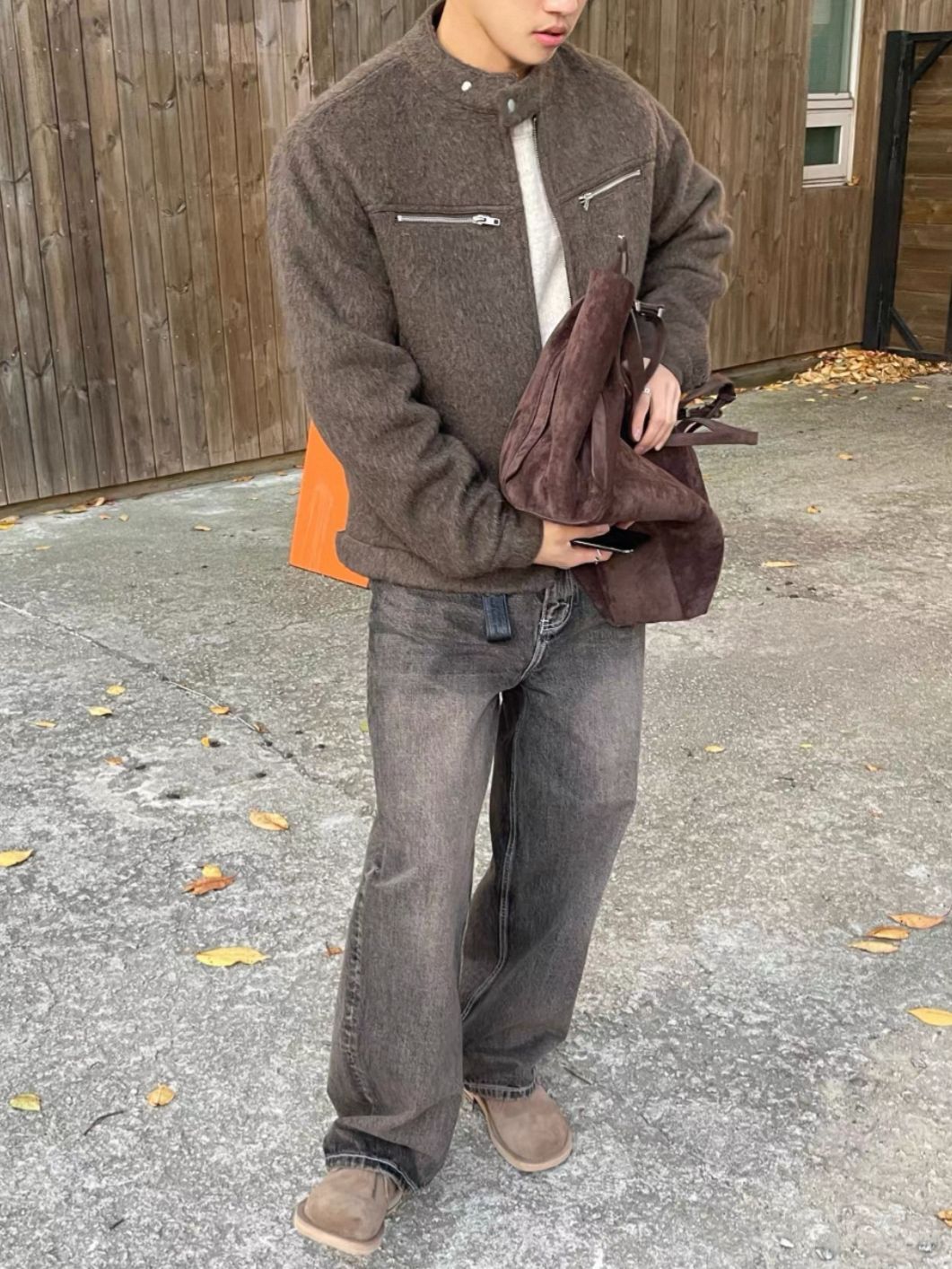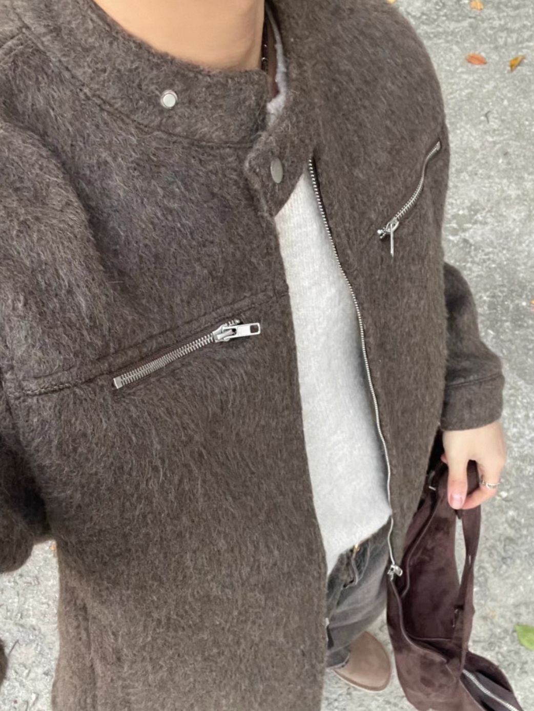 企領淨色拉鍊外套(薄夾棉) OWN-111JK