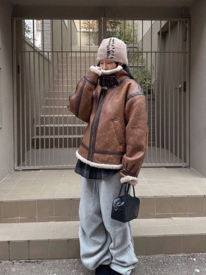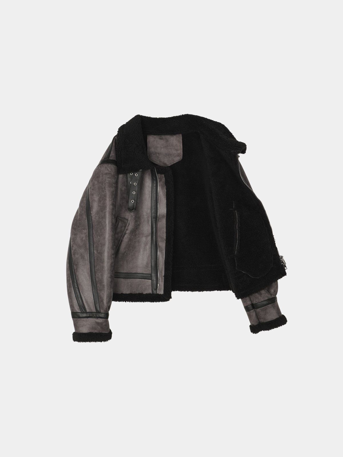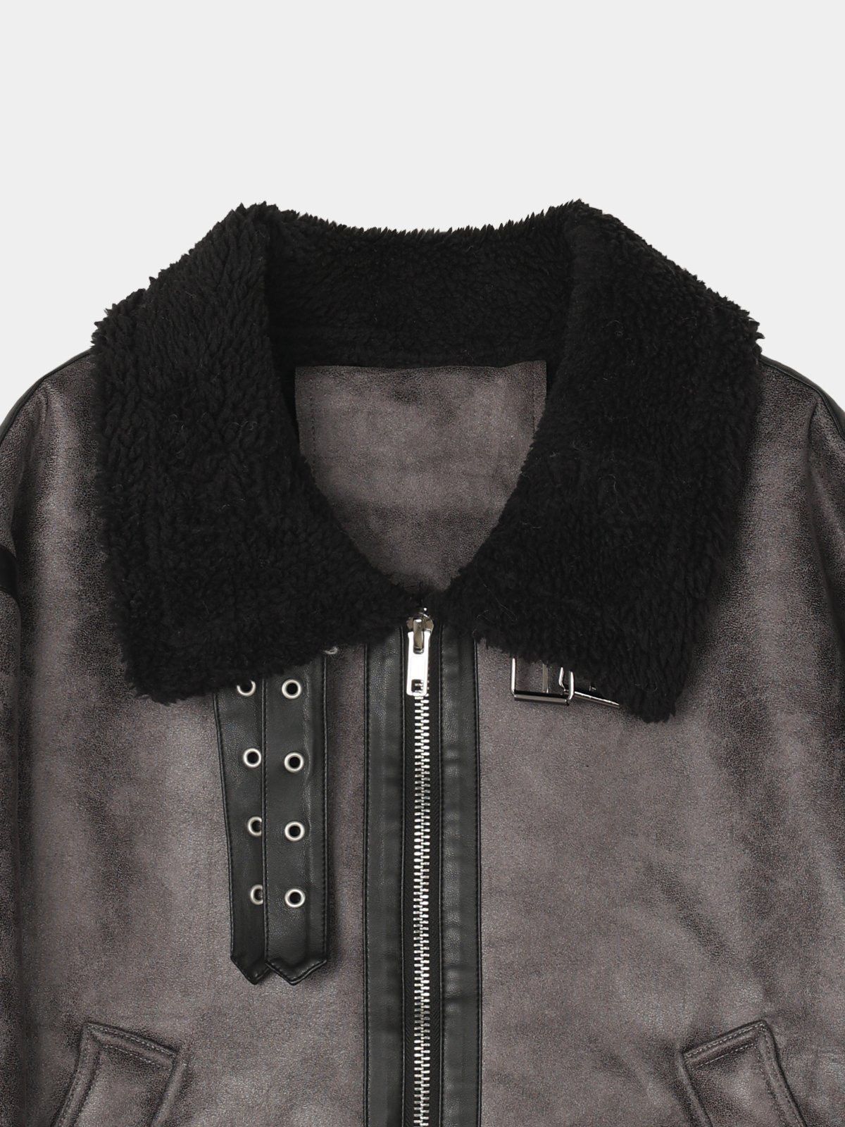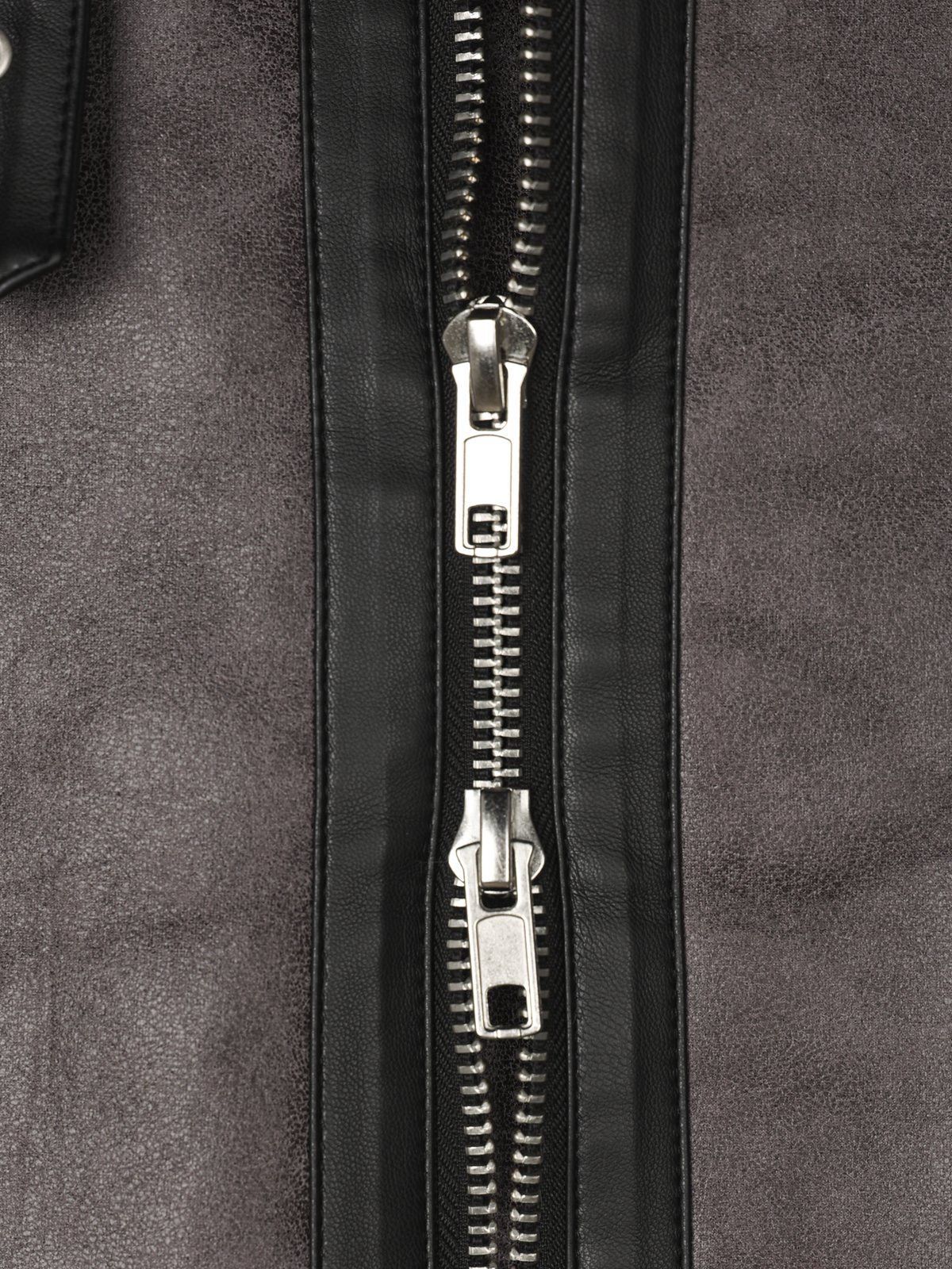 毛毛領淨色拉鍊合成皮外套 OWN-113JK