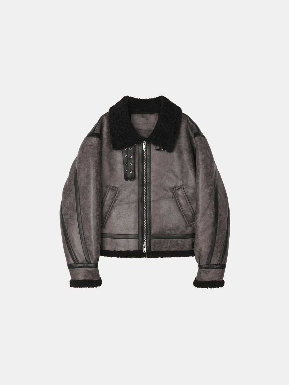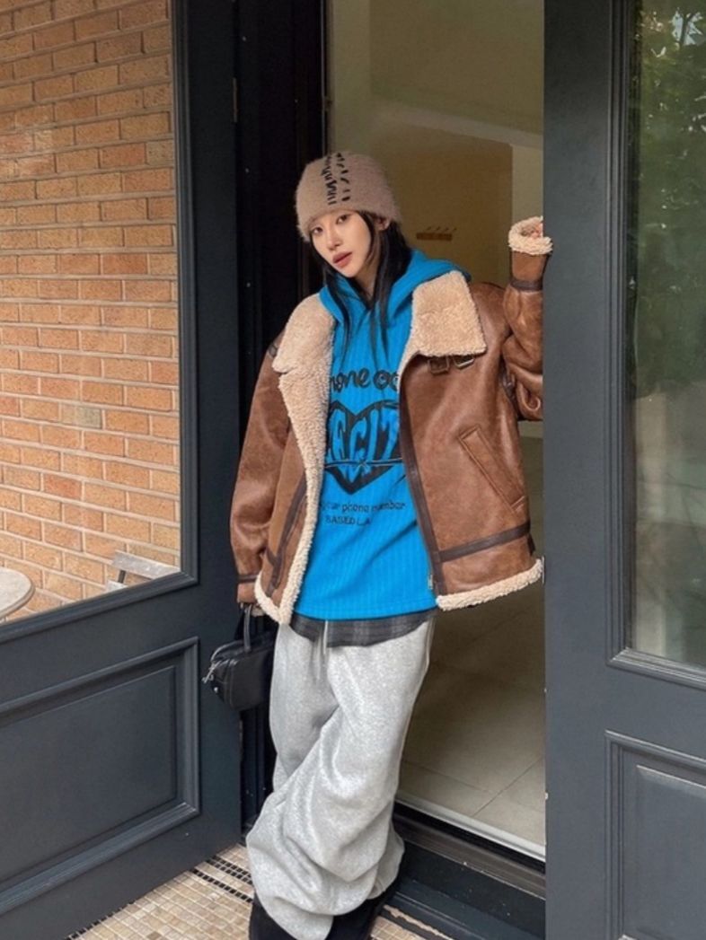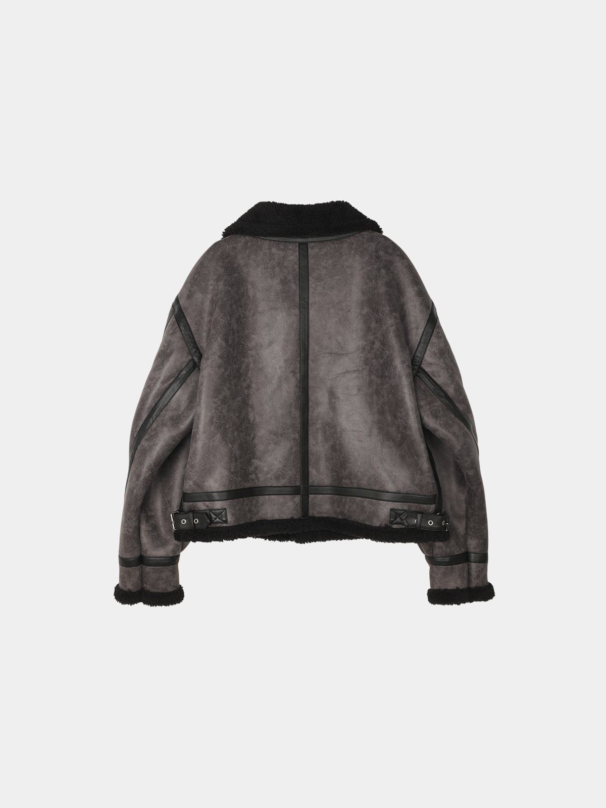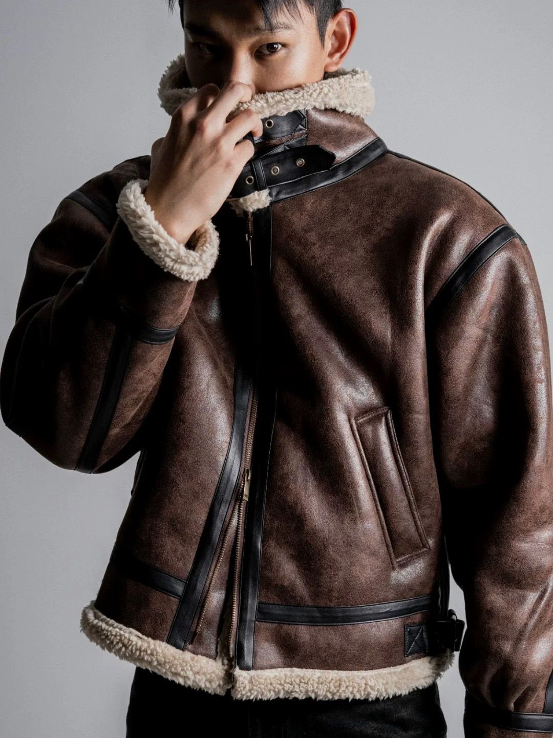 毛毛領淨色拉鍊合成皮外套 OWN-113JK
