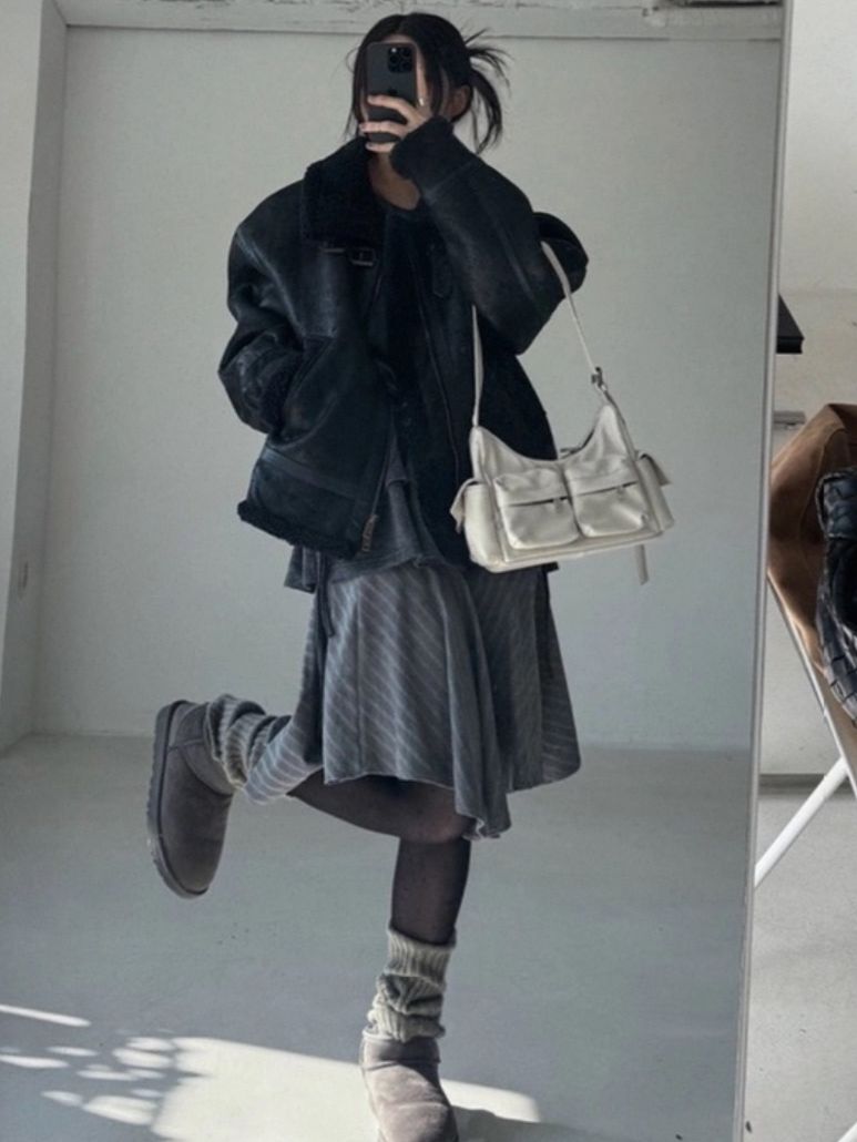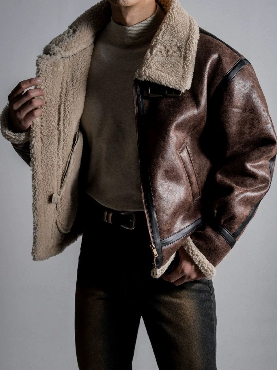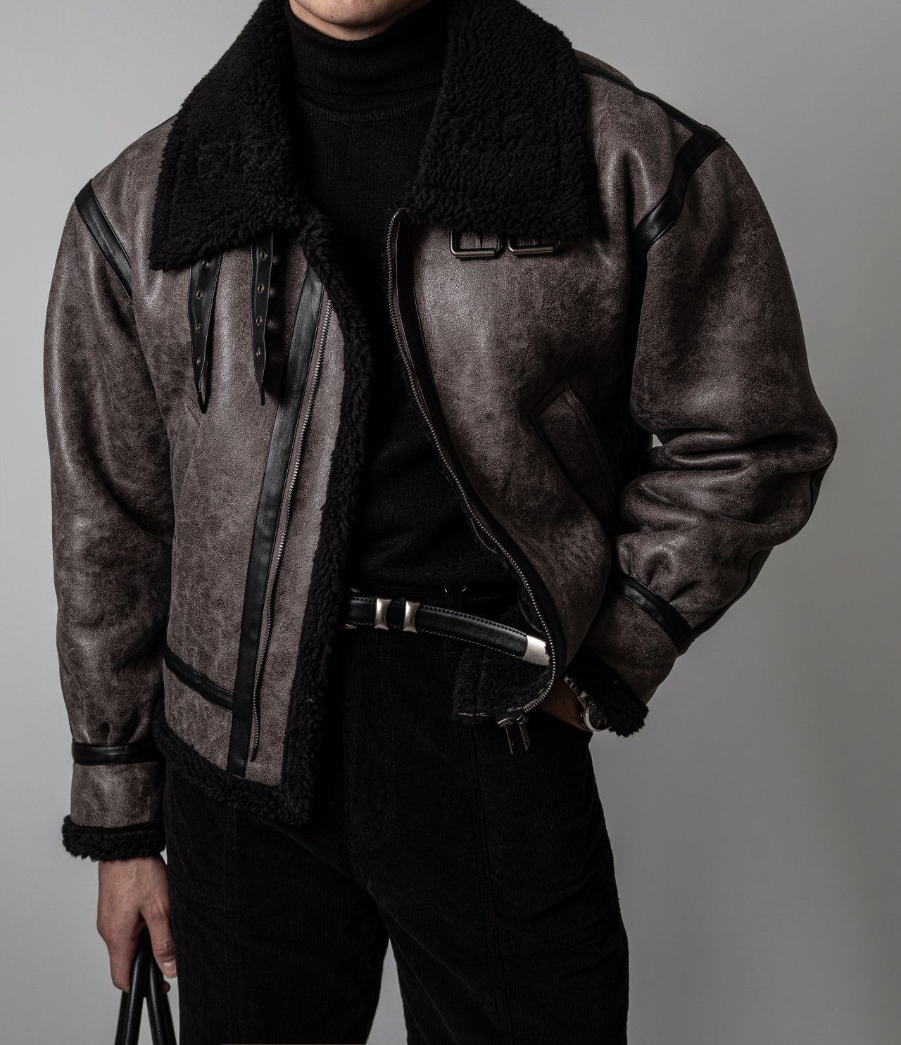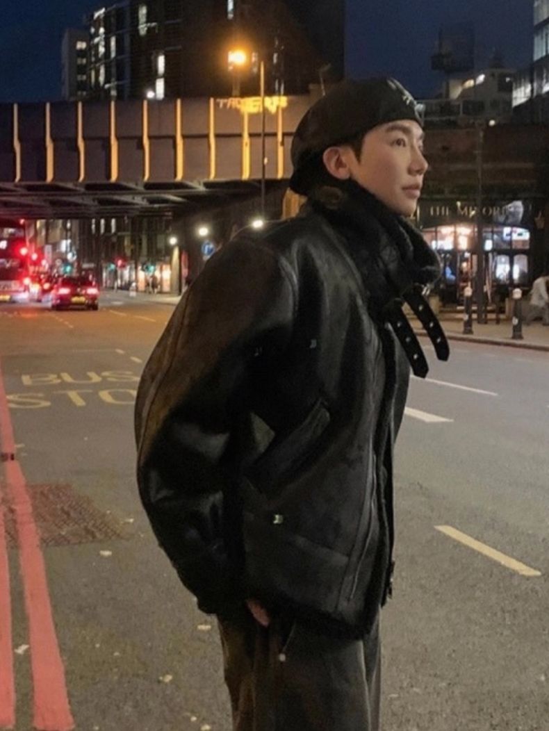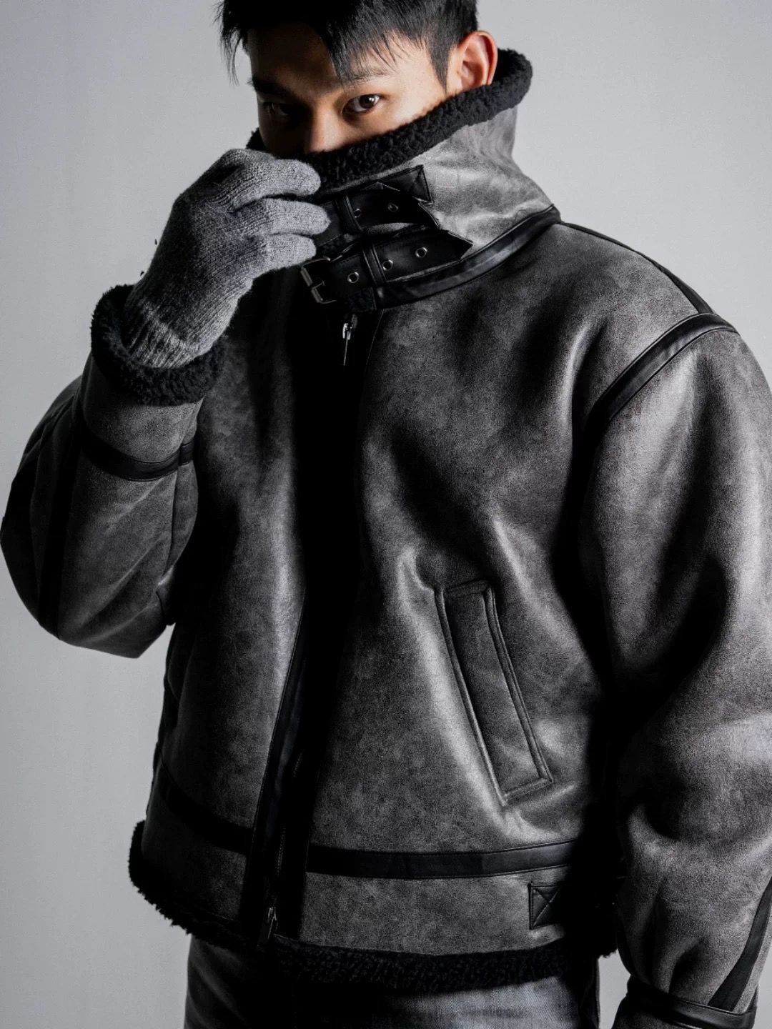 毛毛領淨色拉鍊合成皮外套 OWN-113JK