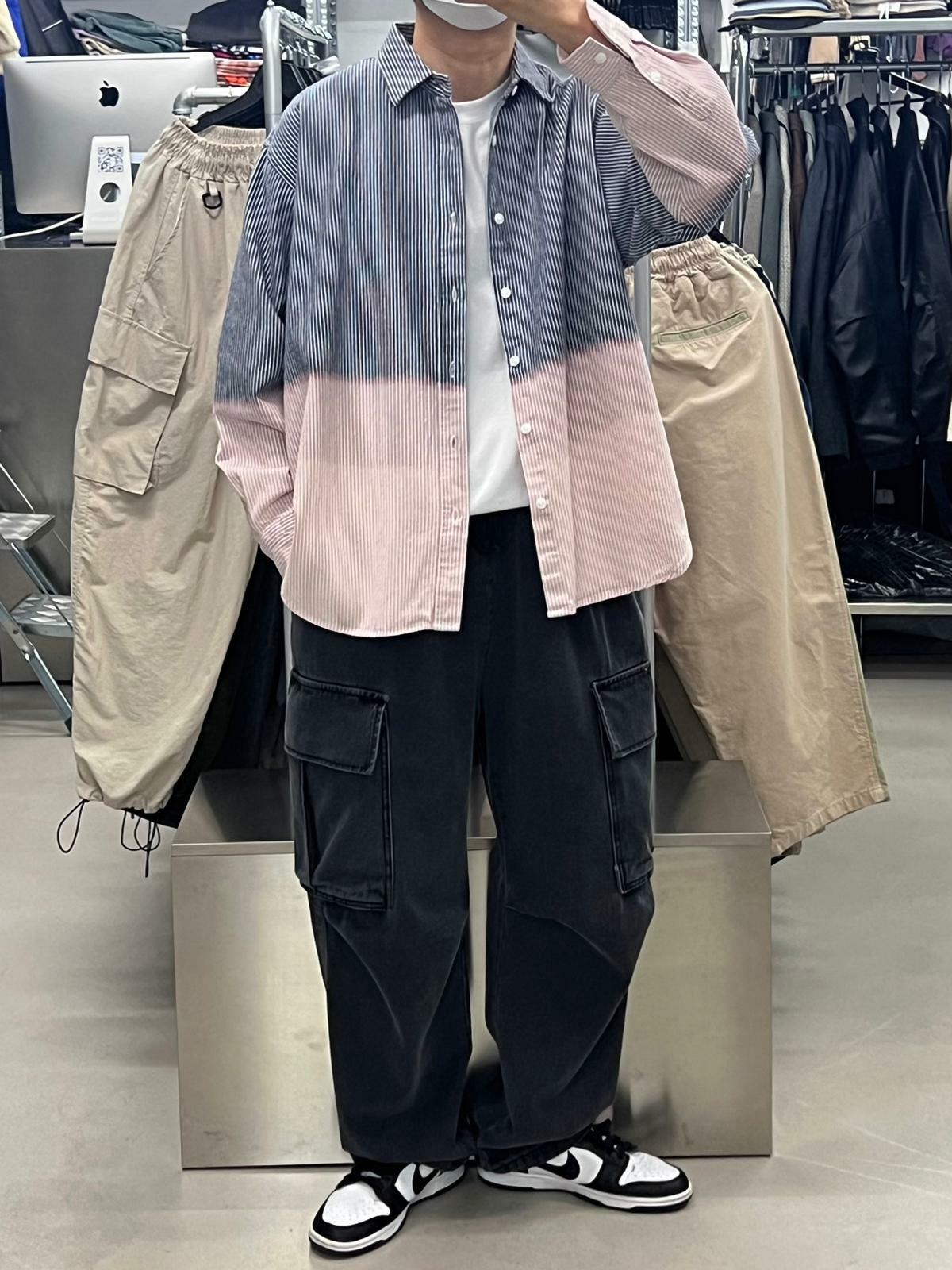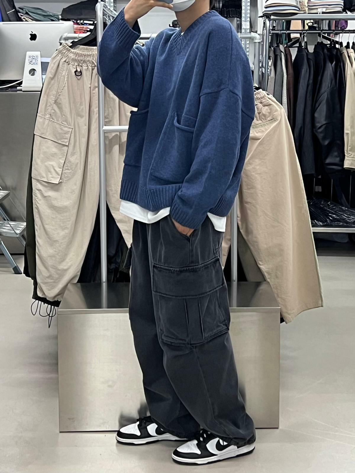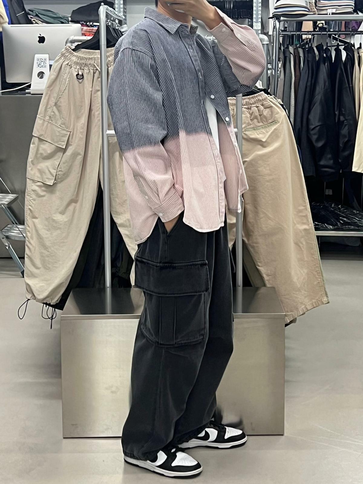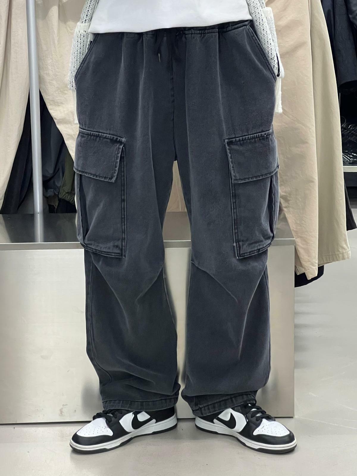 洗水工裝可束腳鬆身牛仔褲 P2217