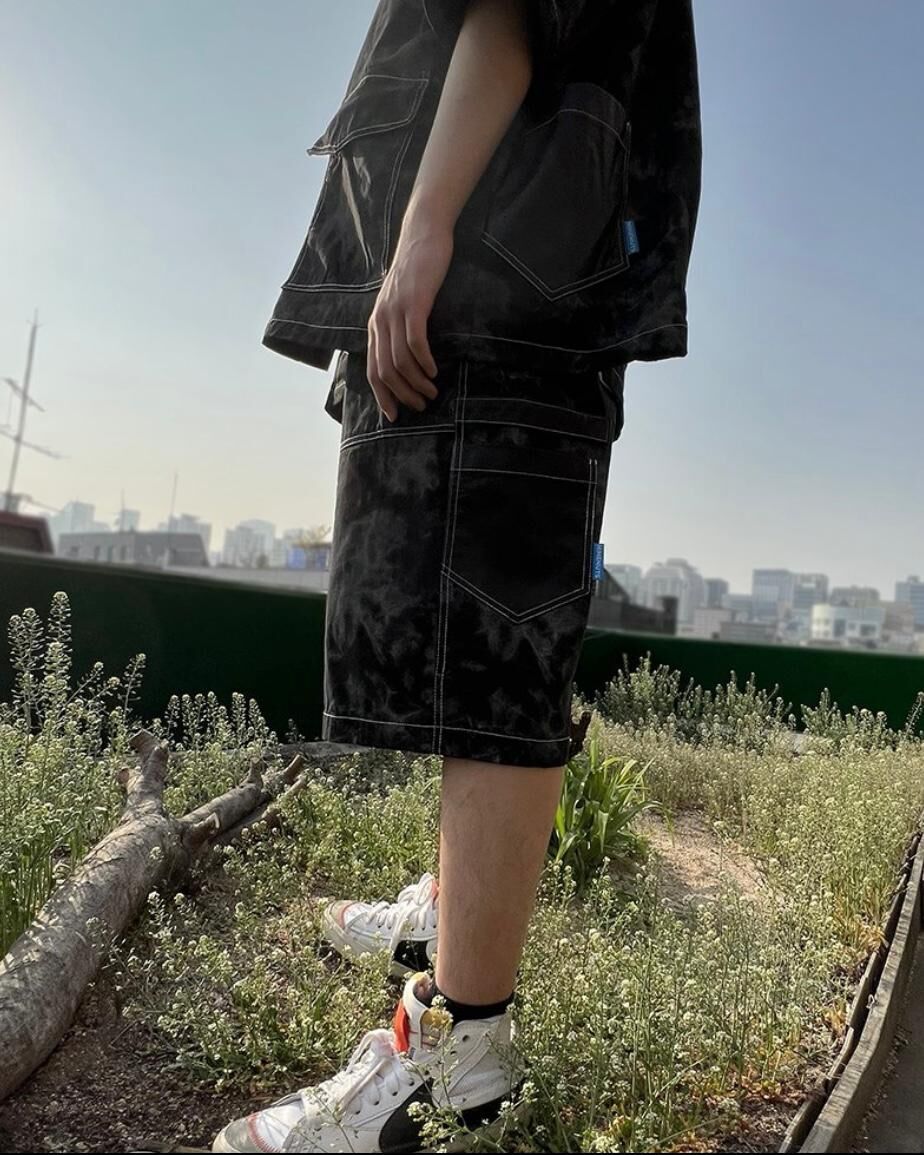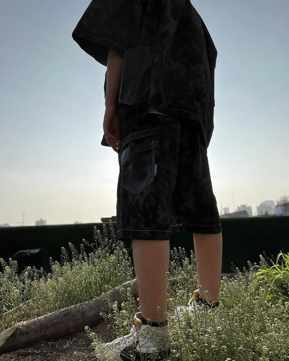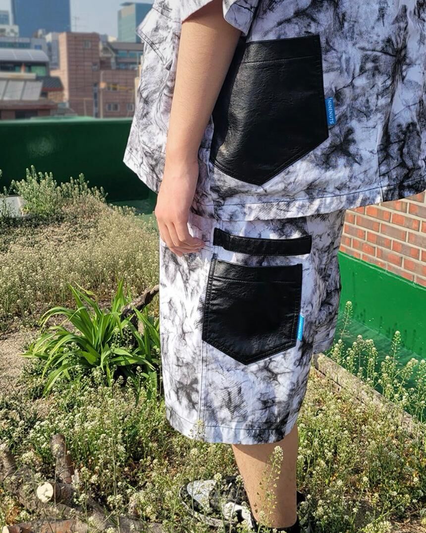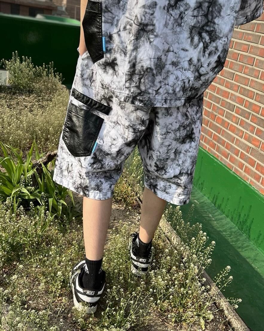 拼皮袋紮染短褲 P2353