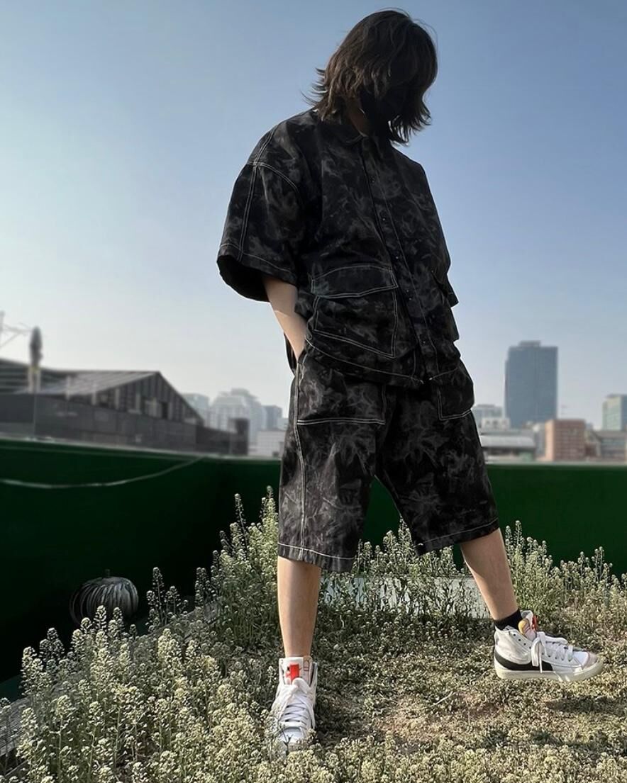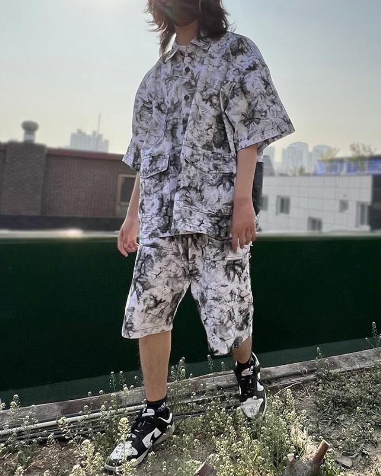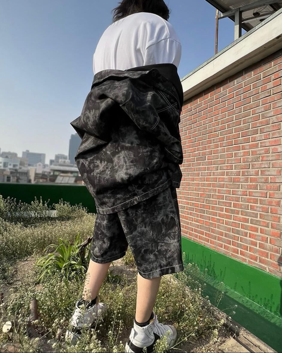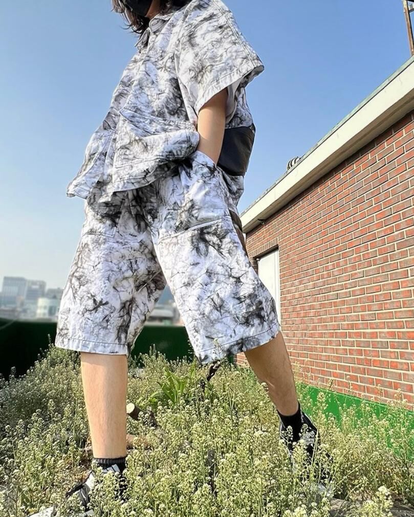 拼皮袋紮染短褲 P2353