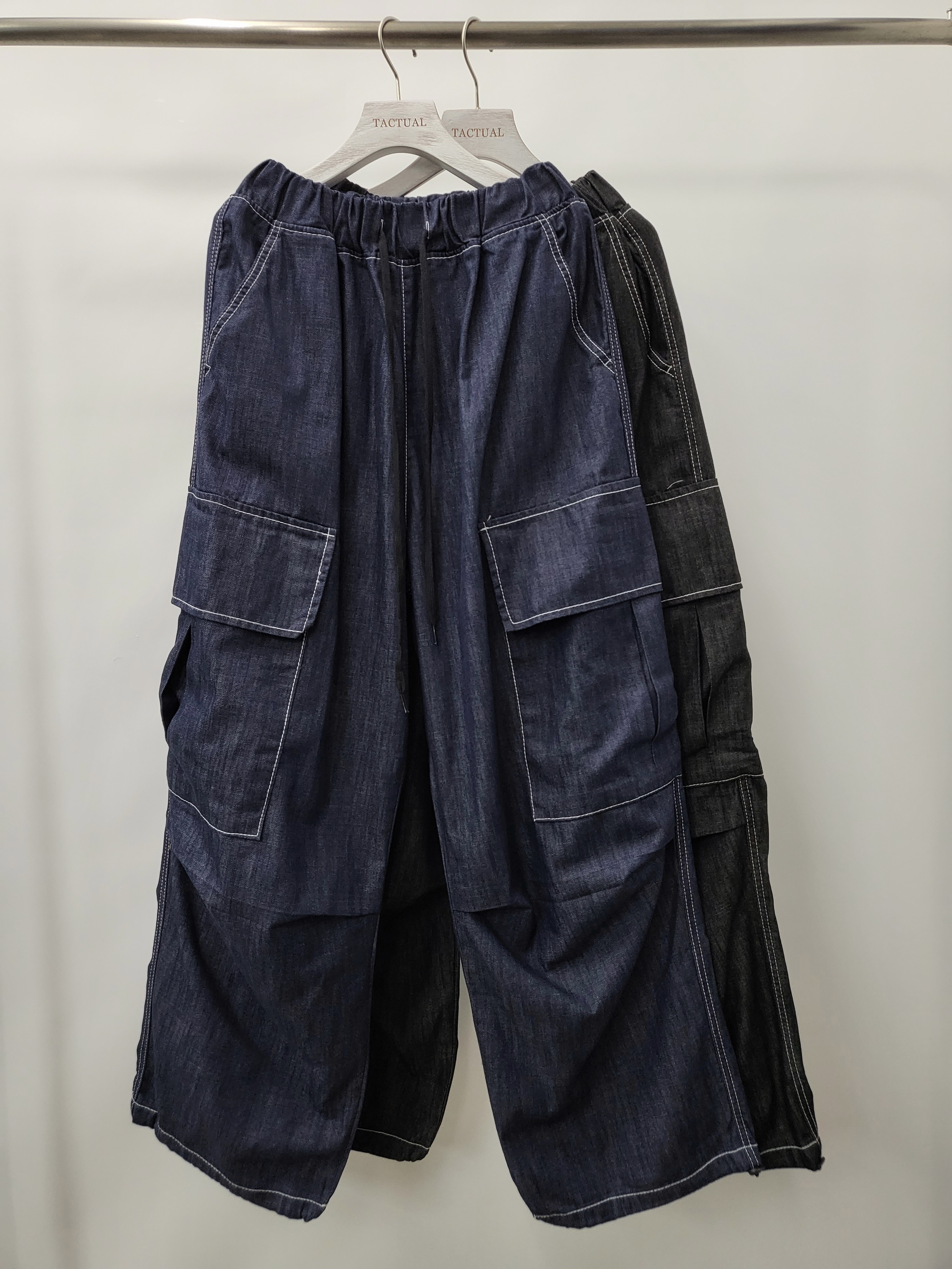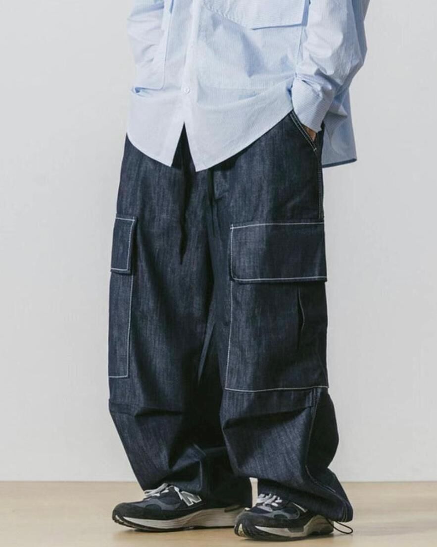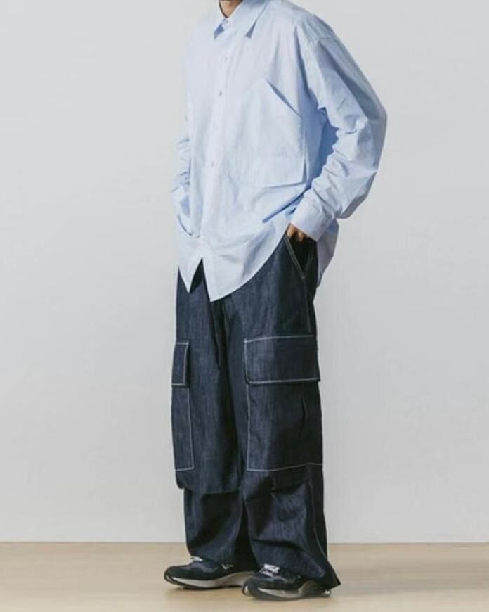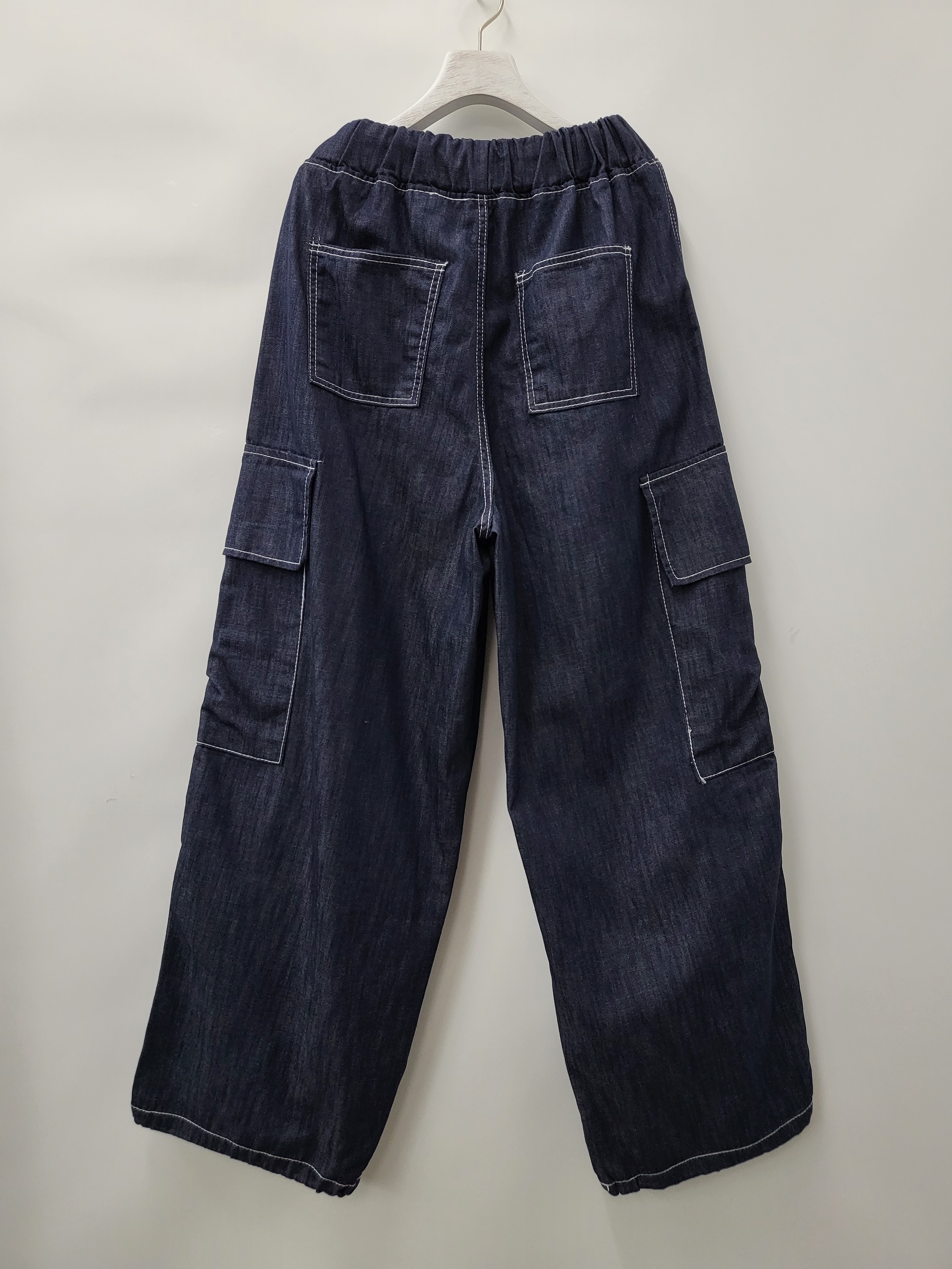 白線工裝鬆身牛仔褲 P2493