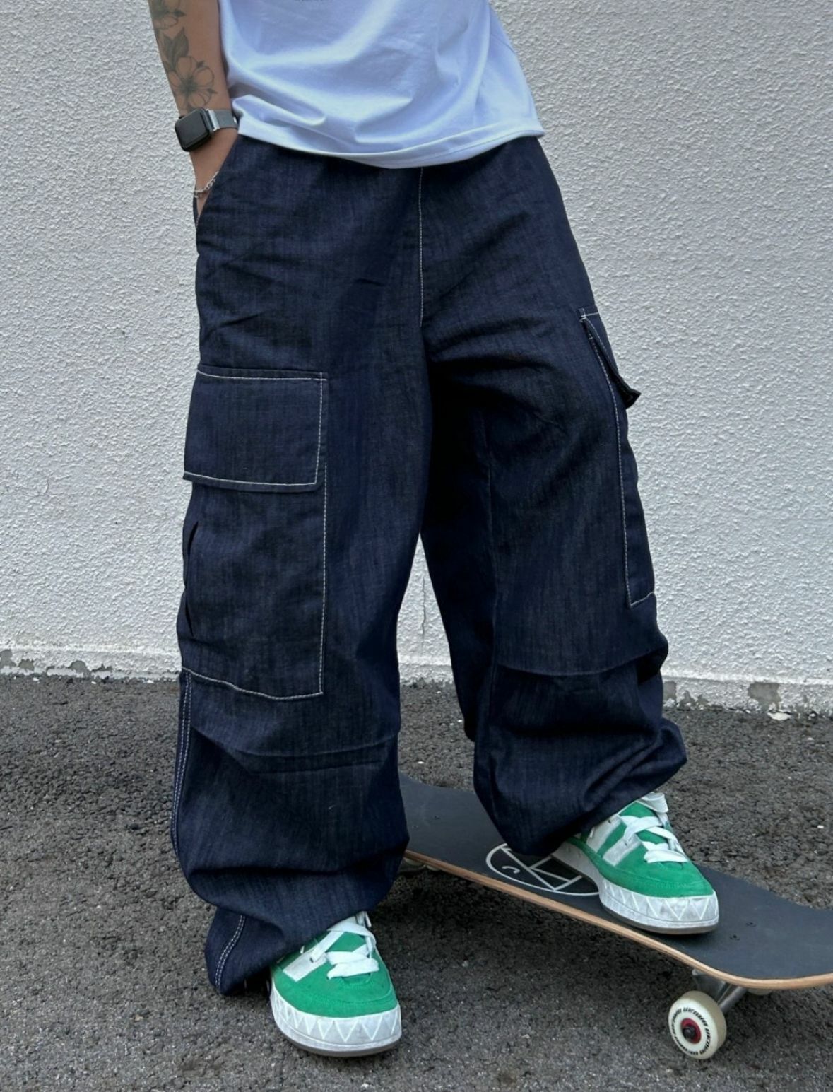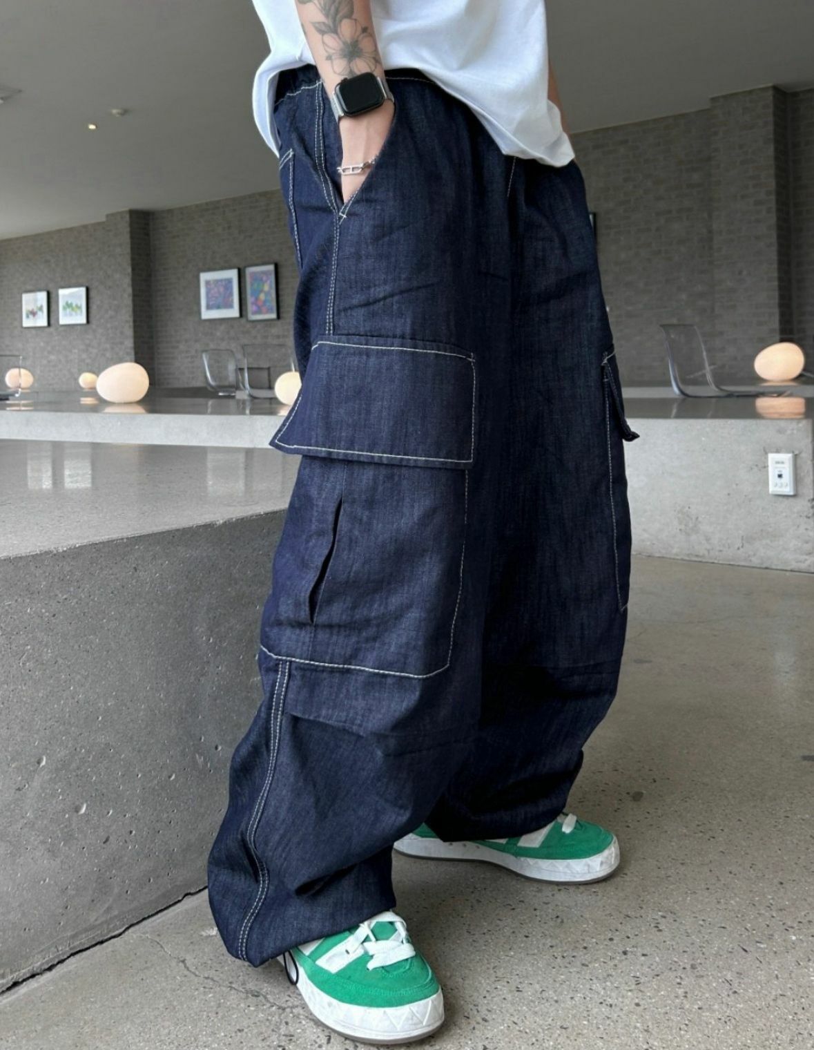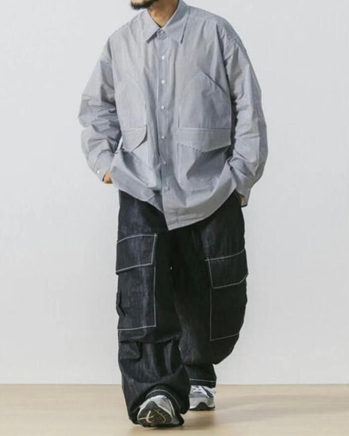 白線工裝鬆身牛仔褲 P2493