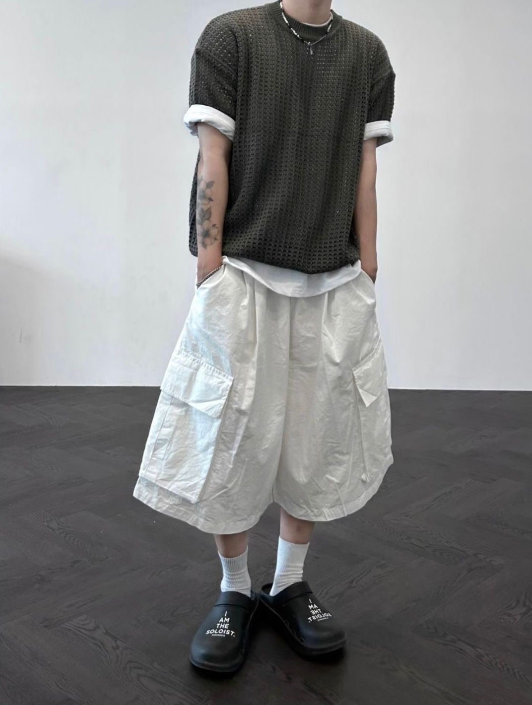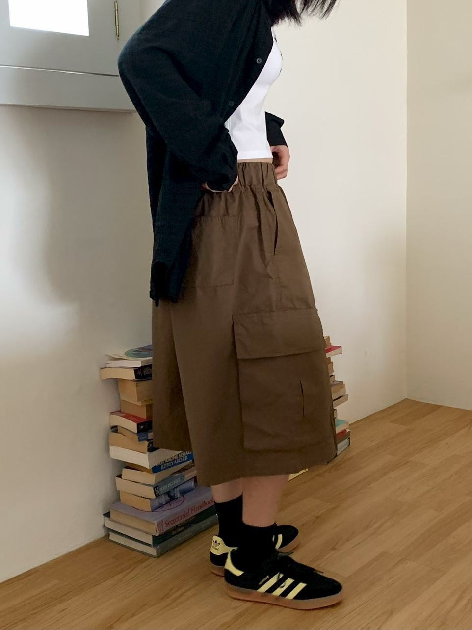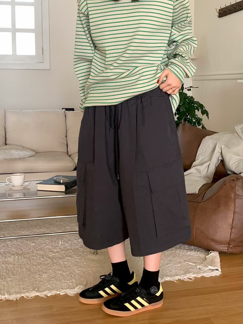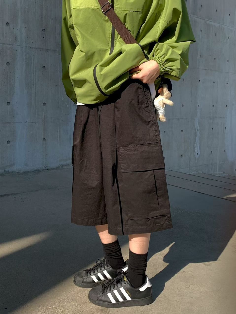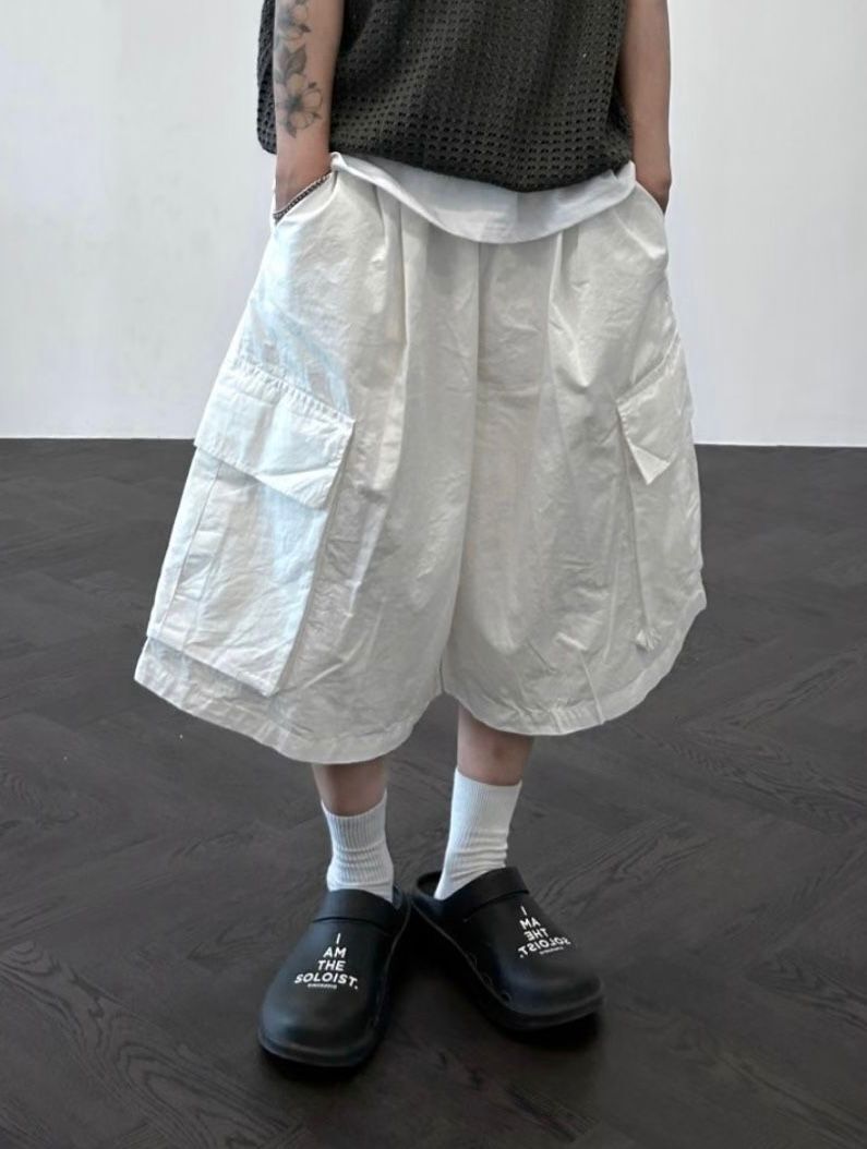 淨色工裝過膝短褲 P2494