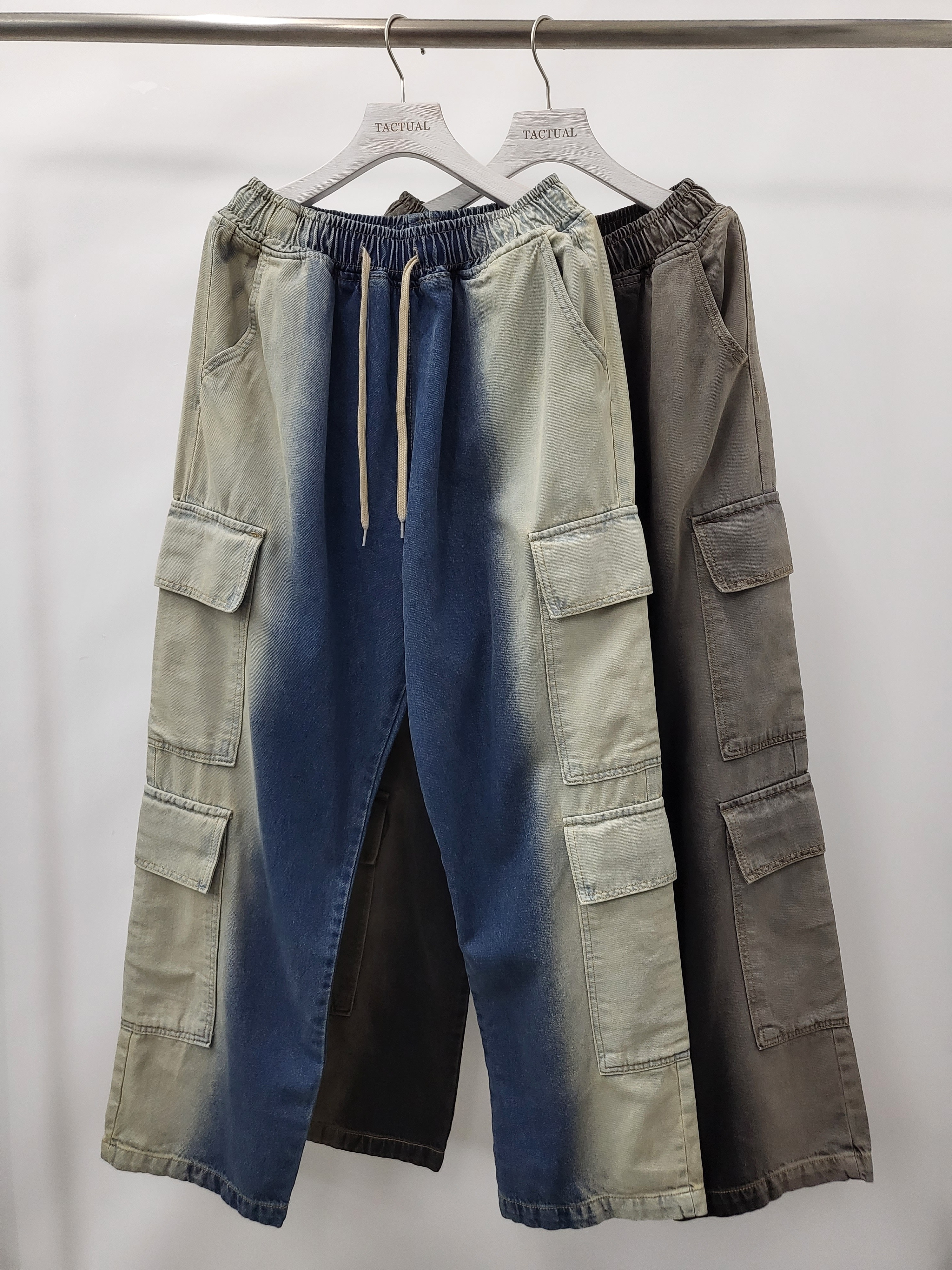 拼色工裝鬆身牛仔褲 P2581