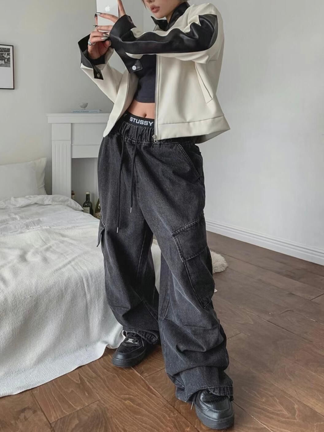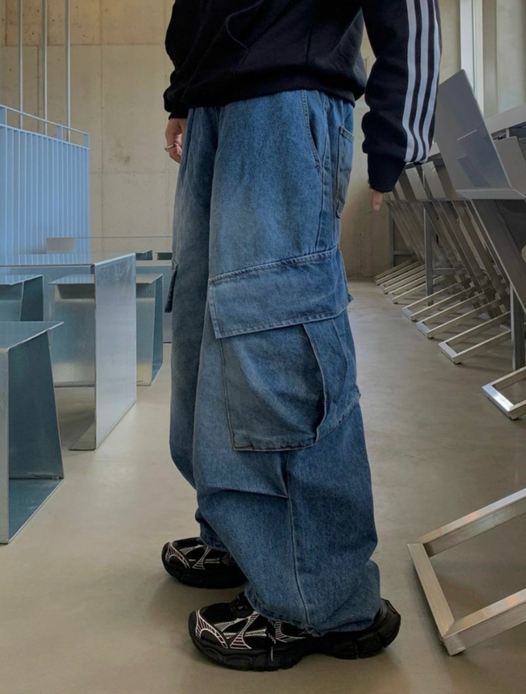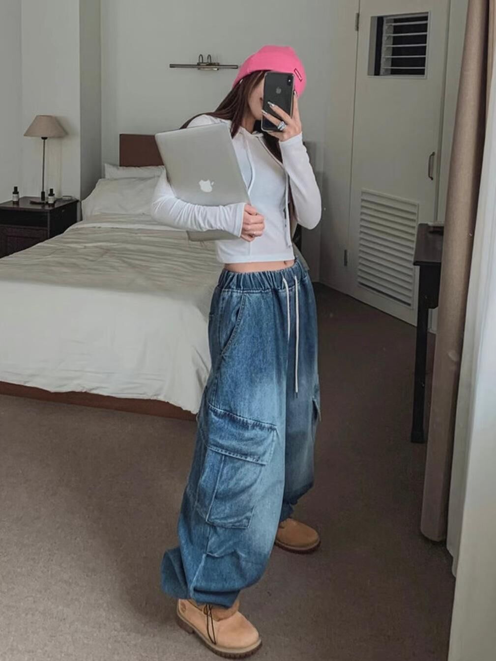 洗水超鬆身工裝牛仔褲 P2598