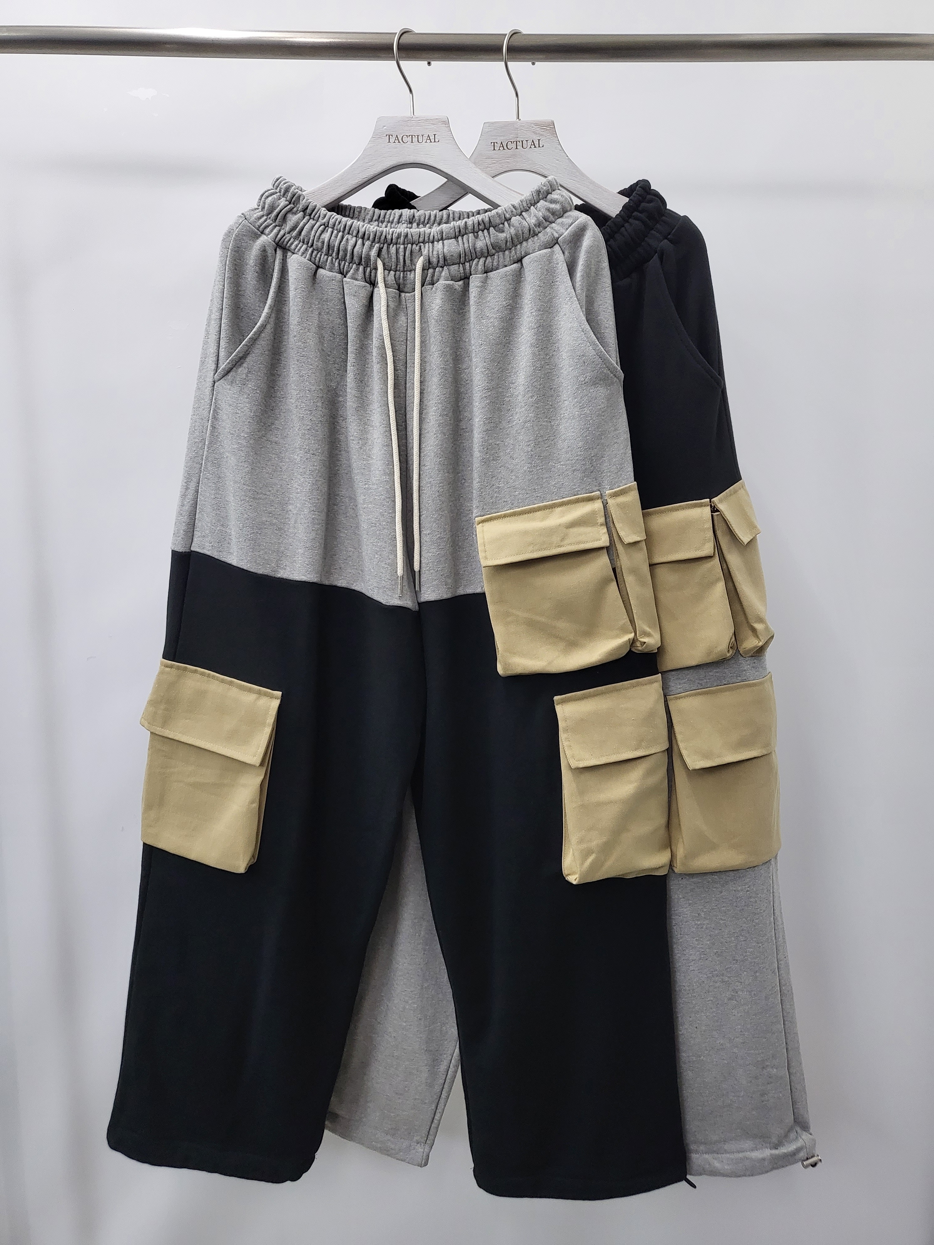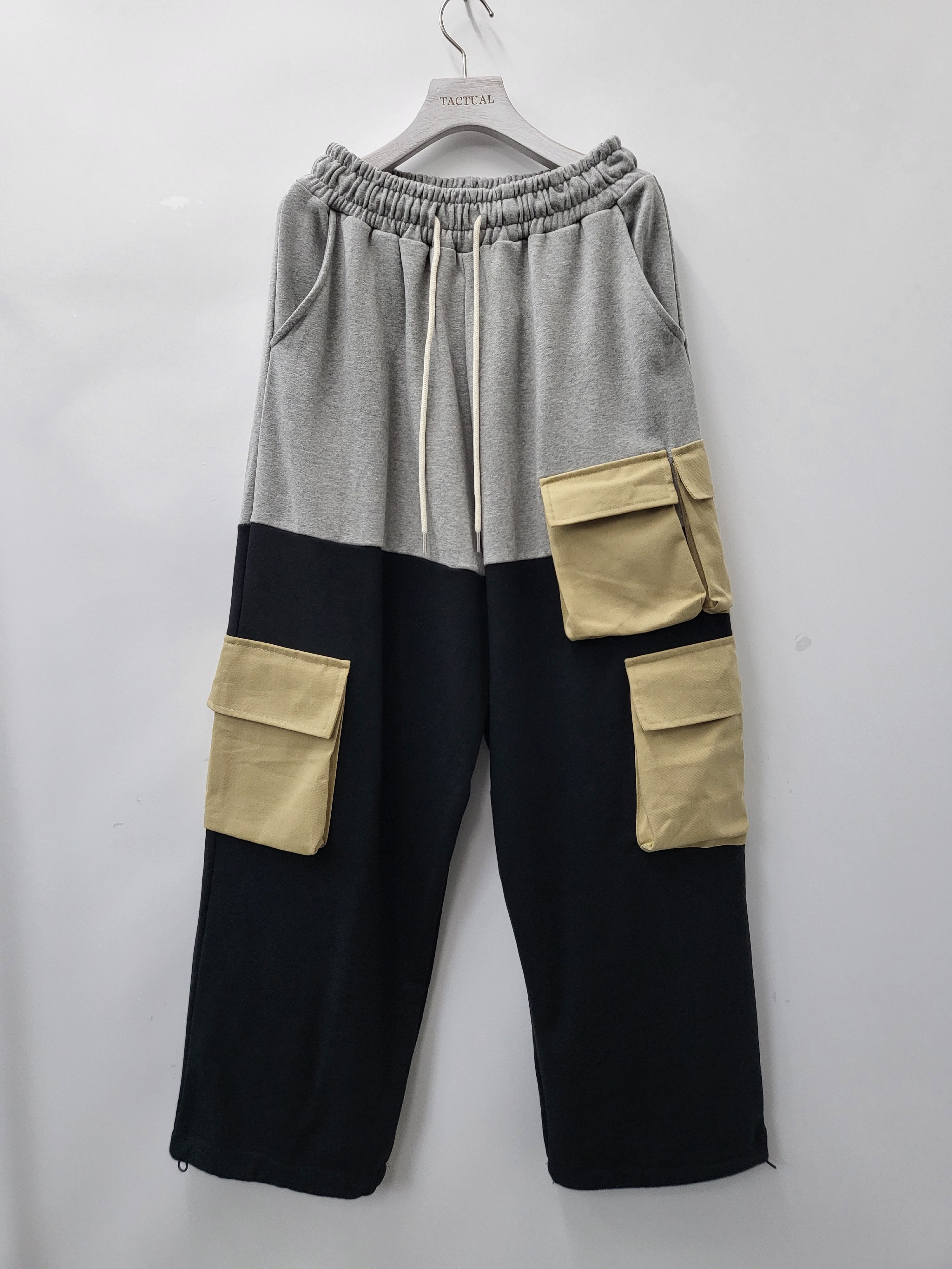 拼色棉質鬆身工裝褲 P2630