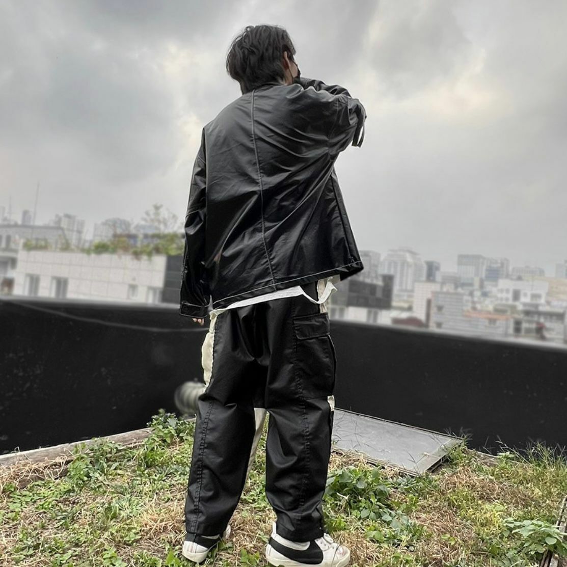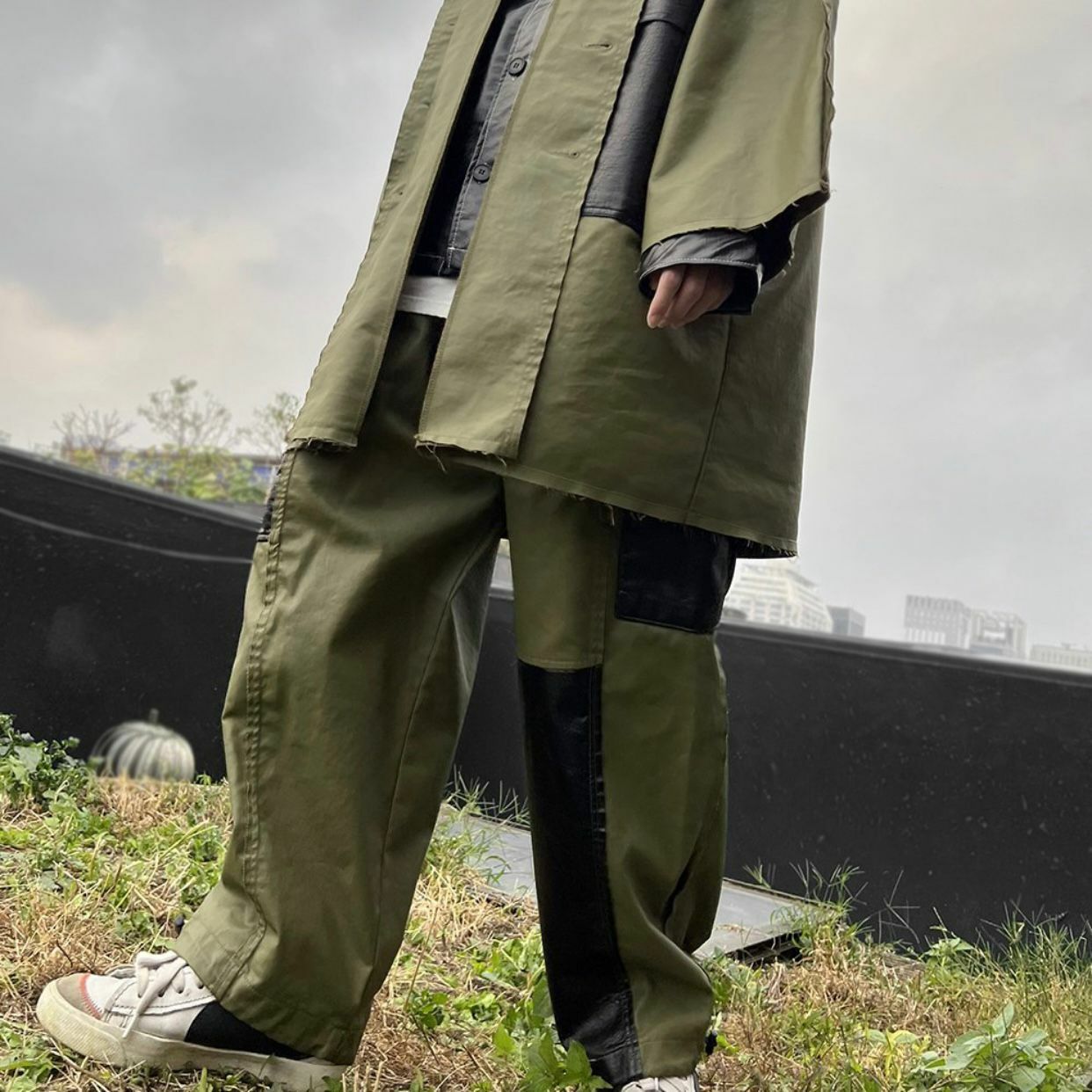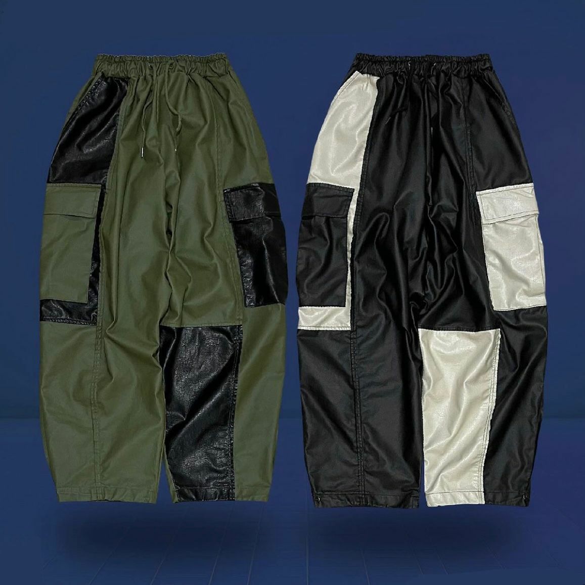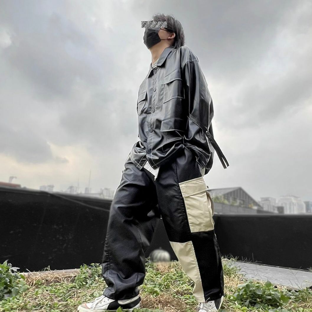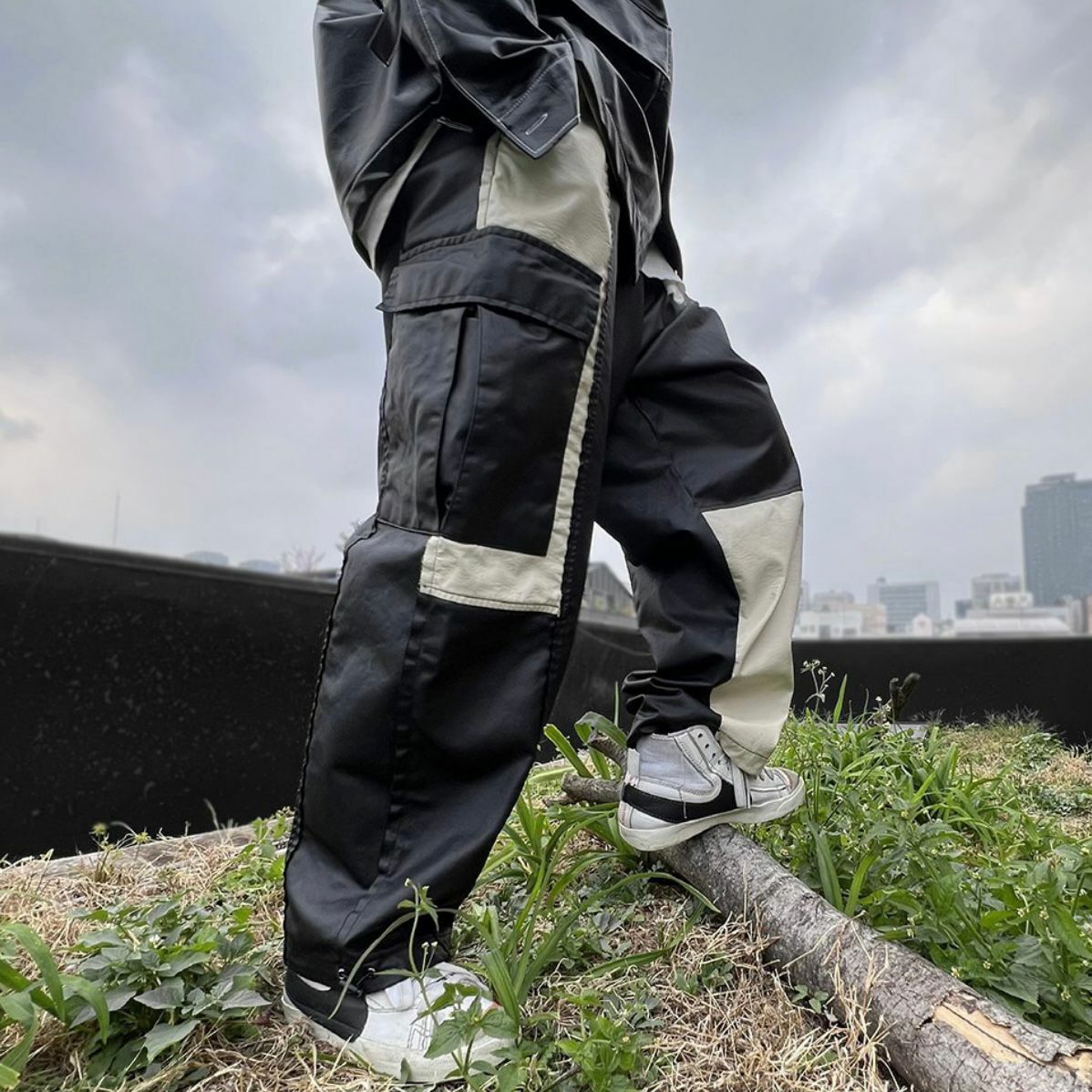 拼色工裝可束腳鬆身褲 P2658