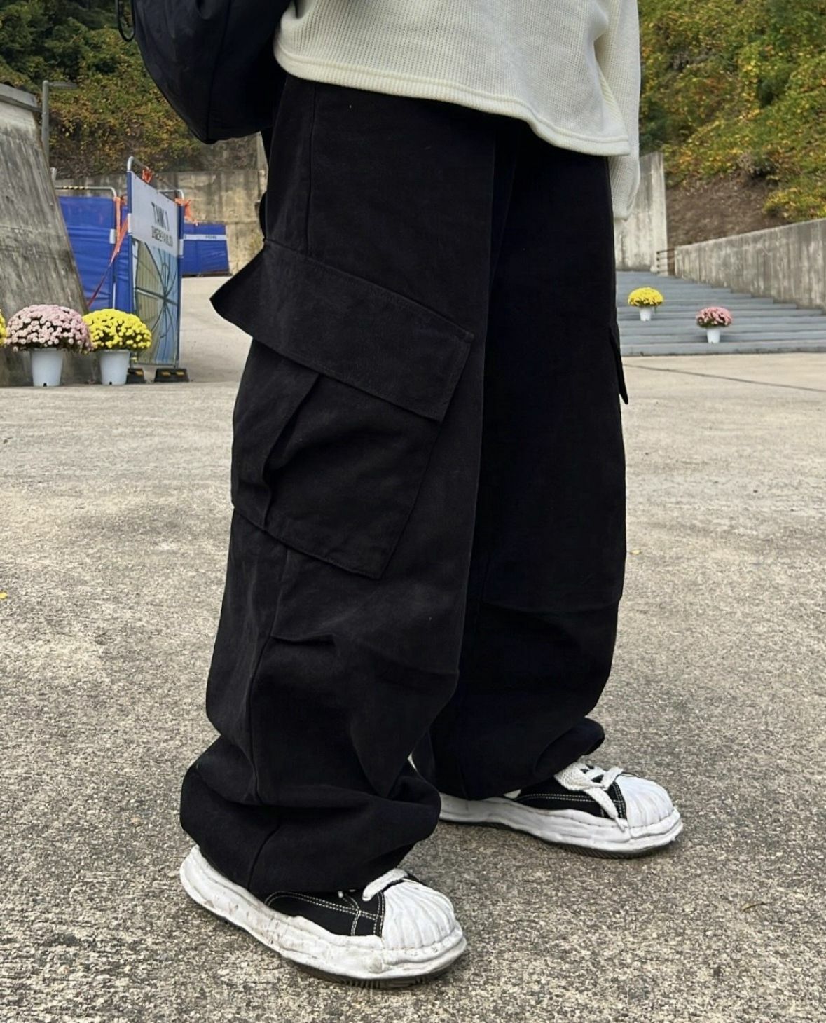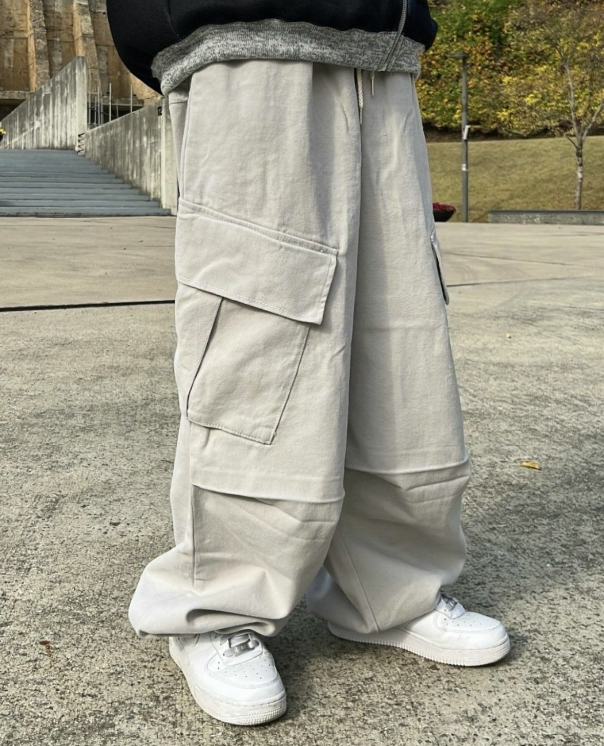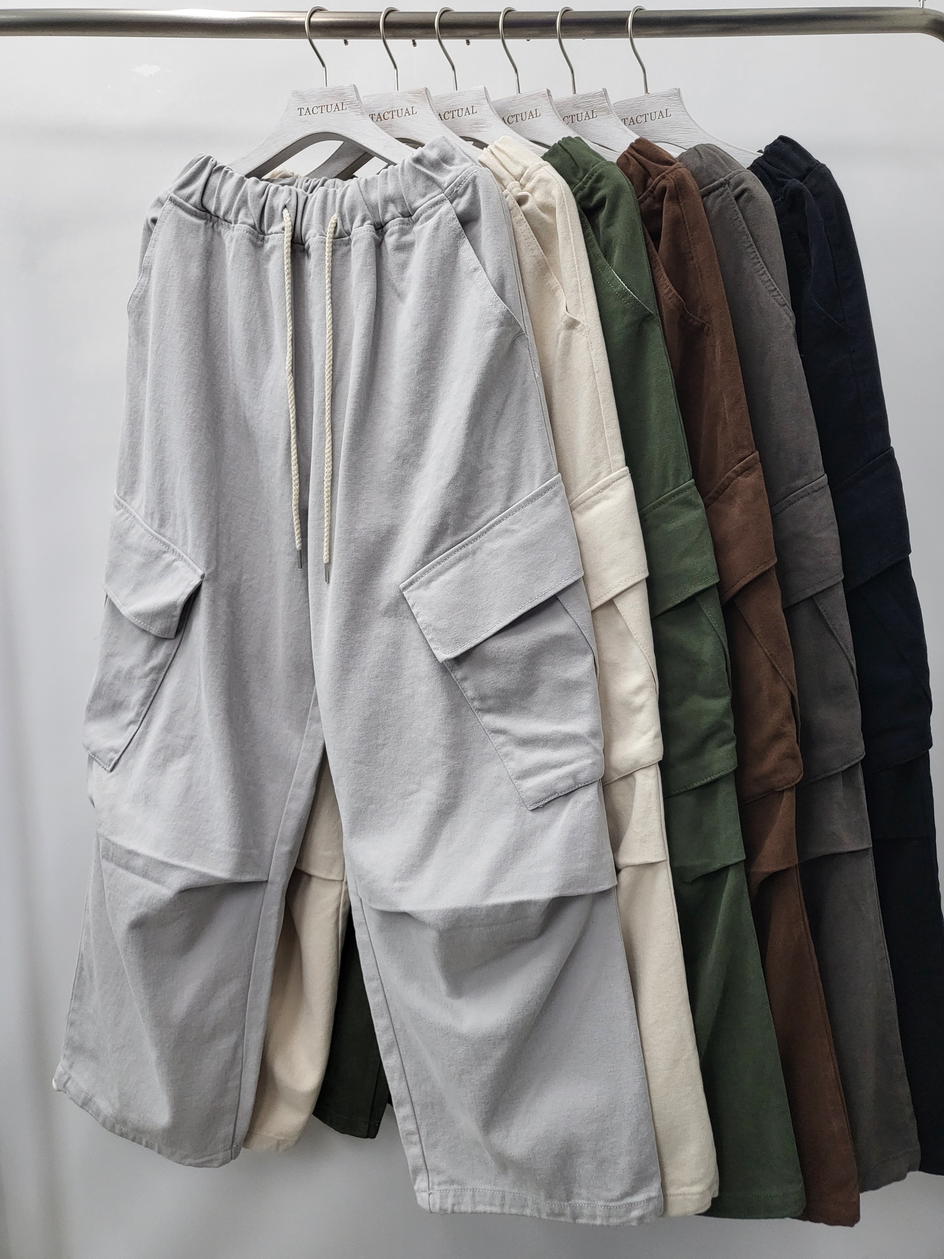 淨色可束腳工裝鬆身褲 P2704