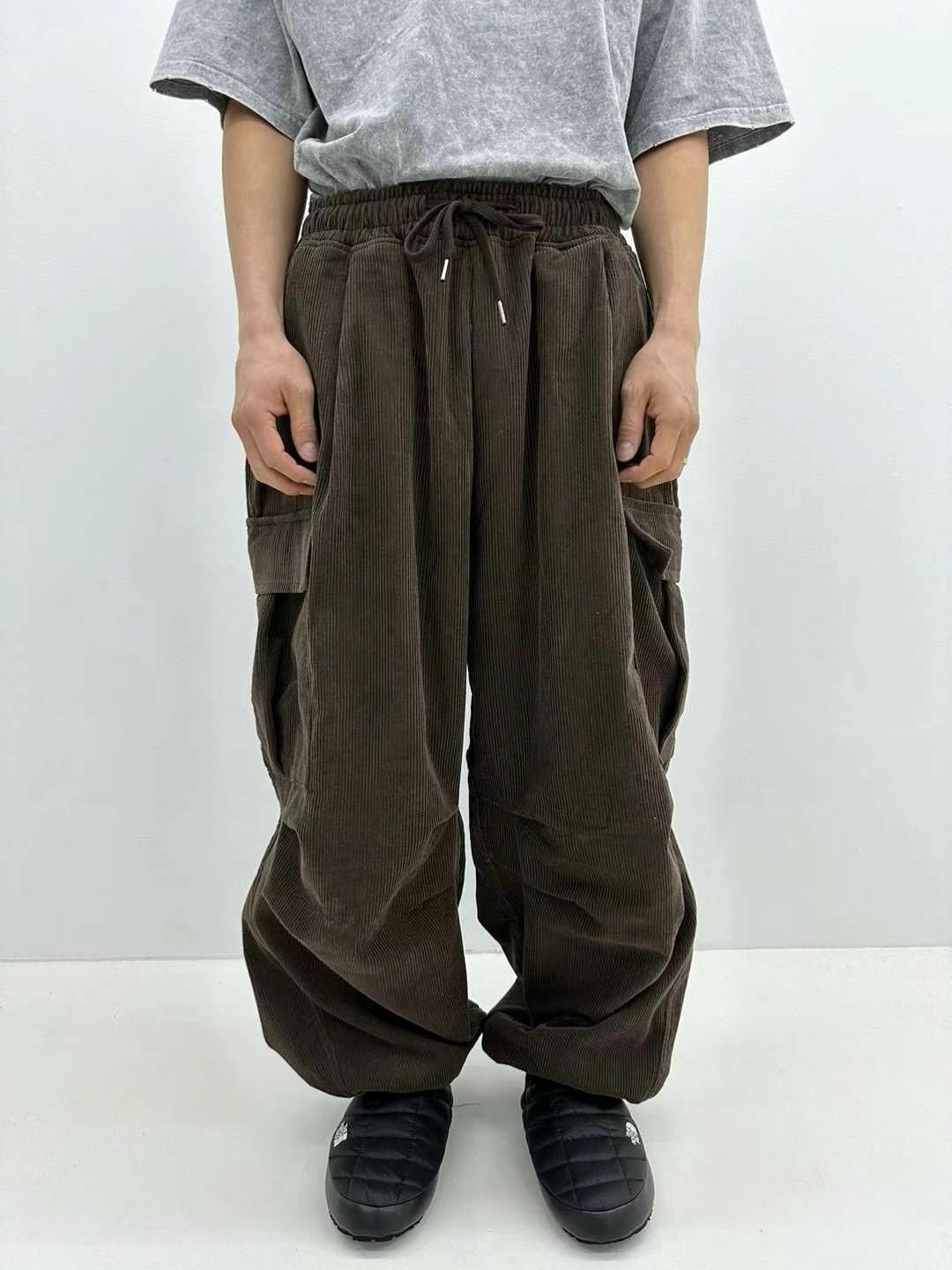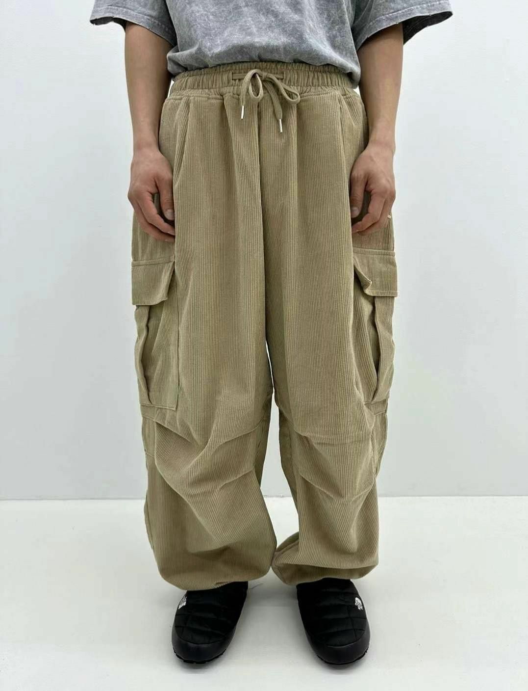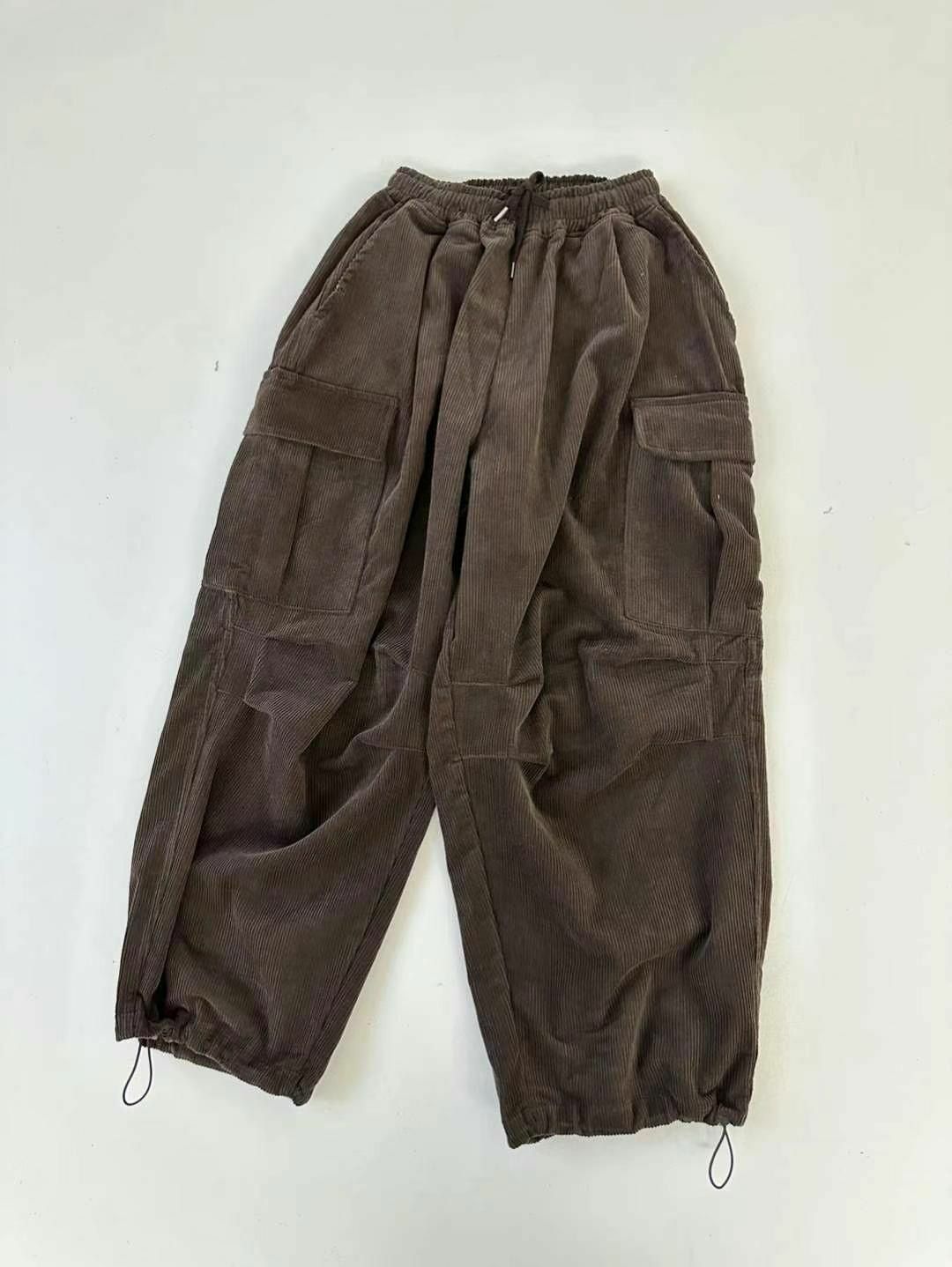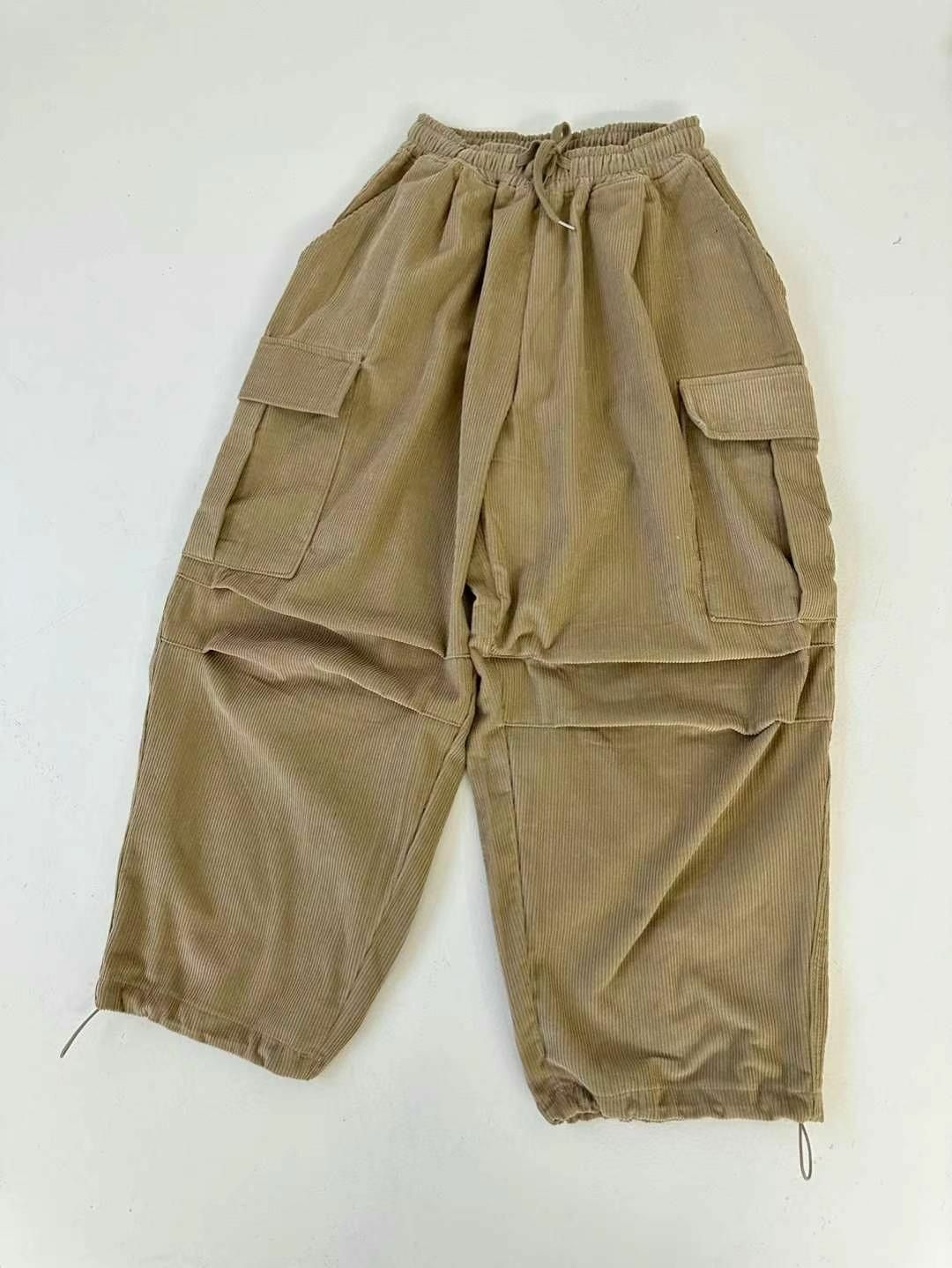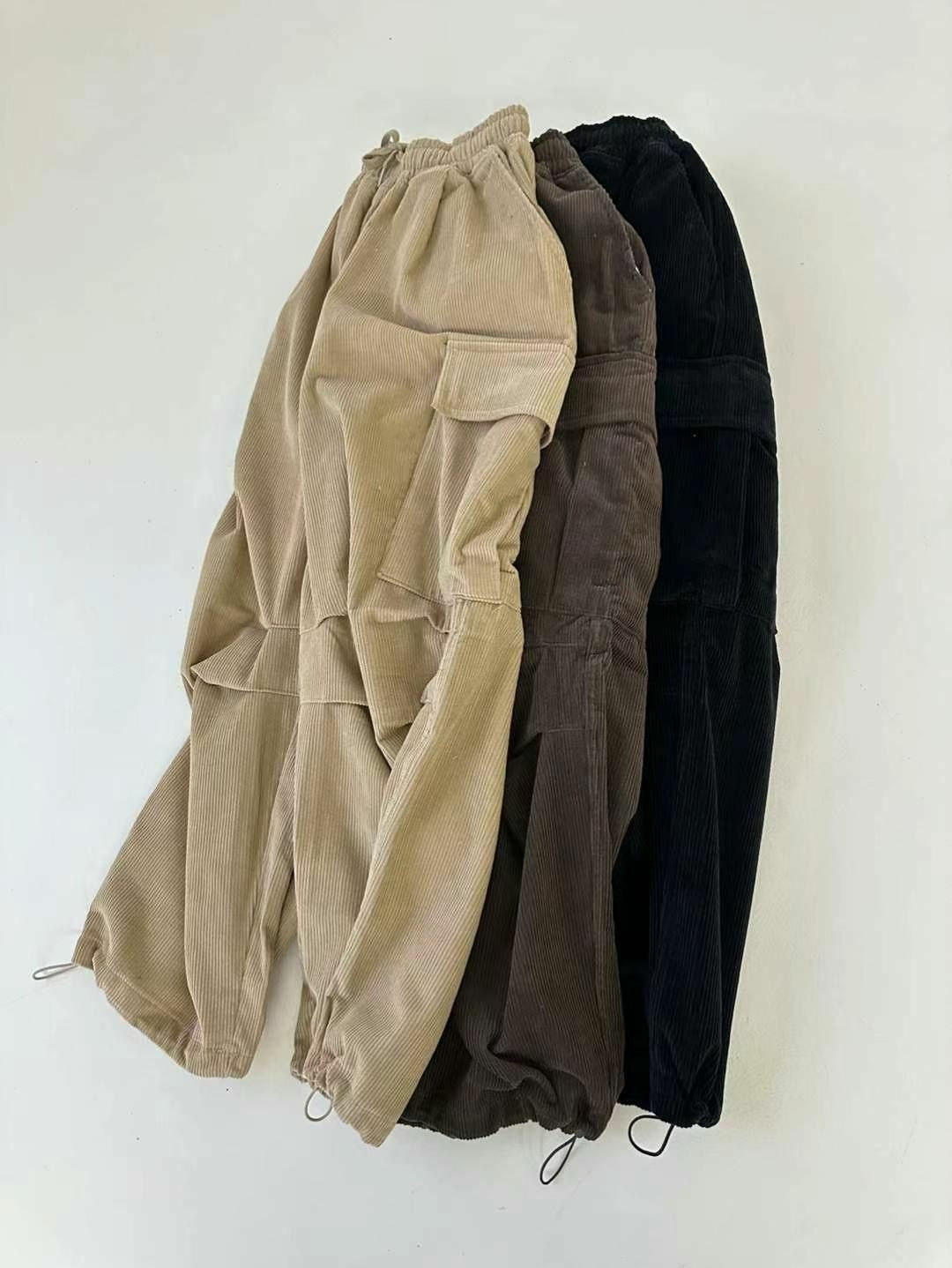 淨色燈心絨可束腳工裝鬆身褲 P2705