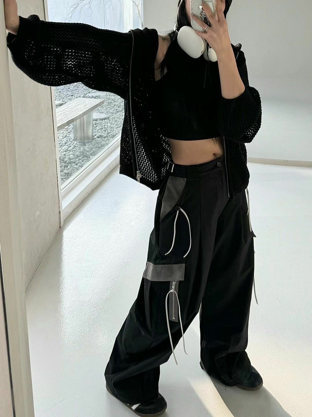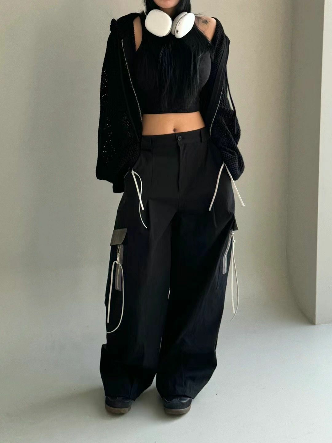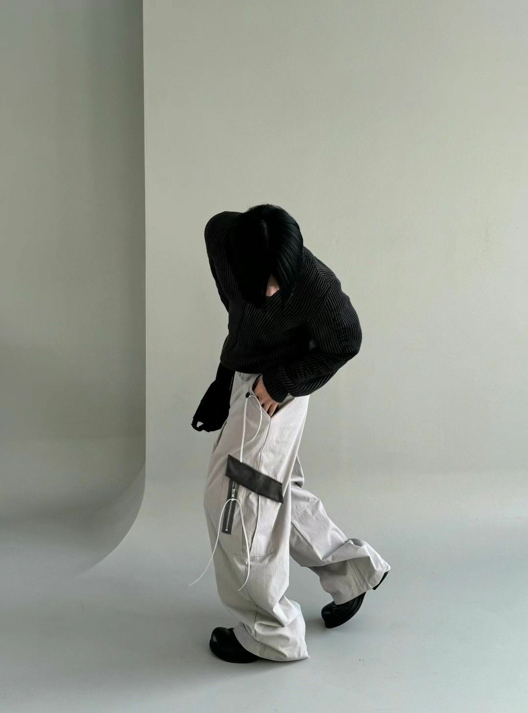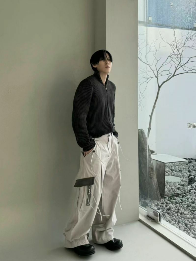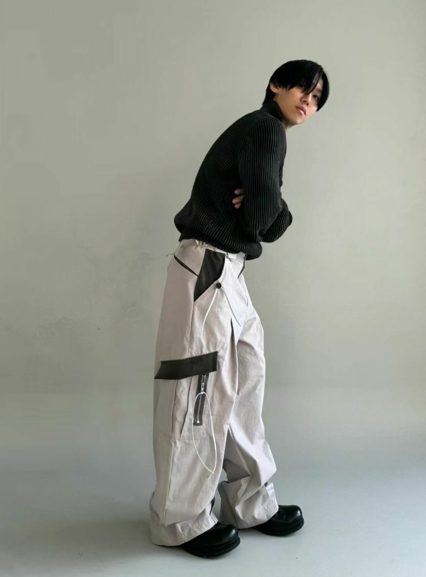 拼色工裝鬆身褲 P2829