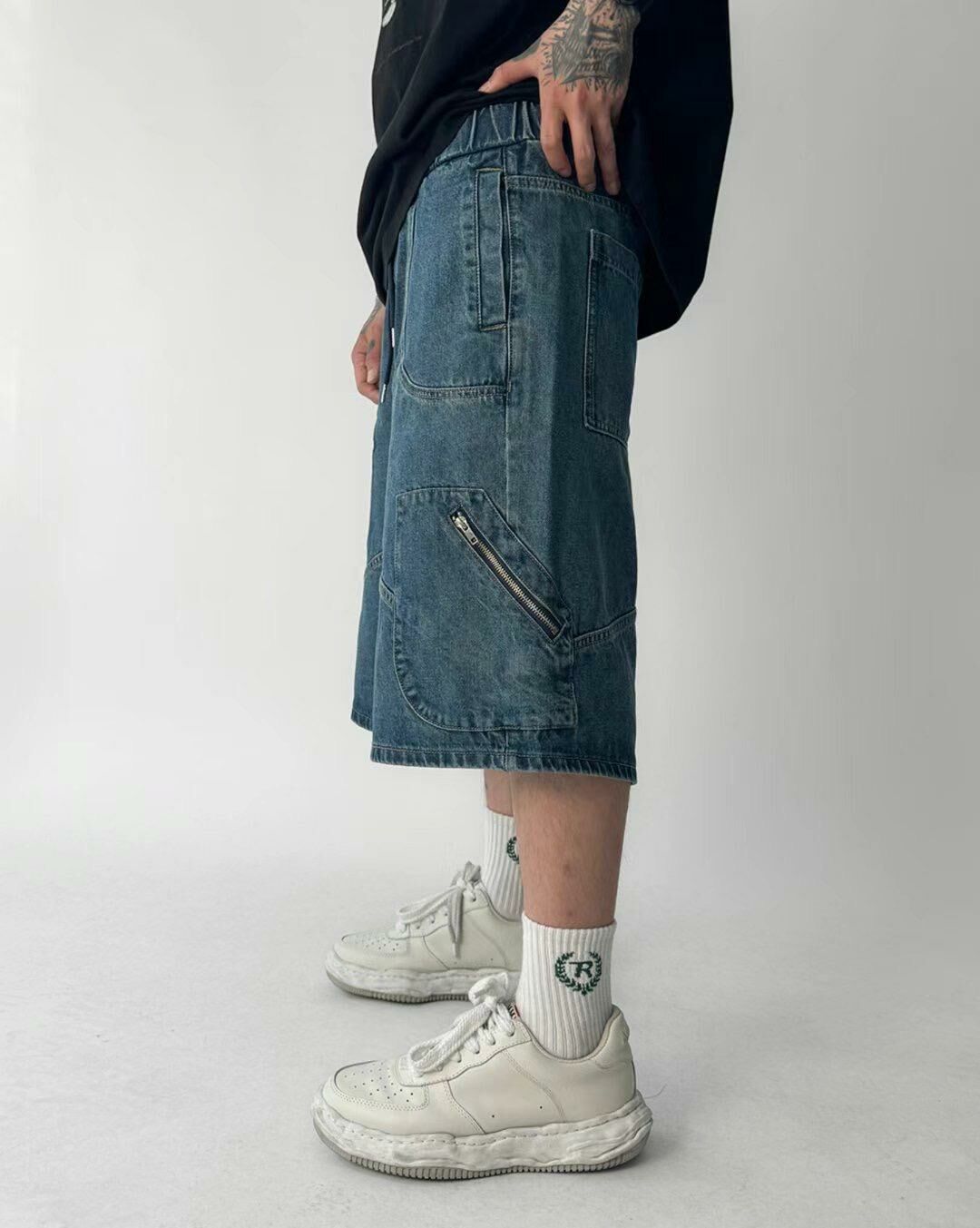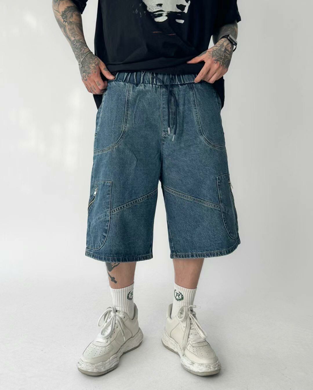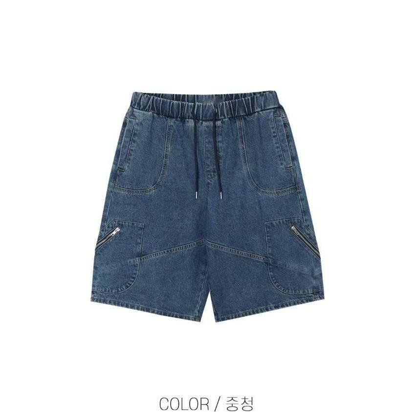 洗水拉鍊牛仔短褲 P2846