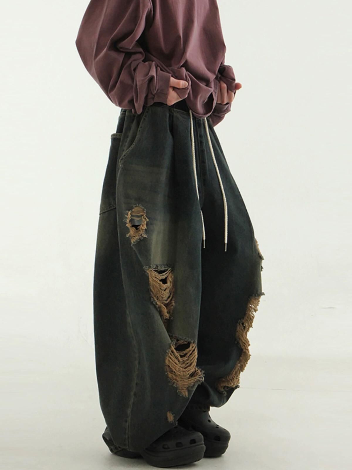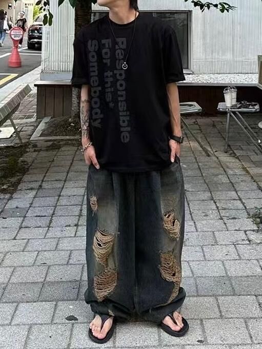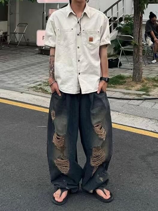洗水破洞鬆身牛仔褲 P2861