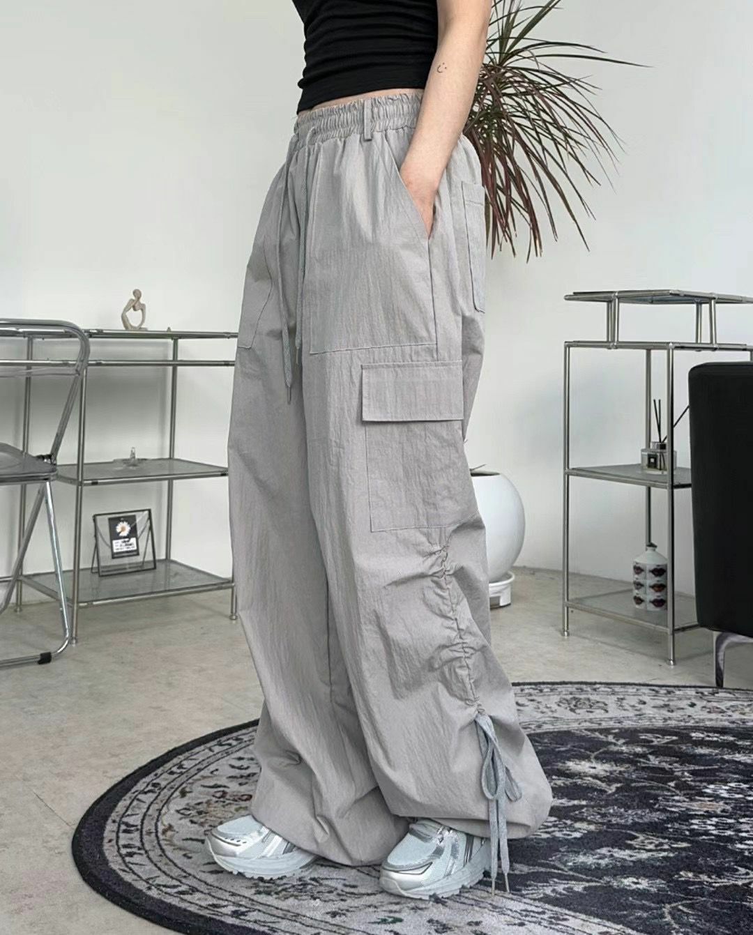 淨色工裝鬆身褲 P2876