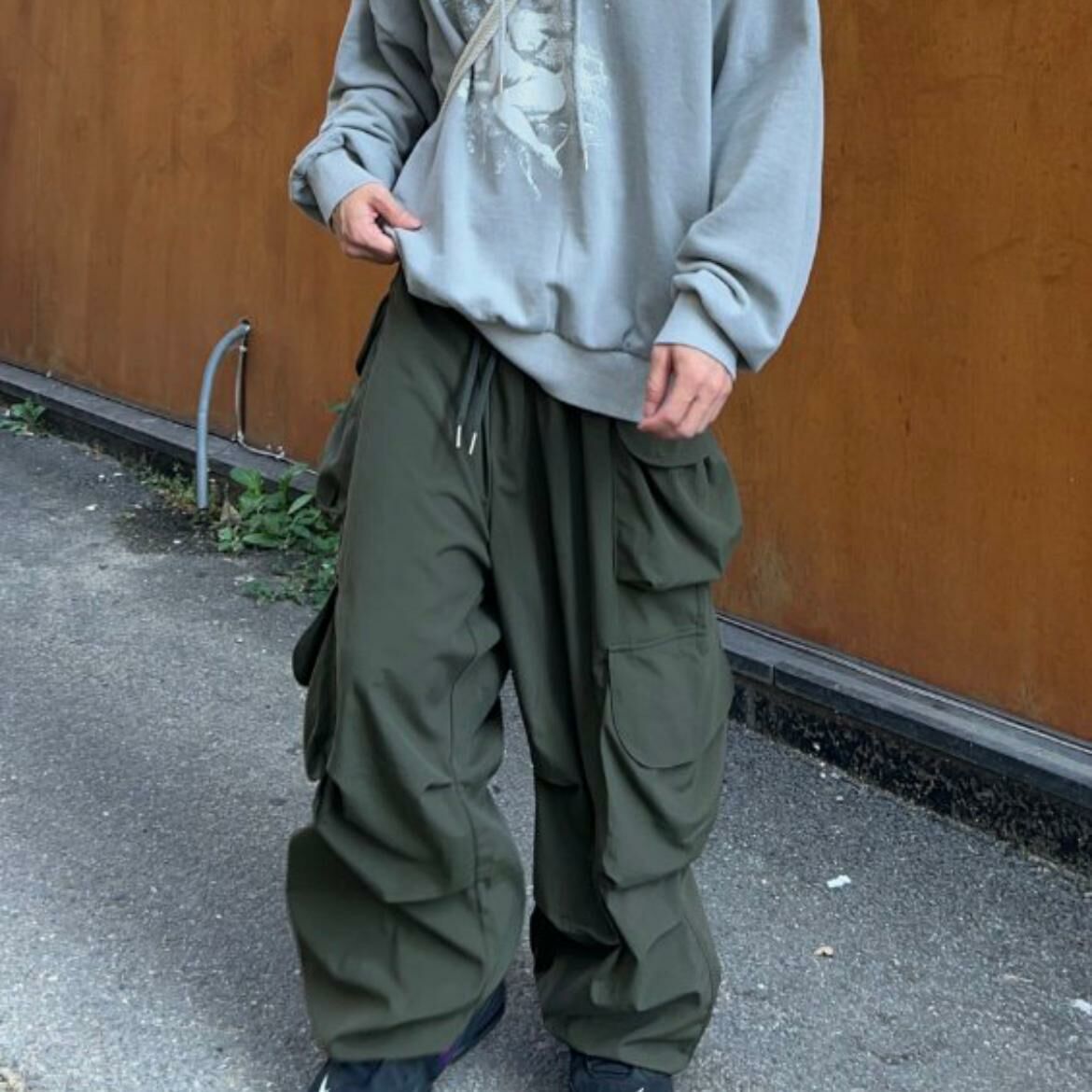 淨色工裝鬆身褲 P2894