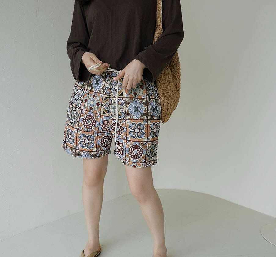 民族花圖案短褲 P2921